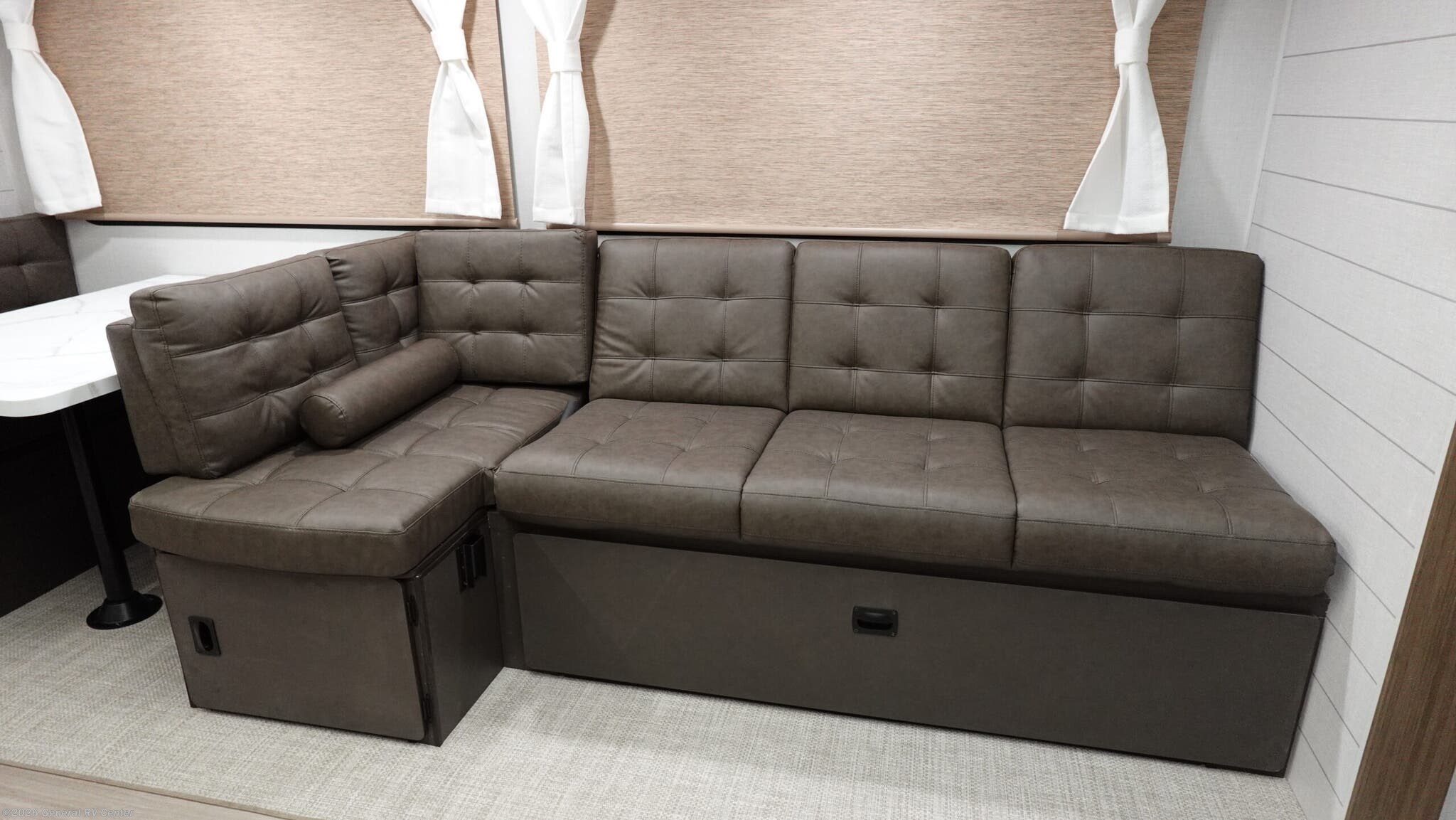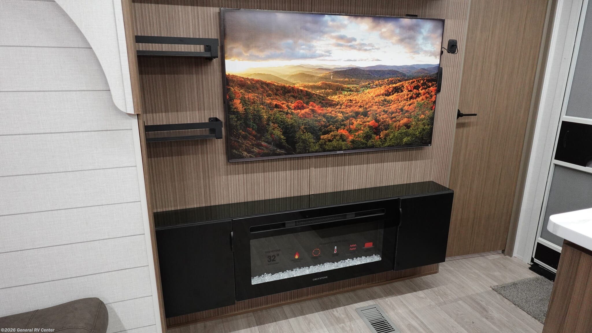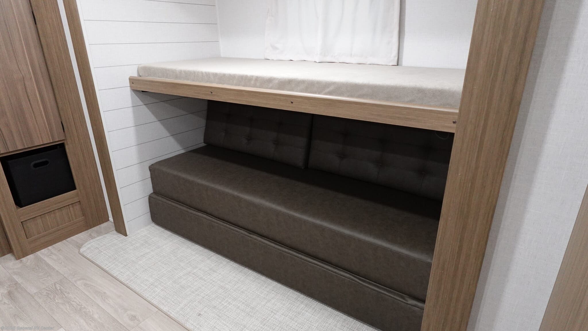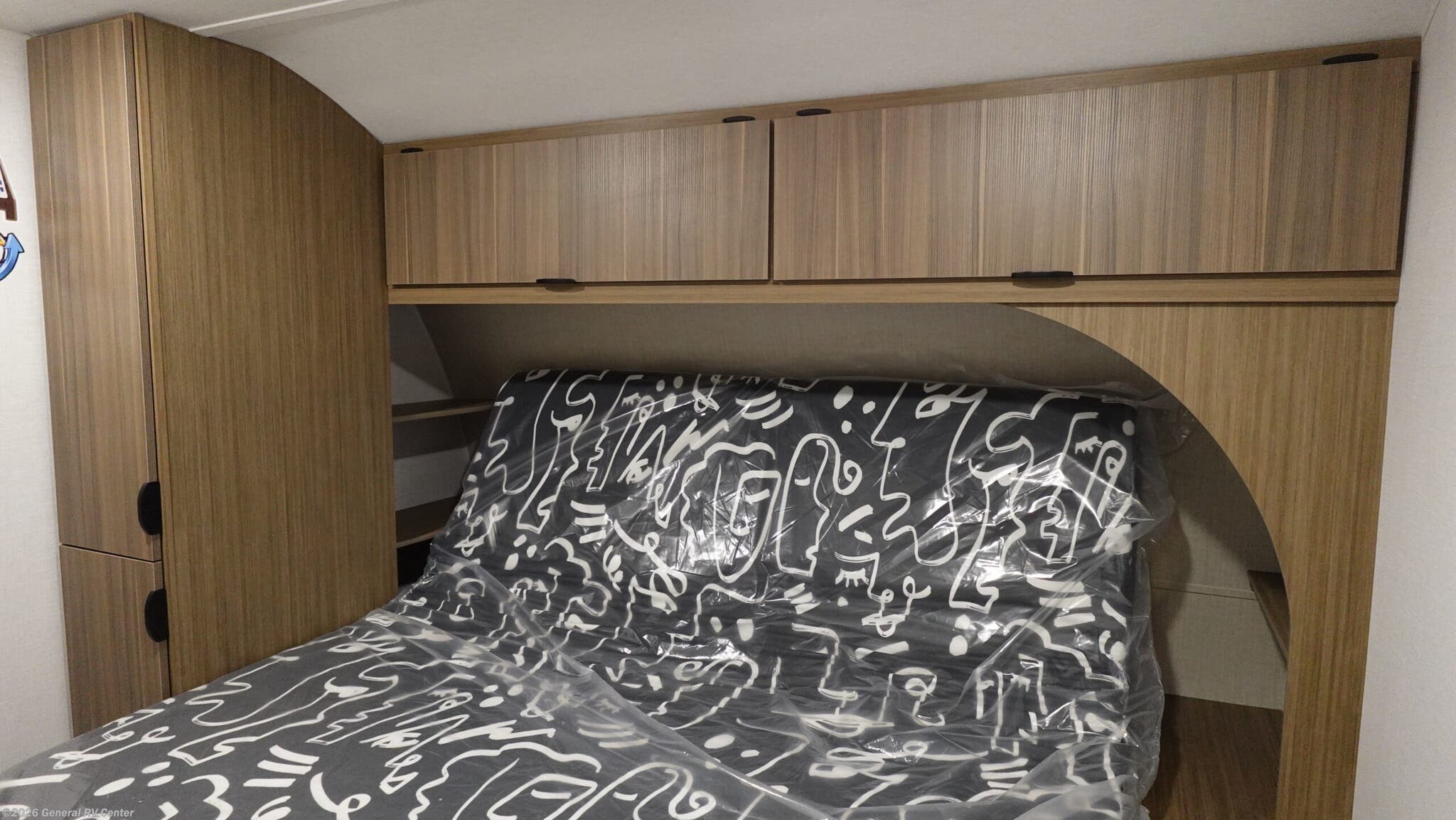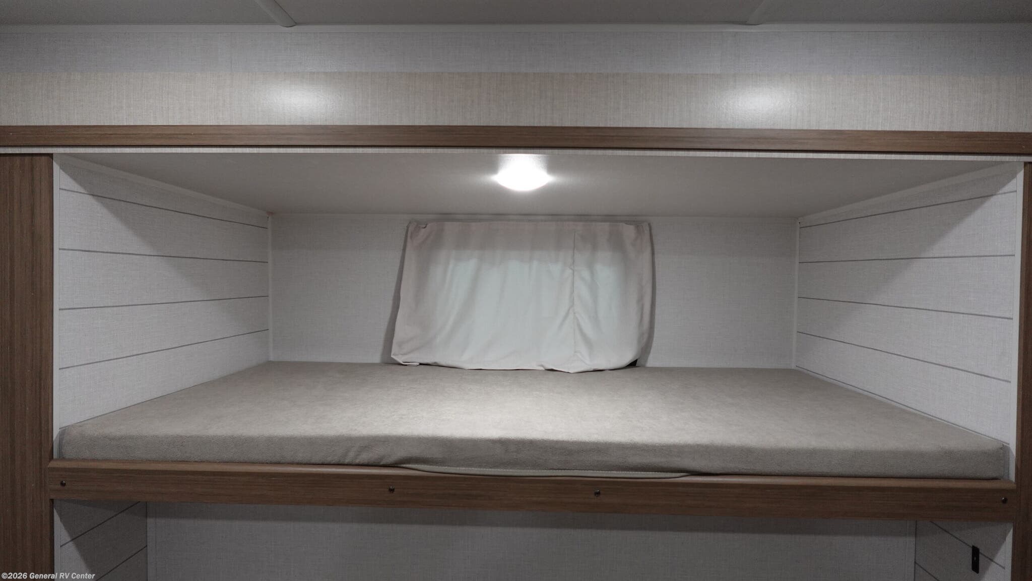 Step into the 2026 Forest River Salem 31KQBTS, where adventure meets comfort in a beautifully designed RV. At 36.58 feet long, this spacious haven is perfect for families or groups, comfortably sleeping up to 11 with a luxurious king-sized bed and versatile convertible options. The heart of this RV is its center kitchen, equipped with a full-size electric refrigerator and a three-burner cooktop, making meal prep a breeze. The panoramic windows invite natural light, enhancing the open feel of the center living area, which features the cozy Versa Flex seating arrangement. The thoughtful layout includes a separate bunkhouse, offering privacy and fun for the kids with three bunks and a versatile queen. The front and rear bedrooms provide ample storage, ensuring everyone has their space. Enjoy the outdoors with the 18 ft. powered retractable awning and an outside kitchen, perfect for alfresco dining. With a cargo capacity of 1,292 lbs and a hitch weight of 905 lbs, this RV is as practical as it is stylish. Experience the perfect blend of luxury and functionality with the Salem 31KQBTS. For more details, visit your nearest General RV dealership.