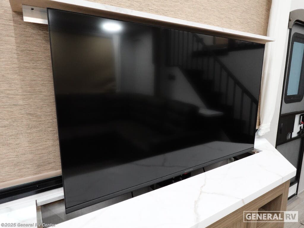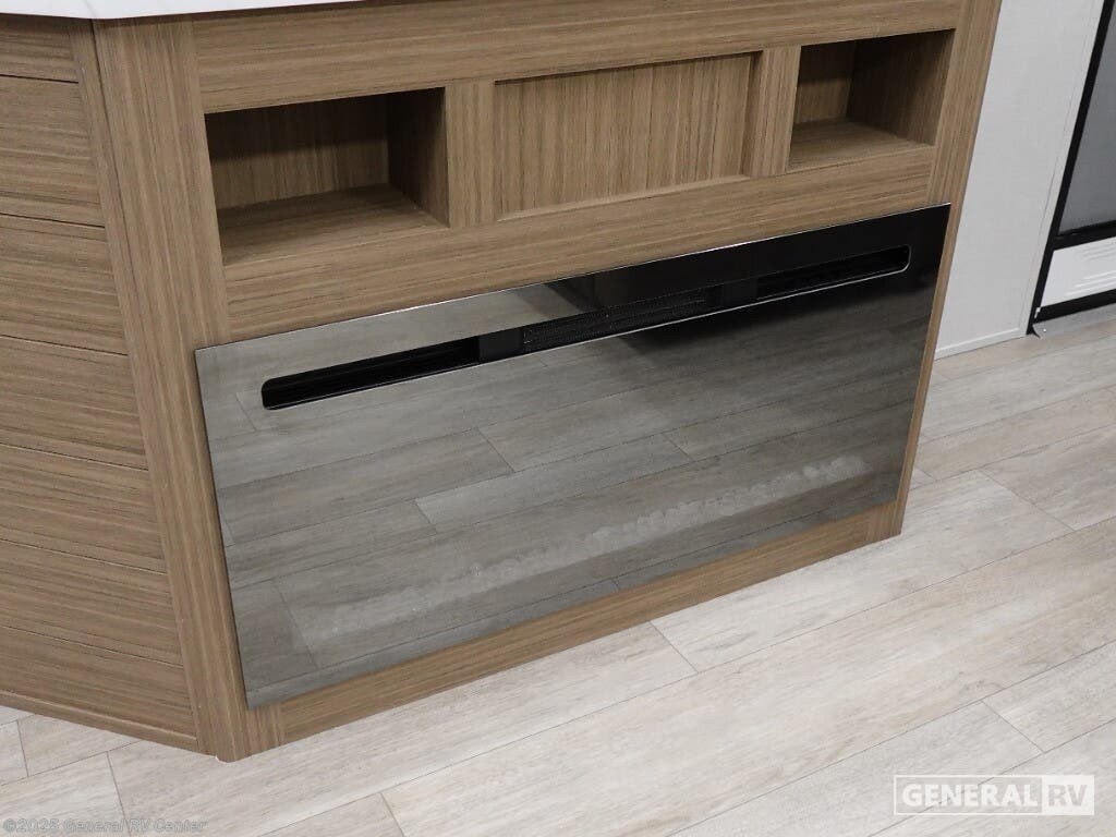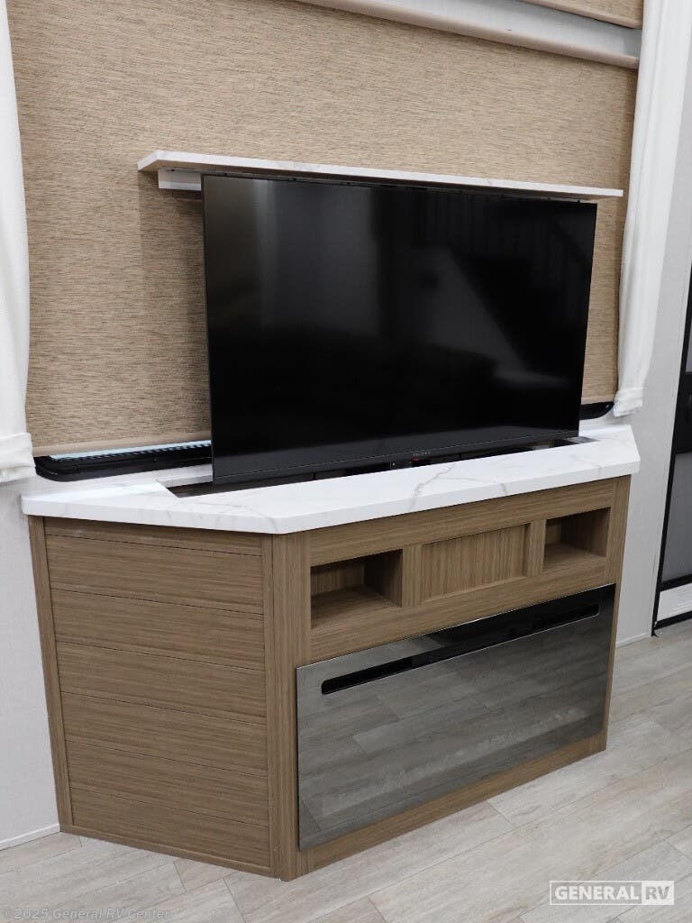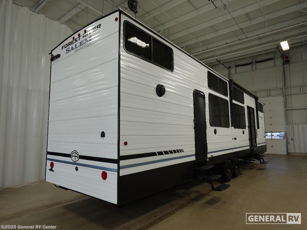 Discover the ultimate in comfort and style with the 2026 Forest River Salem Grand Villa 42ICE. This spacious RV is designed for families and adventurers alike, offering ample room for up to seven sleepers. Its expansive 45-foot length is crafted to provide a luxurious home-away-from-home experience. The centerpiece is the elegant living area featuring a sectional sofa and a cozy fireplace, perfect for relaxing after a day of exploration. The innovative Tele-Vator ensures your entertainment needs are met with a touch of modern flair. Venture into the well-appointed kitchen, where you'll find abundant counter space and storage, making meal prep a breeze. The king bed with Versa Tilt in the master suite promises restful nights, while the loft area, complete with bunk mats and storage, is perfect for the kids or guests. With a walk-in shower and washer/dryer prep, this RV combines practicality with luxury. Enjoy the great outdoors under the generous awning, making every moment memorable. For more details, visit your nearest General RV dealership.
