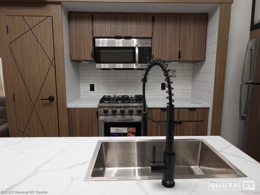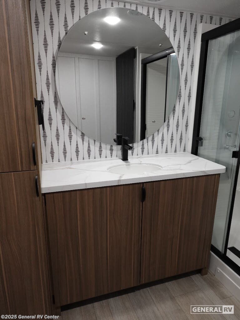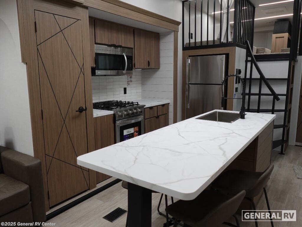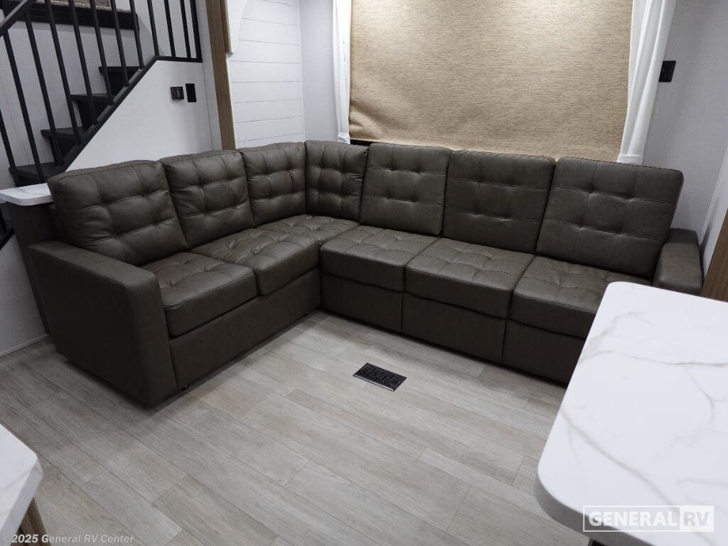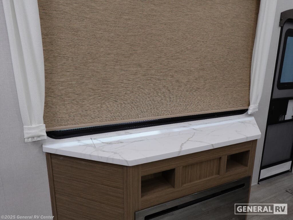 Discover the ultimate in comfort and style with the 2026 Forest River Salem Grand Villa 42ICE. This spacious RV is designed for families and adventurers alike, offering ample room for up to seven sleepers. Its expansive 45-foot length is crafted to provide a luxurious home-away-from-home experience. The centerpiece is the elegant living area featuring a sectional sofa and a cozy fireplace, perfect for relaxing after a day of exploration. The innovative Tele-Vator ensures your entertainment needs are met with a touch of modern flair. Venture into the well-appointed kitchen, where you'll find abundant counter space and storage, making meal prep a breeze. The king bed with Versa Tilt in the master suite promises restful nights, while the loft area, complete with bunk mats and storage, is perfect for the kids or guests. With a walk-in shower and washer/dryer prep, this RV combines practicality with luxury. Enjoy the great outdoors under the generous awning, making every moment memorable. For more details, visit your nearest General RV dealership.
