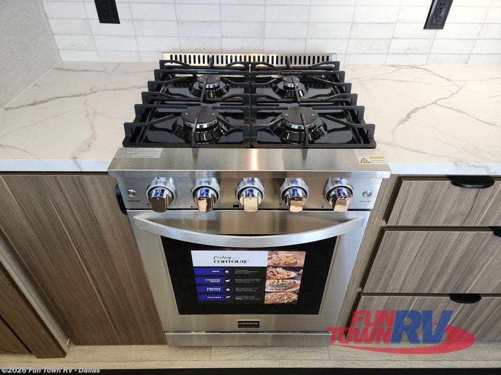 With any Salem Grand Villa destination trailer by Forest River, you can call home wherever you park it! There is a heated and enclosed Accessibelly for added protection, LED "Blade Lighting" under the awning, Lippert On-The-Go ladder prep, plus many more exterior conveniences. Elegant curtain rods and curtains will have you feeling right at home, along with stainless steel kitchen appliances, stylish roller shades, and enhanced floating shelves for added storage. Each model includes heavy duty cabinet hinges for safety and durability, a 60k on-demand tankless water heater for endless hot showers, a JBL 3-Zone media center, plus available options to further customize your trailer.