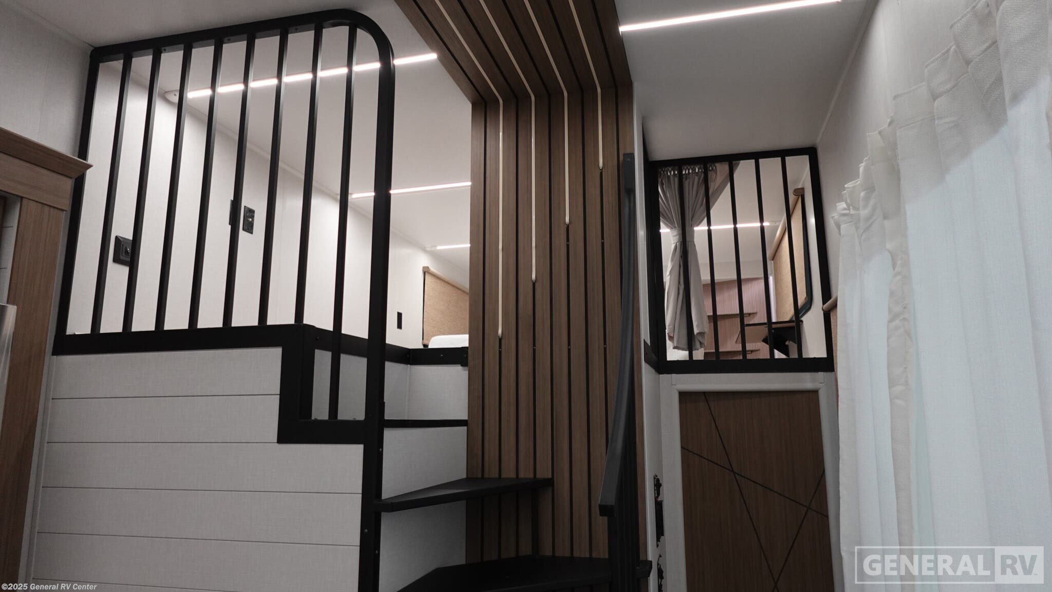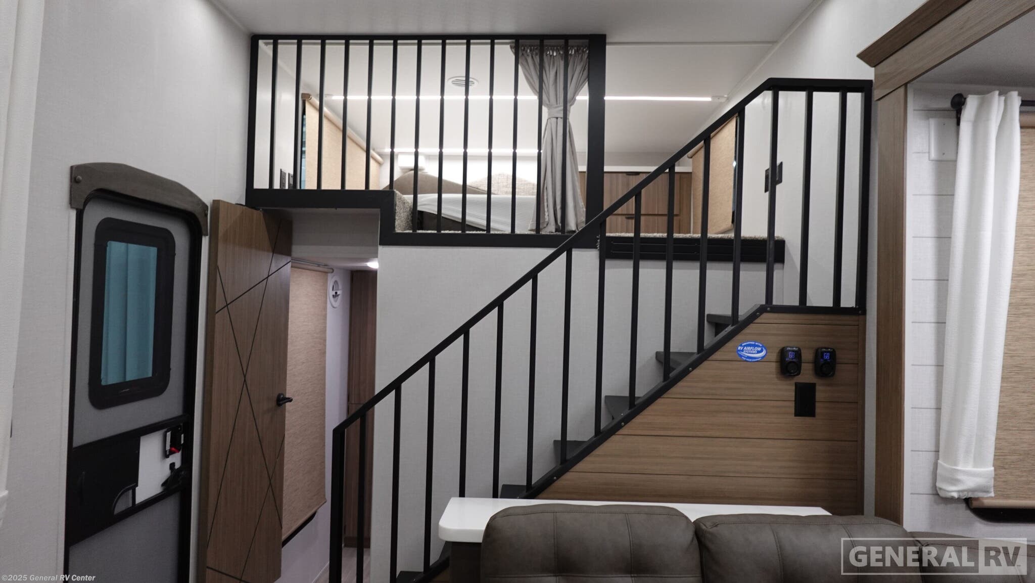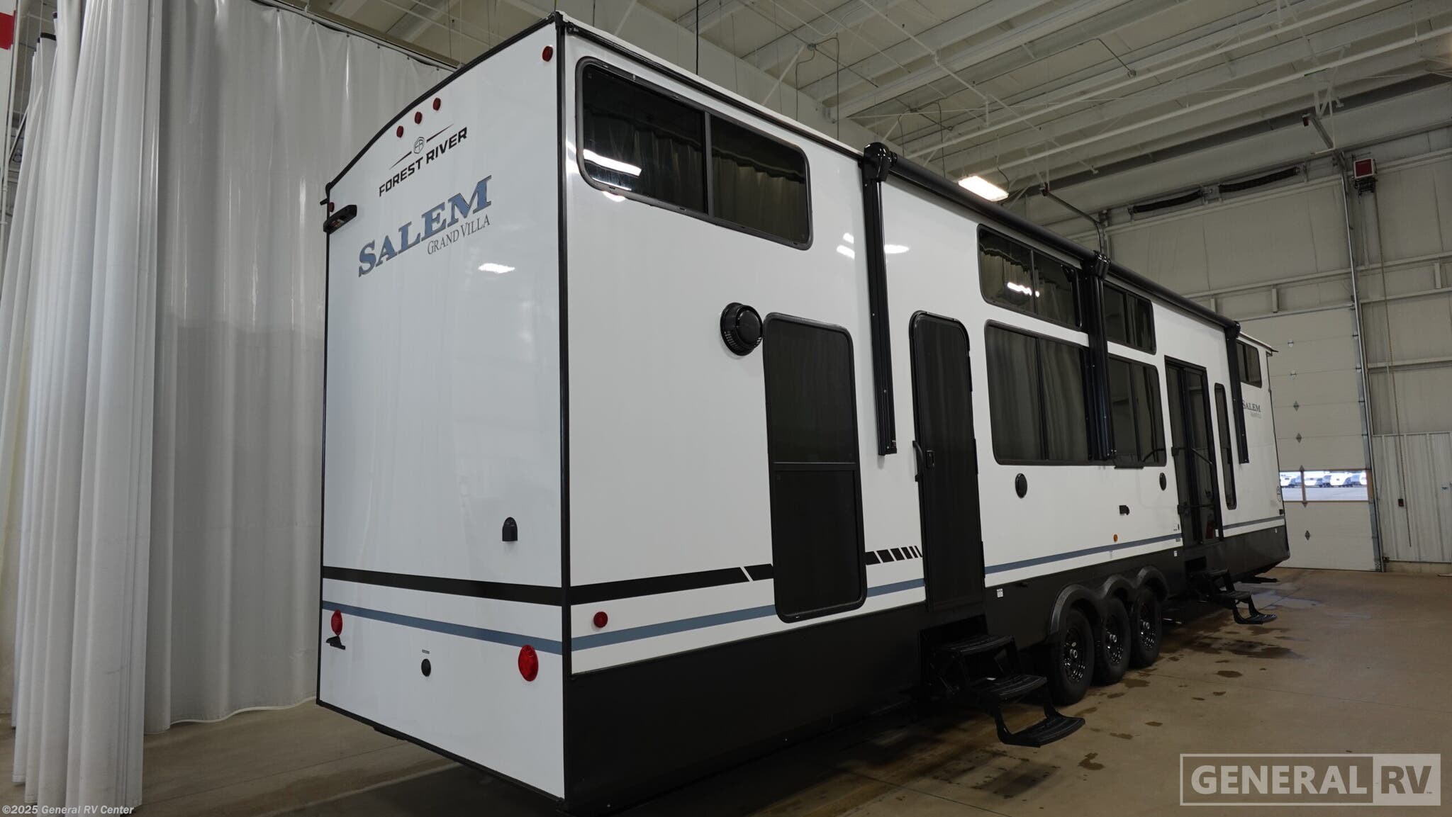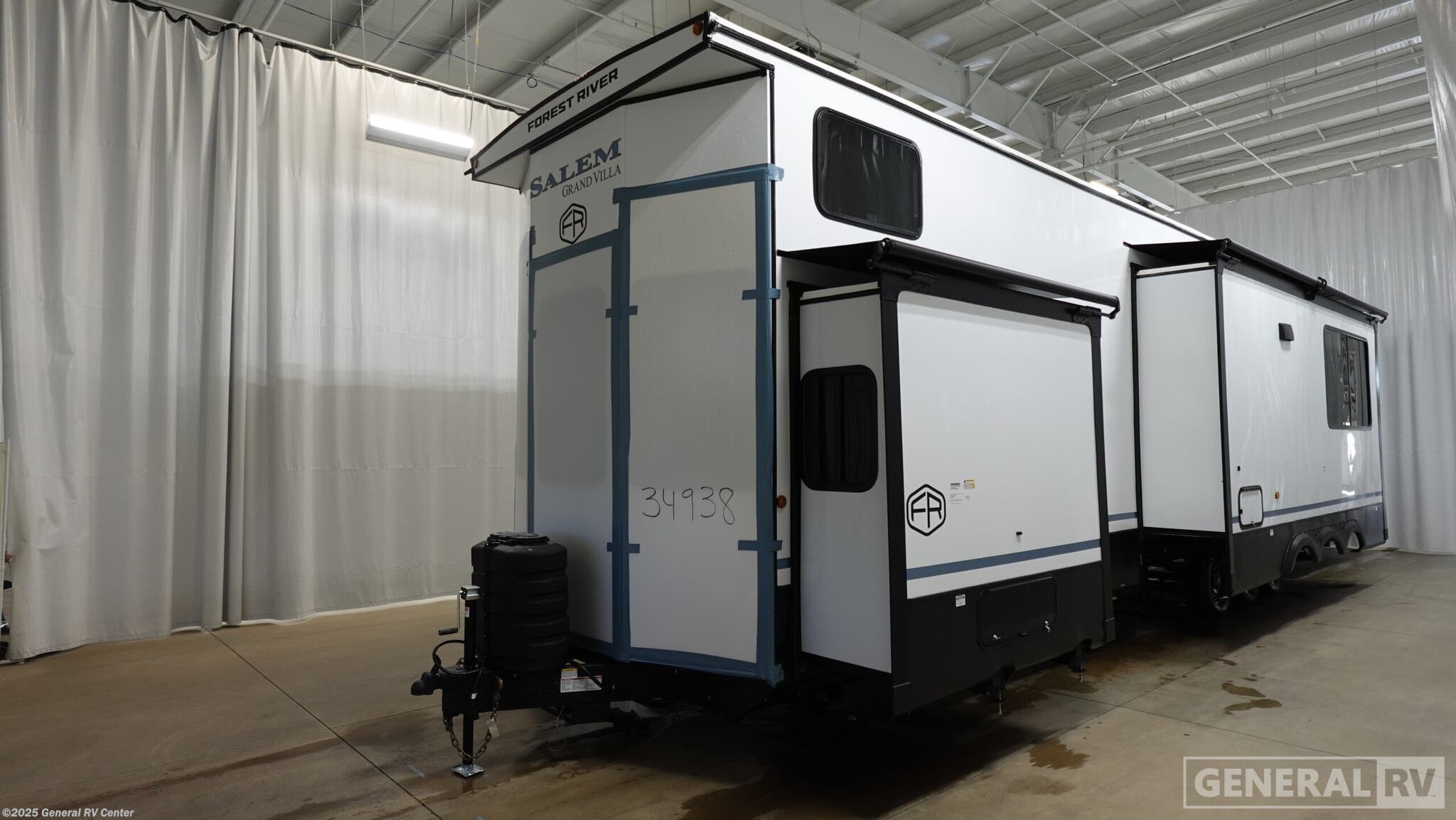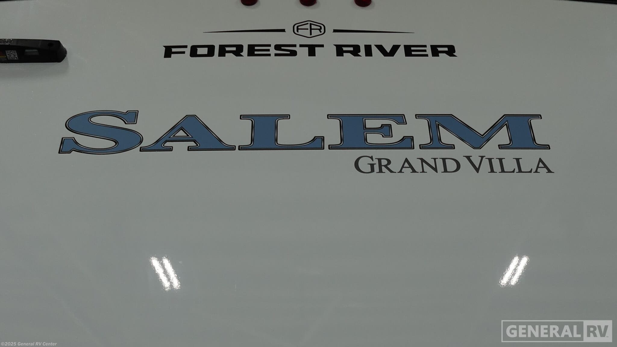Forest River Salem Grand Villa destination trailer 42ZEN highlights: Two Lofts Steps to Loft Fireplace Two Bathrooms This thoughtfully designed 42ZEN model provides a blend of comfort and functionality. It features two lofts for added sleeping and living space, one includes a king mattress and a dresser for storing clothes and essentials, while the second loft offers another Versa queen bed, plus a table with recessed footing, perfect for getting work or study done on the road. There is also a cabinet and shelf to keep everything organized. On the main floor, you'll find a large rear full bathroom, complete with a walk-in shower, linen closet, and washer/dryer, providing all the comforts of home. The main living area centers around a large sectional sofa with room for the whole crew, facing a fireplace and Televator TV, making it the perfect space to relax after a long day. The kitchen island also adds valuable prep space and also serves as a gathering spot with room for stools. Up front, the master bedroom features a king-size bed with Versa Tilt, a dresser, and its own private bathroom, offering convenience and privacy whenever you need it. With any Salem Grand Villa destination trailer by Forest River, you can call home wherever you park it! There is a heated and enclosed Accessibelly for added protection, LED "Blade Lighting" under the awning, Lippert On-The-Go ladder prep, plus many more exterior conveniences. Elegant curtain rods and curtains will have you feeling right at home, along with stainless steel kitchen appliances, stylish roller shades, and enhanced floating shelves for added storage. Each model includes heavy duty cabinet hinges for safety and durability, a 60k on-demand tankless water heater for endless hot showers, a JBL 3-Zone media center, plus available options to further customize your trailer.