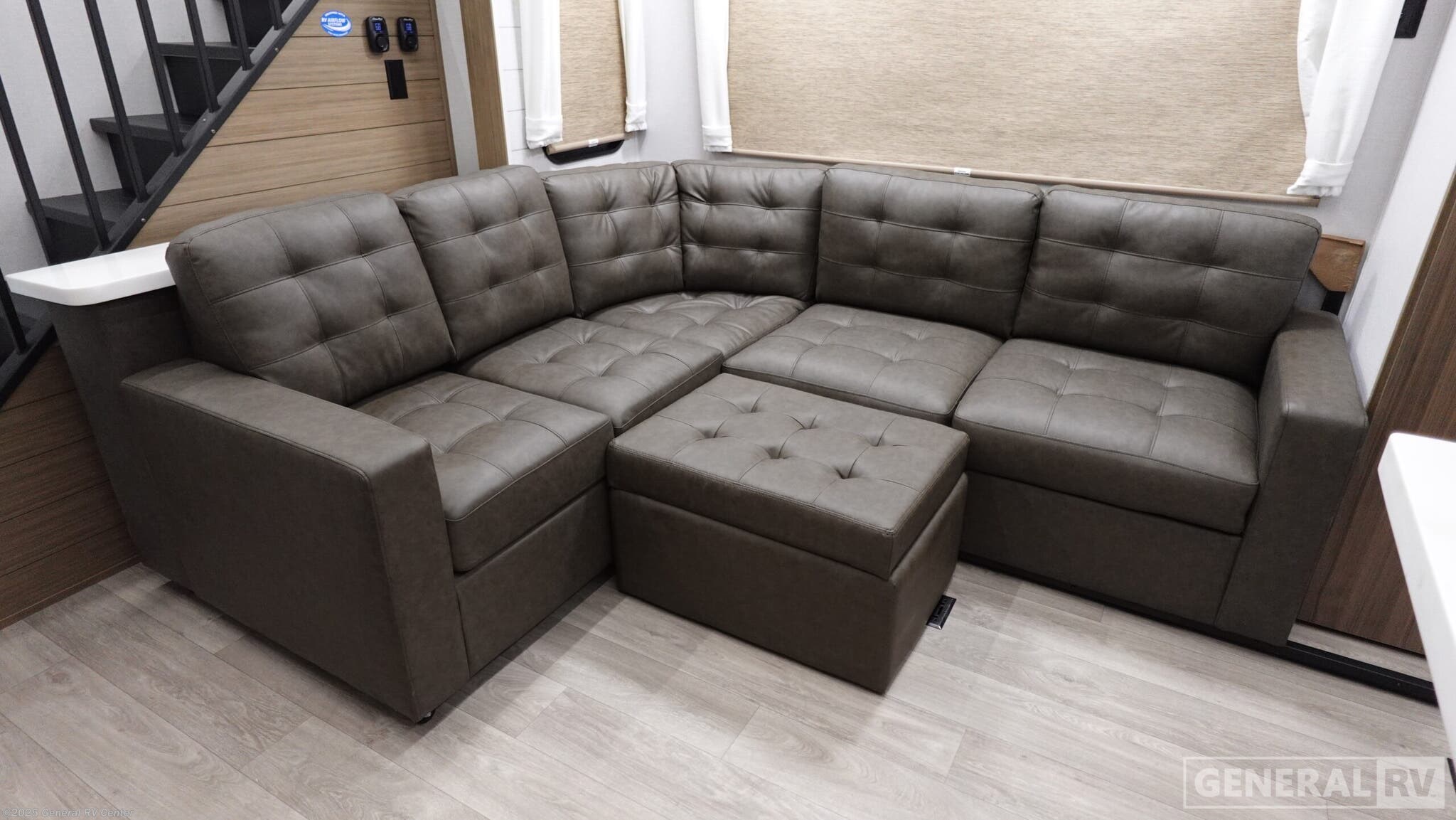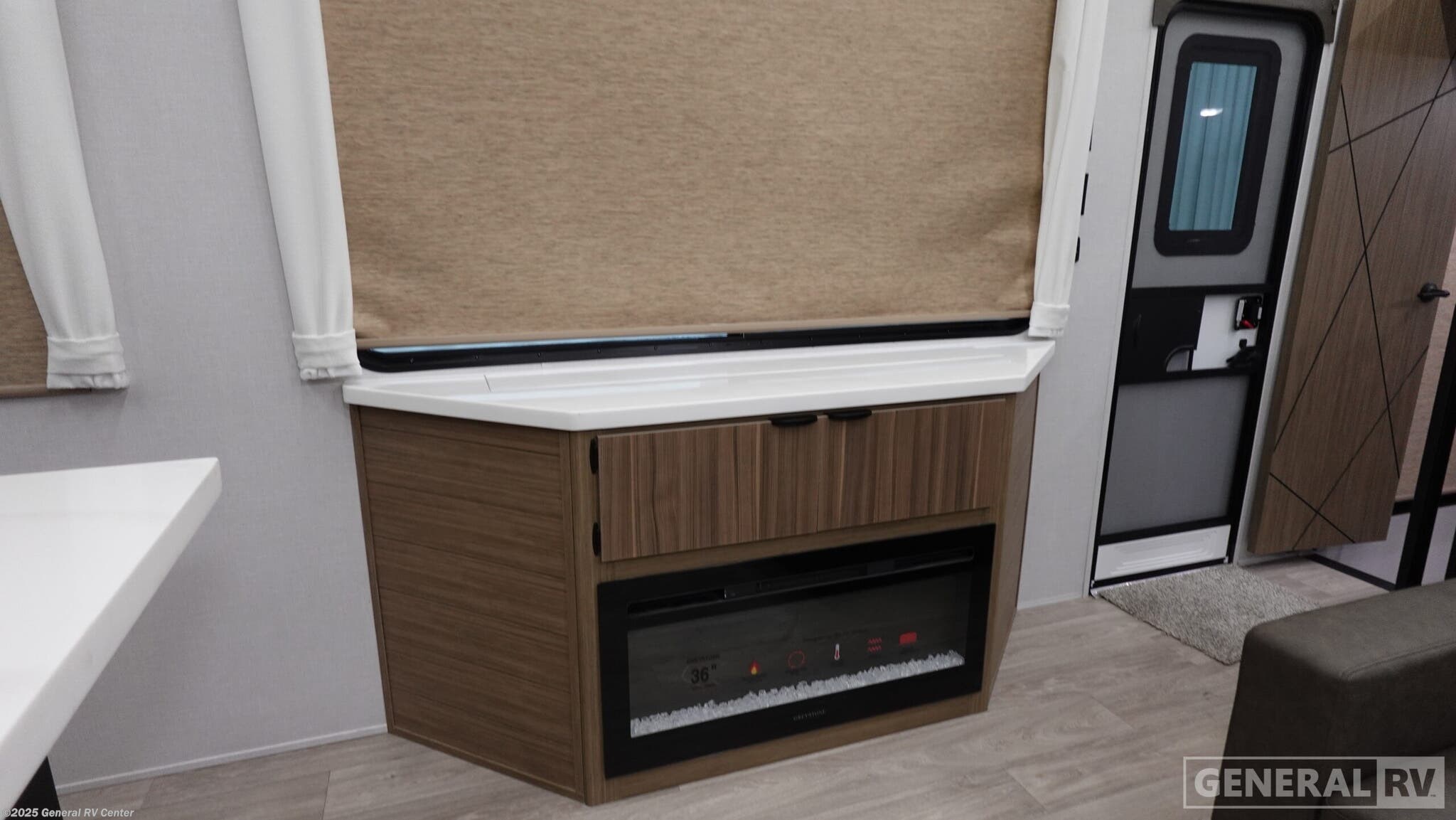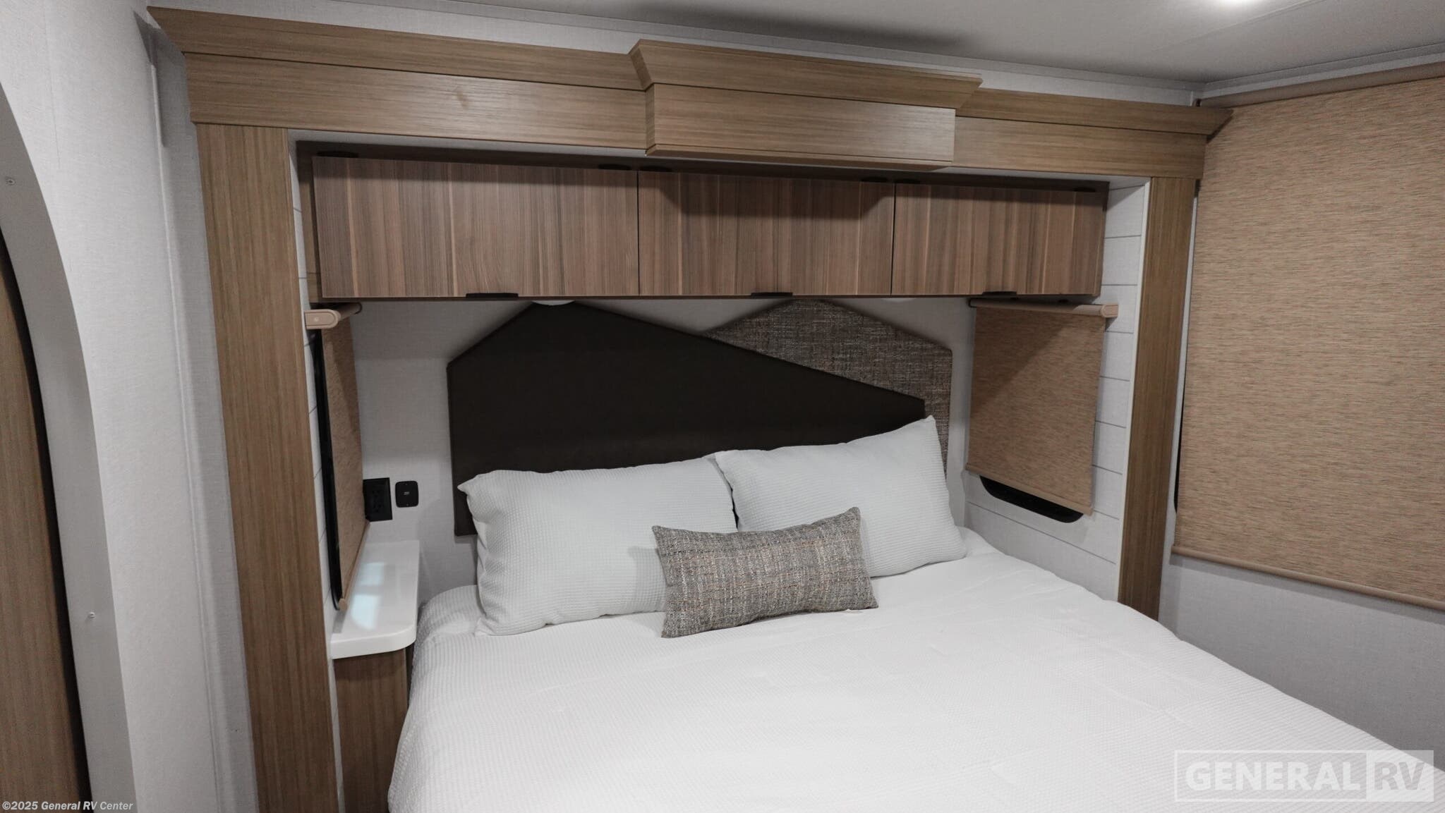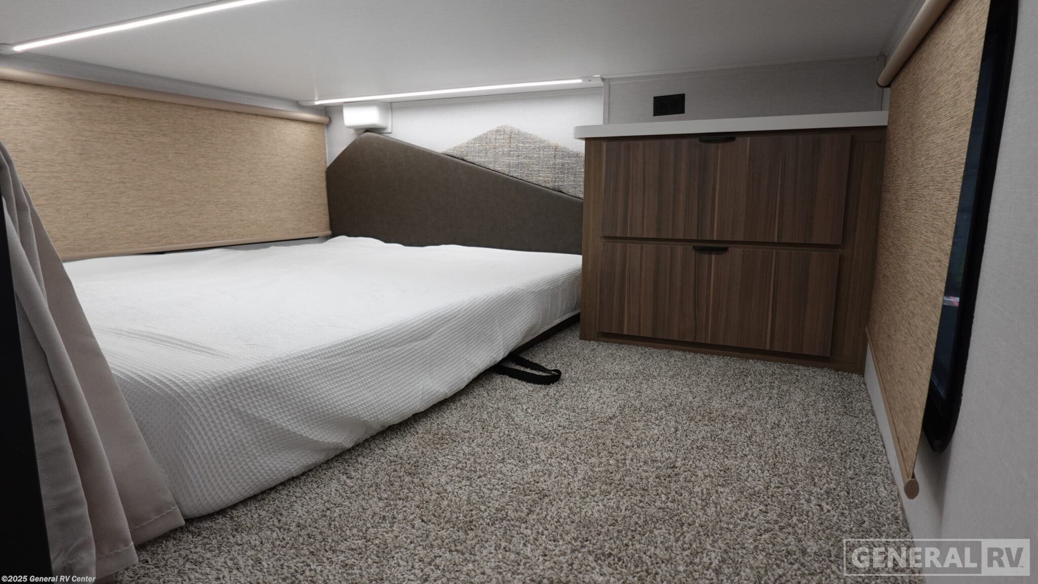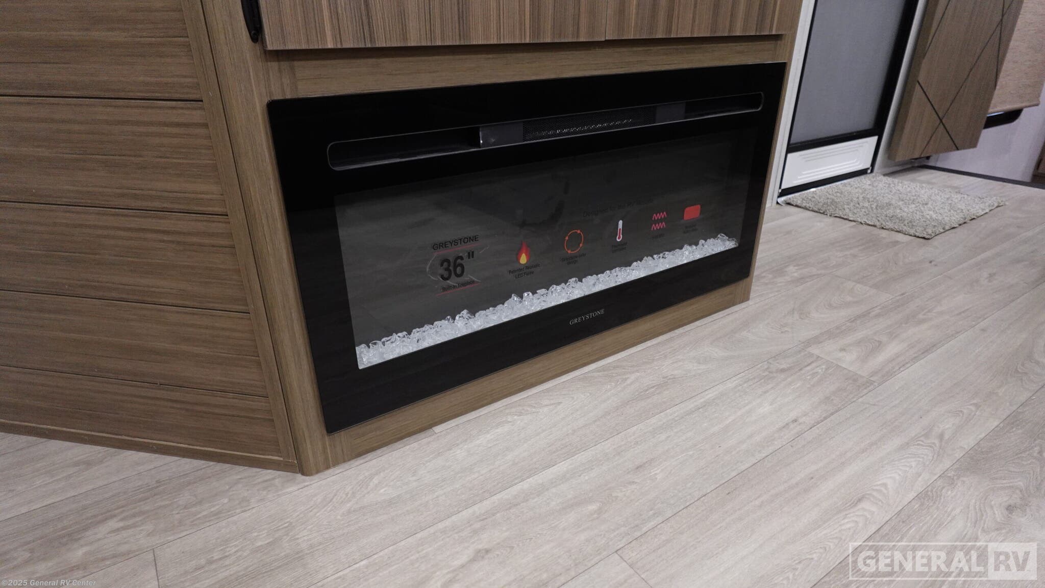 Forest River Salem Grand Villa destination trailer 42ZEN highlights: Two Lofts Steps to Loft Fireplace Two Bathrooms This thoughtfully designed 42ZEN model provides a blend of comfort and functionality. It features two lofts for added sleeping and living space, one includes a king mattress and a dresser for storing clothes and essentials, while the second loft offers another Versa queen bed, plus a table with recessed footing, perfect for getting work or study done on the road. There is also a cabinet and shelf to keep everything organized. On the main floor, you'll find a large rear full bathroom, complete with a walk-in shower, linen closet, and washer/dryer, providing all the comforts of home. The main living area centers around a large sectional sofa with room for the whole crew, facing a fireplace and Televator TV, making it the perfect space to relax after a long day. The kitchen island also adds valuable prep space and also serves as a gathering spot with room for stools. Up front, the master bedroom features a king-size bed with Versa Tilt, a dresser, and its own private bathroom, offering convenience and privacy whenever you need it. With any Salem Grand Villa destination trailer by Forest River, you can call home wherever you park it! There is a heated and enclosed Accessibelly for added protection, LED "Blade Lighting" under the awning, Lippert On-The-Go ladder prep, plus many more exterior conveniences. Elegant curtain rods and curtains will have you feeling right at home, along with stainless steel kitchen appliances, stylish roller shades, and enhanced floating shelves for added storage. Each model includes heavy duty cabinet hinges for safety and durability, a 60k on-demand tankless water heater for endless hot showers, a JBL 3-Zone media center, plus available options to further customize your trailer.