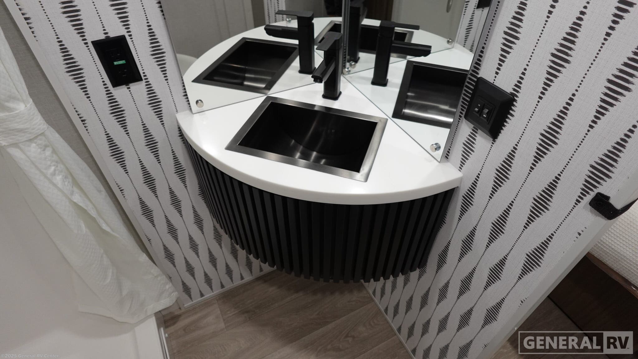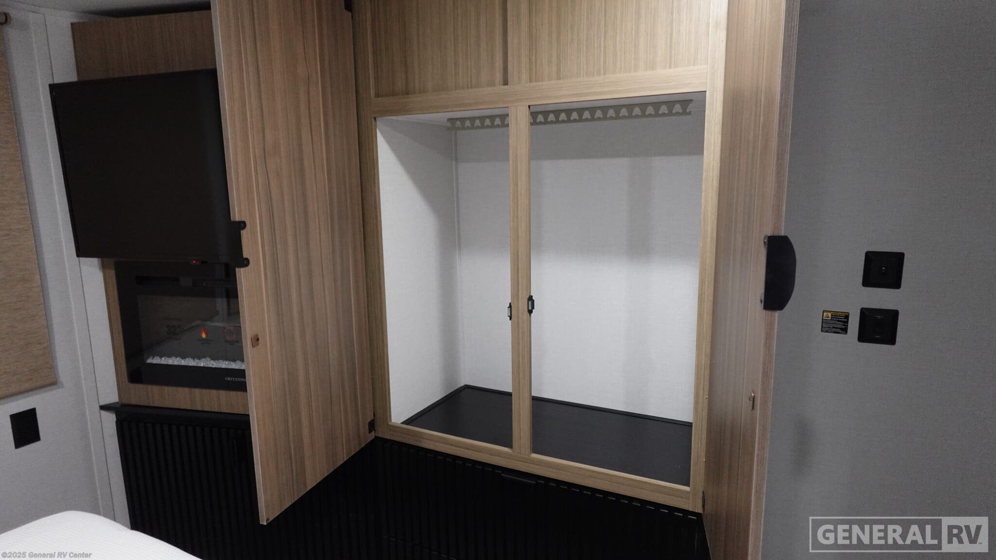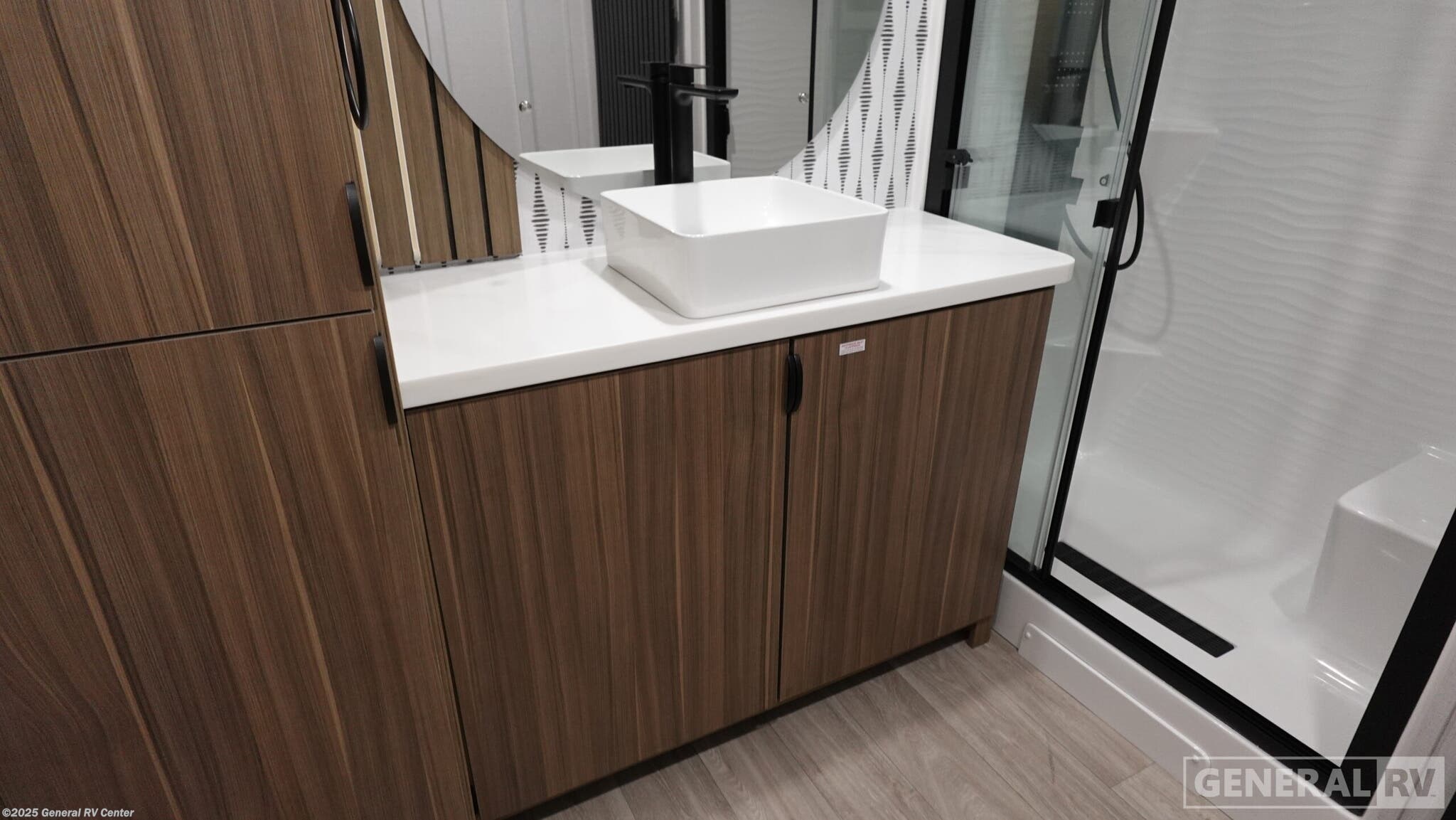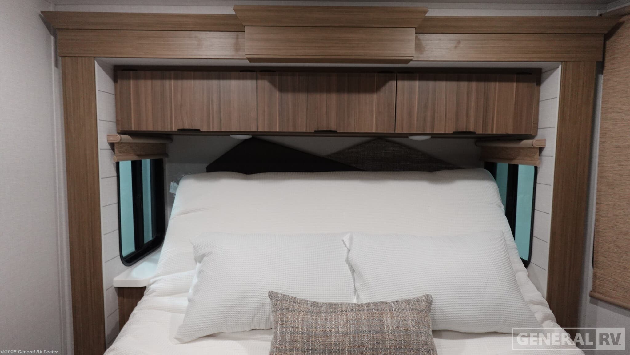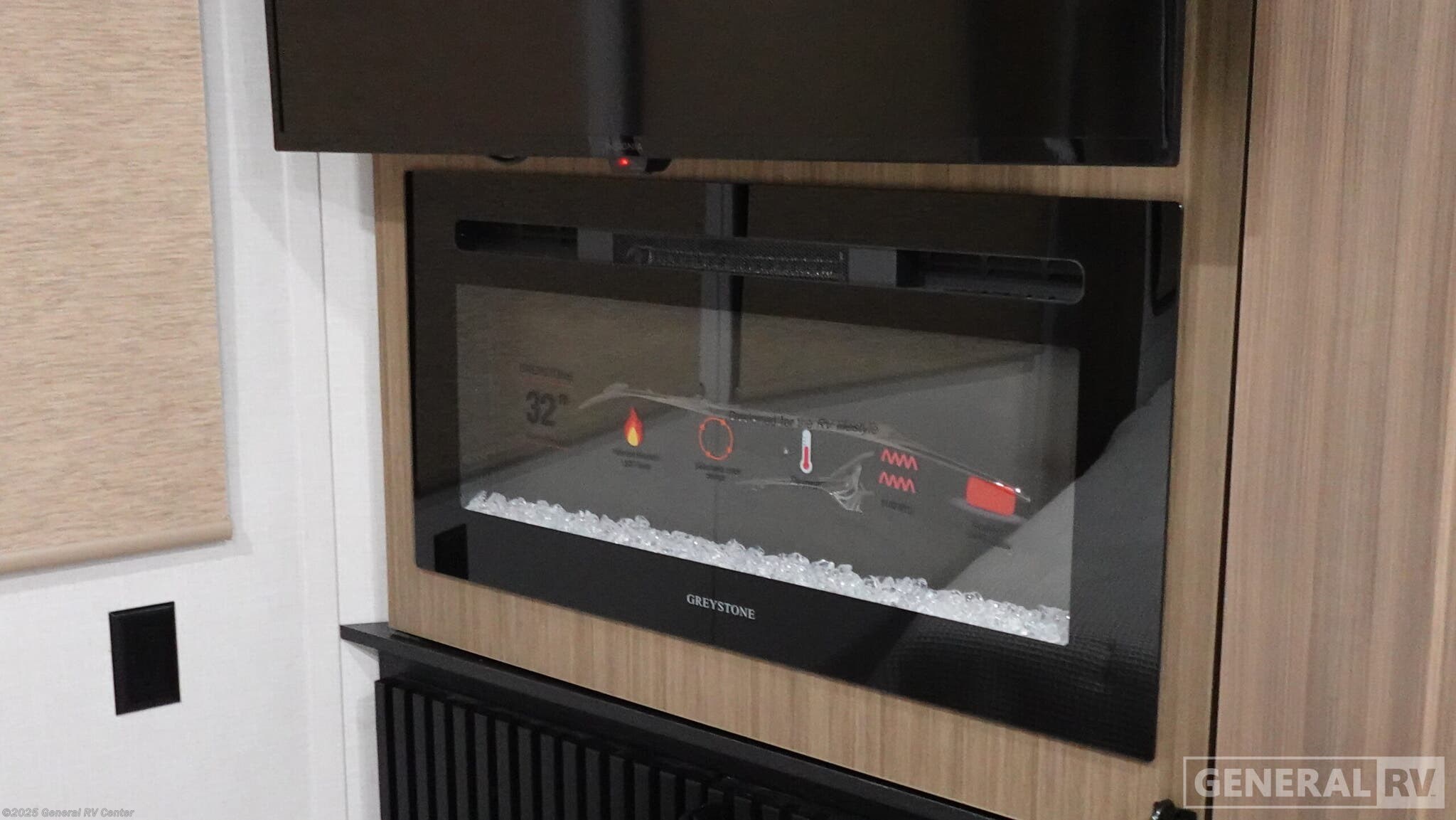 Forest River Salem Grand Villa destination trailer 42ZEN highlights: Two Lofts Steps to Loft Fireplace Two Bathrooms This thoughtfully designed 42ZEN model provides a blend of comfort and functionality. It features two lofts for added sleeping and living space, one includes a king mattress and a dresser for storing clothes and essentials, while the second loft offers another Versa queen bed, plus a table with recessed footing, perfect for getting work or study done on the road. There is also a cabinet and shelf to keep everything organized. On the main floor, you'll find a large rear full bathroom, complete with a walk-in shower, linen closet, and washer/dryer, providing all the comforts of home. The main living area centers around a large sectional sofa with room for the whole crew, facing a fireplace and Televator TV, making it the perfect space to relax after a long day. The kitchen island also adds valuable prep space and also serves as a gathering spot with room for stools. Up front, the master bedroom features a king-size bed with Versa Tilt, a dresser, and its own private bathroom, offering convenience and privacy whenever you need it. With any Salem Grand Villa destination trailer by Forest River, you can call home wherever you park it! There is a heated and enclosed Accessibelly for added protection, LED "Blade Lighting" under the awning, Lippert On-The-Go ladder prep, plus many more exterior conveniences. Elegant curtain rods and curtains will have you feeling right at home, along with stainless steel kitchen appliances, stylish roller shades, and enhanced floating shelves for added storage. Each model includes heavy duty cabinet hinges for safety and durability, a 60k on-demand tankless water heater for endless hot showers, a JBL 3-Zone media center, plus available options to further customize your trailer.