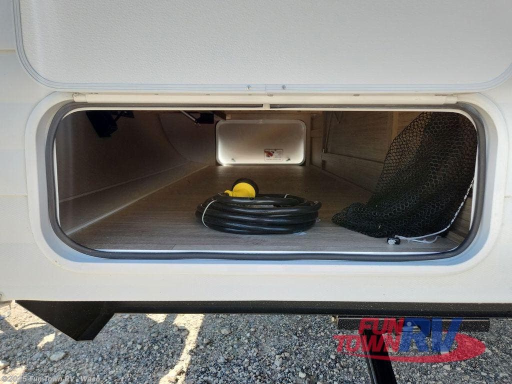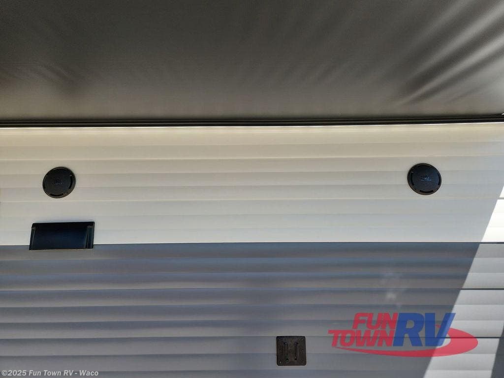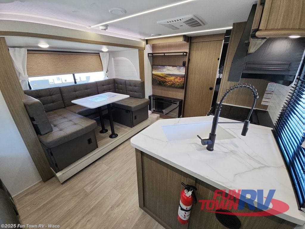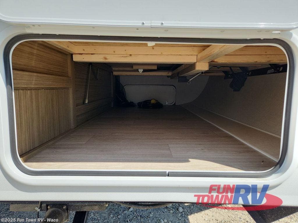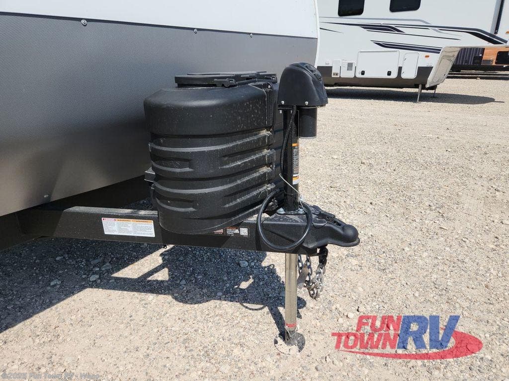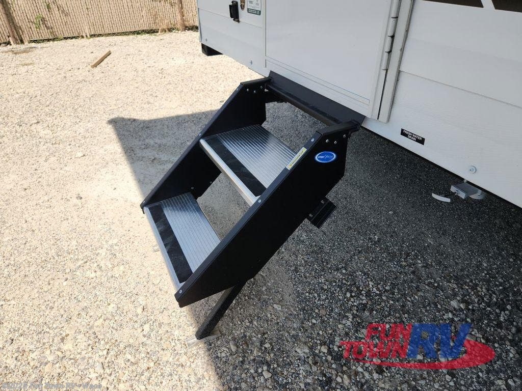This travel trailer is packed full of features, but is still lightweight coming in at just over 5,000 lbs.! You will feel right at home in the front master bedroom with a custom king bed with Versa Tilt and a closet to keep your clothes tidy. The walk-through bathroom has a walk-in shower with fiberglass surround and a skylight above for added natural lighting as you get ready. The U-shaped dinette slide has a panoramic window for you to enjoy your beautiful scenery as you eat dinner, and there is a fireplace at the entertainment center for a relaxing evening indoors. There is a pass-through storage area to store your outdoor camping gear, and a 16' awning will provide shade as you're visiting outdoors.