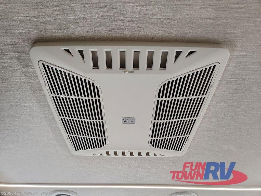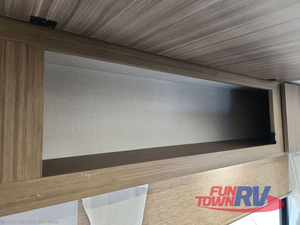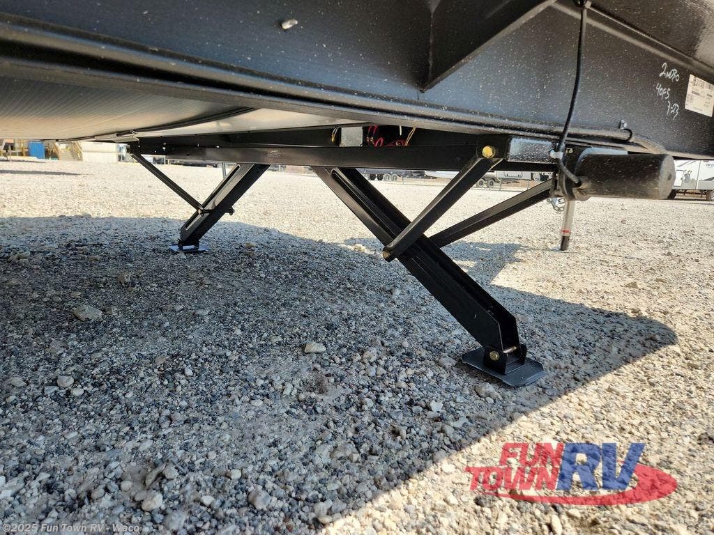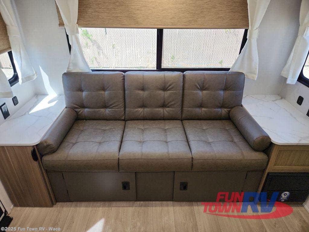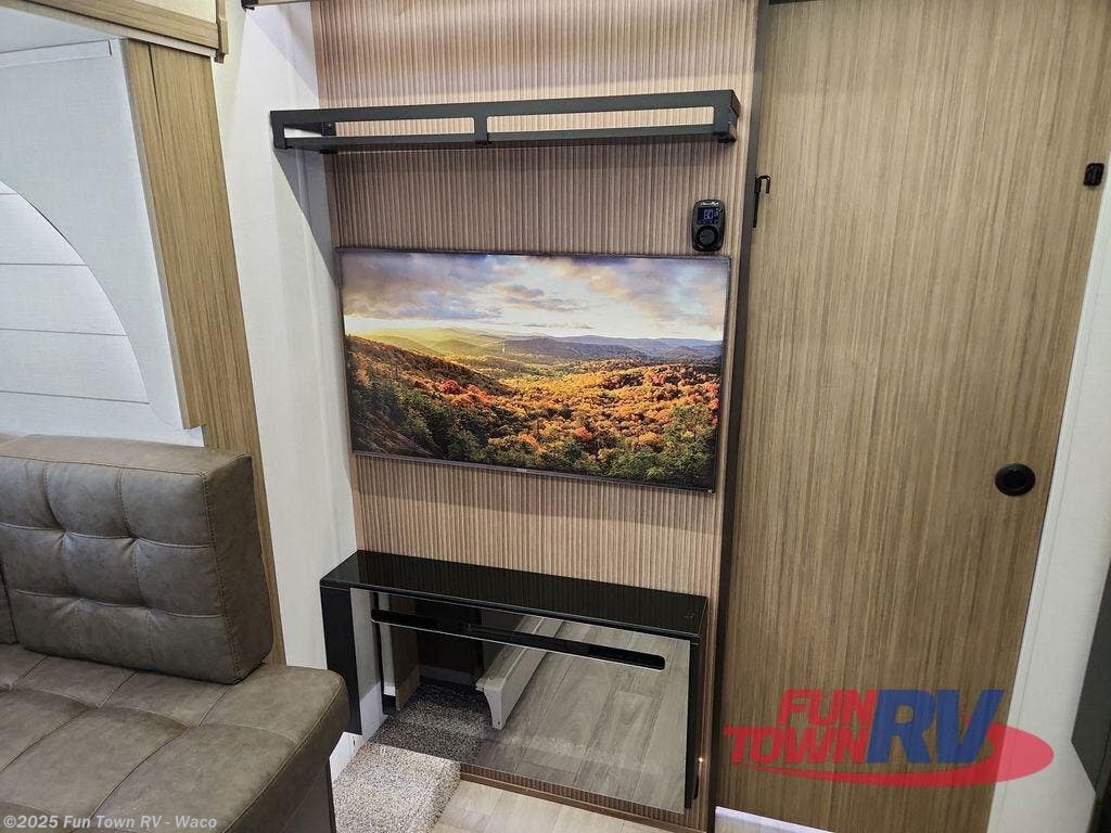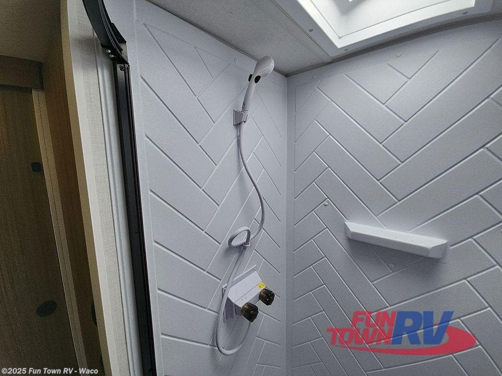 This travel trailer is packed full of features, but is still lightweight coming in at just over 5,000 lbs.! You will feel right at home in the front master bedroom with a custom king bed with Versa Tilt and a closet to keep your clothes tidy. The walk-through bathroom has a walk-in shower with fiberglass surround and a skylight above for added natural lighting as you get ready. The U-shaped dinette slide has a panoramic window for you to enjoy your beautiful scenery as you eat dinner, and there is a fireplace at the entertainment center for a relaxing evening indoors. There is a pass-through storage area to store your outdoor camping gear, and a 16' awning will provide shade as you're visiting outdoors.