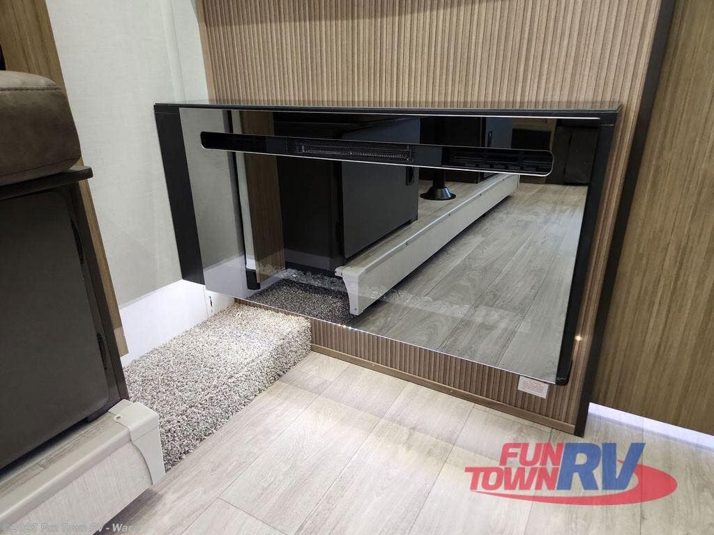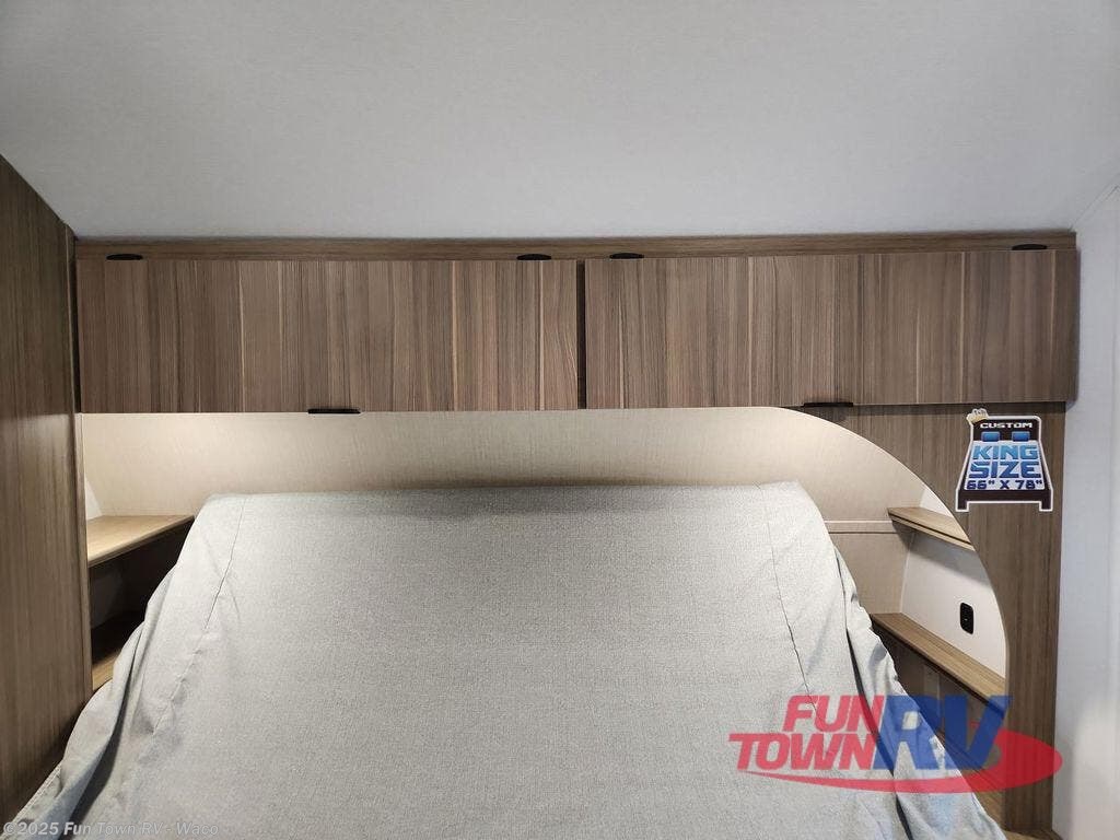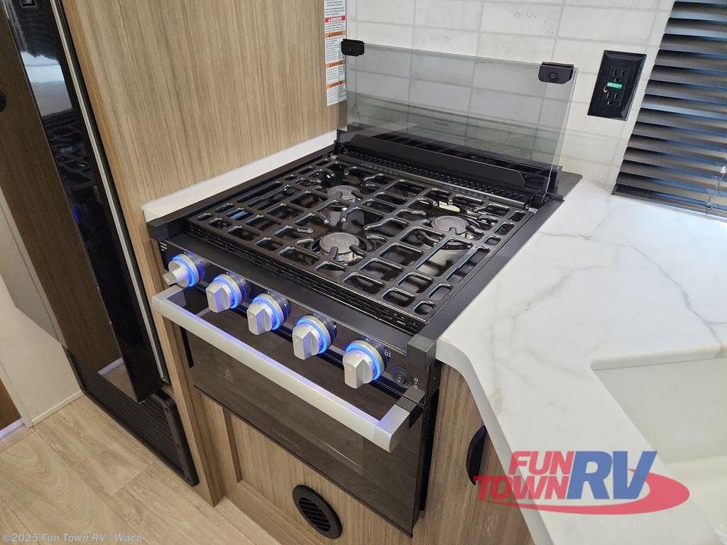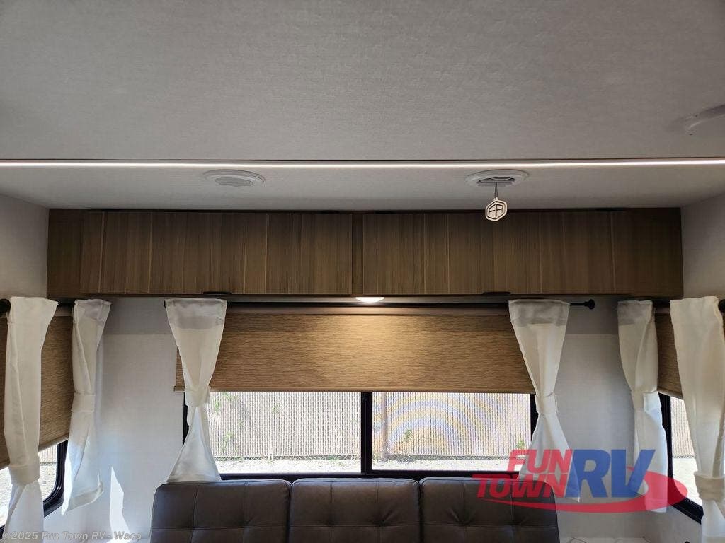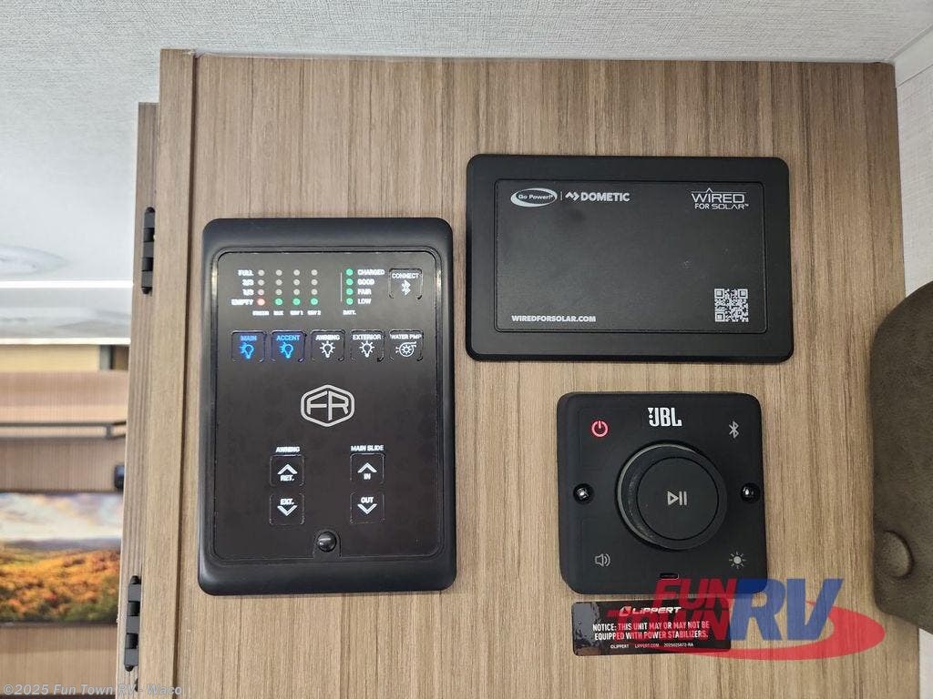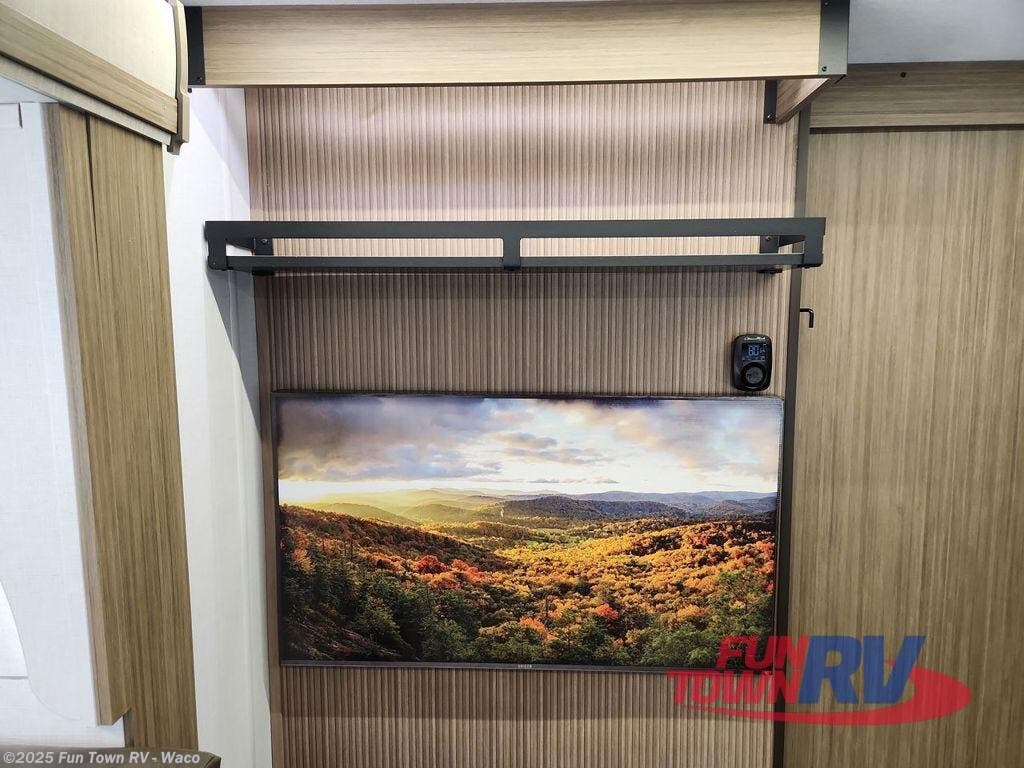 This travel trailer is packed full of features, but is still lightweight coming in at just over 5,000 lbs.! You will feel right at home in the front master bedroom with a custom king bed with Versa Tilt and a closet to keep your clothes tidy. The walk-through bathroom has a walk-in shower with fiberglass surround and a skylight above for added natural lighting as you get ready. The U-shaped dinette slide has a panoramic window for you to enjoy your beautiful scenery as you eat dinner, and there is a fireplace at the entertainment center for a relaxing evening indoors. There is a pass-through storage area to store your outdoor camping gear, and a 16' awning will provide shade as you're visiting outdoors.