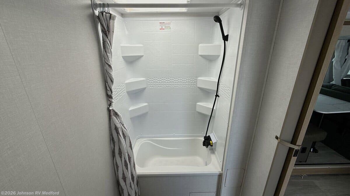The 2026 Forest River Salem Cruise Lite 25ICE is a brand-new travel trailer designed to offer comfort, convenience, and style for your adventures on the road. This recreational vehicle (RV) is crafted with attention to detail, ensuring a delightful experience whether you're camping in the wilderness or parked at a scenic spot. The exterior of the Salem Cruise Lite features a sleek fiberglass design, providing durability and an attractive appearance. It is equipped with a 200w solar panel and a 30-amp solar controller, making it energy-efficient and eco-friendly. The aluminum-sided exterior and smooth aluminum front cap enhance its aerodynamic profile, while the diamond plate rock guard offers additional protection. The trailer is built on a powder-coated I-beam frame with a cambered chassis, ensuring stability and strength. Nitrogen-filled tires and a 5/8-inch TG plywood decking contribute to a smooth and reliable ride. Inside, the living spaces are thoughtfully designed to maximize comfort and functionality. The adjustable awning with 4K LED blade lighting creates a cozy outdoor space. StepAbove main entry steps provide easy access, while dimmable 4K LED blade lighting sets the perfect ambiance. Textured adjustable roller shades and designer window treatments add a touch of elegance. The Stow N Go storage solution and Versa furniture offer versatile storage and seating options. The TFL laminate entertainment center, complete with TV brackets and TV prep, ensures entertainment on the go. Floating shelves and overhead cabinets provide ample storage space, while TFL laminate cabinet doors and heavy-duty cabinet hinges ensure durability. The dining area features a dinette booth with a pull-out table and chairs, perfect for family meals. A fold-out trash can, galley window, seamless countertops, and designer backsplash enhance the kitchen's functionality and style. The high-rise faucet, refrigerator, Versa-Range, range hood, and microwave make meal preparation a breeze. Outdoor cooking options are also available for those who enjoy al fresco dining. For entertainment and connectivity, the RV is equipped with a systems center, backup camera prep, JBL stereo, and TV bracket TV prep. An outdoor TV bracket allows for outdoor viewing, adding to the versatility of this travel trailer. Sleeping arrangements are comfortable and convenient, featuring a custom Versa-Tilt bed with overbed storage and a built-in laundry hamper. A closet provides additional storage space, and pet step bunk beds are available for your furry companions. The bathroom is designed with a backlit radius mirror, shower surround, and toilet, ensuring a comfortable and private space for personal care. Mechanically, the Salem Cruise Lite is equipped with a battery disconnect switch, roof mount solar prep, 30-amp service cord, and a 13.5k AC unit for climate control. Seamless holding tanks, color-coded water lines, and a 60k on-demand tankless hot water system ensure efficient operation. The coach build includes a 5-inch bowed truss roof rafters, 3/8-inch walk-on roof decking, and Tufflex PVC roofing for durability and weather resistance. Removable Accessibelly panels and pass-through storage add to the convenience and functionality of this travel trailer. Overall, the 2026 Forest River Salem Cruise Lite 25ICE is a well-equipped and stylish travel trailer, perfect for those seeking adventure and comfort on the road. With its thoughtful design and modern features, it promises a memorable and enjoyable travel experience. ???