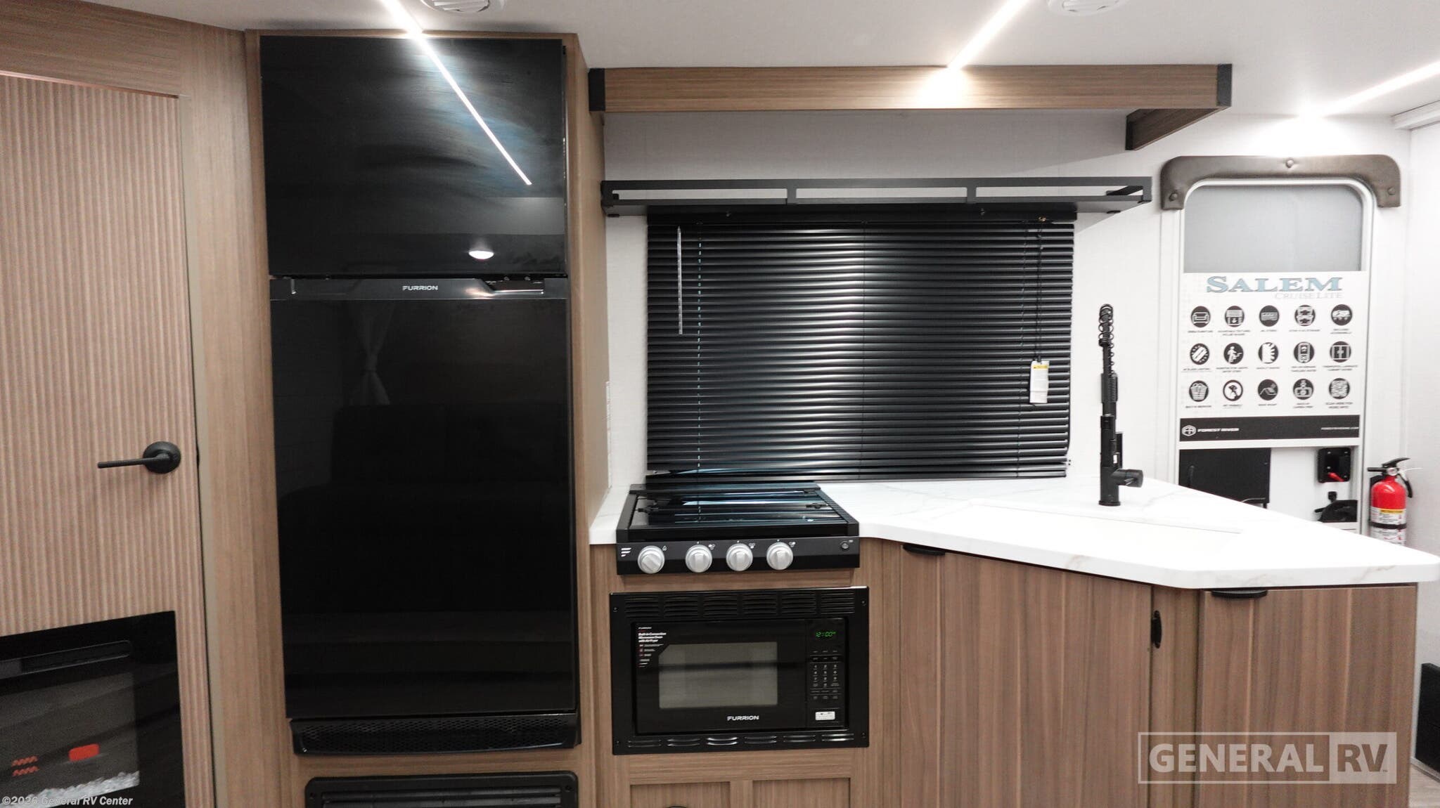 **Forest River Salem Cruise Lite travel trailer 25ICE highlights:** * Front Private Bedroom * Large Slide Out * Pull-Out Drawers * 16' Awning * Fireplace * Pass-Through Storage You're sure to make camping memories in this spacious travel trailer! You can sleep four to five people each night thanks to the custom king bed with Versa Tilt in the front bedroom plus the Versa-Lounge and booth dinette within the large slide out! The full kitchen will let you make meals each day, and you'll appreciate the hidden pantry with shelves behind the fireplace. And don't overlook the full rear bath, complete with a tub/shower and ample counter space for your things. The Salem Cruise Lite travel trailers are packed with hassle-free camping amenities! There are a variety of floorplans to choose from so you can find the best one to fit your needs. The enclosed Accessibelly will help protect against the elements and debris during transport, and the exterior is sure to be eye-catching! There are stylish roller shades inside, along with updated backsplash, elegant curtain rods and curtains, plus many more interior comforts! Choose a Salem Cruise Lite travel trailer today for quality and value!
