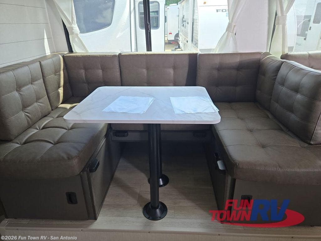This versatile bunkhouse travel trailer is big enough for the whole family! The private bunkhouse has a set of 30" x 74" bunk beds and a 30" x 74" bunk bed above a Jiffy sofa. Just outside the bunkhouse is a pantry big enough to store everyone's favorite snacks, and a full bathroom with a walk-in shower. The cooktop is just waiting for you to create a delicious meal, and the U-shaped dinette welcomes everyone to enjoy each meal in comfort, plus there is a large panoramic window for a perfect view of your surroundings. Any time of day kick back on the Versa-lounge and relax by the fireplace at the entertainment center. The exterior features a pass-through storage area for you to keep your outdoor camping gear stowed away when not in use, a 16' awning to protect you, and an exterior camp kitchen!