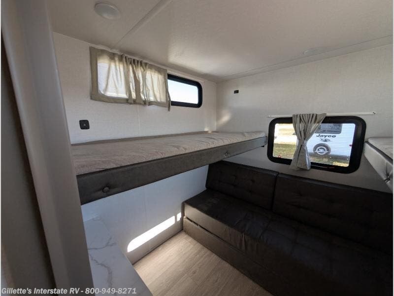This travel trailer is new to the lineup and offers a large amount of versatility! The rear private bunkhouse has two 30" x 74" Versa-bunks and a Versa-queen bed so that more can join in on the camping fun. Start each morning feeling clean and fresh after showering in the walk-in shower with fiberglass surround then head to the front private bedroom to change. The kitchen has an oversized refrigerator to keep your perishables fresh, a cooktop for meals, and a U-shaped dinette for dining, game time, or just hanging out.