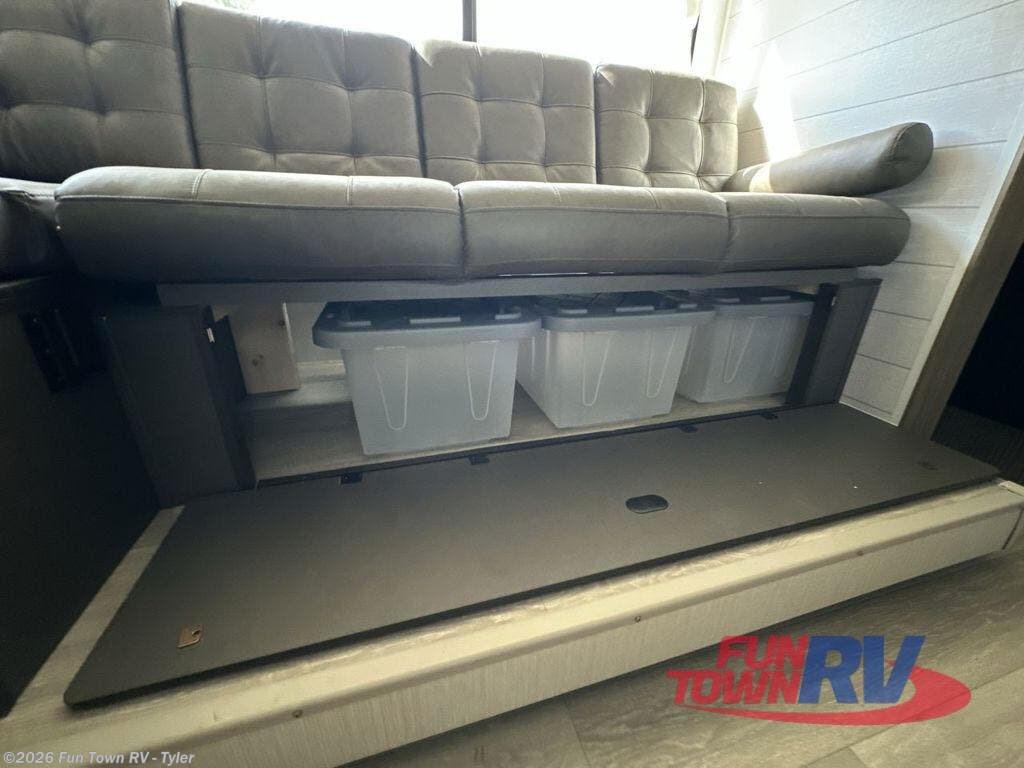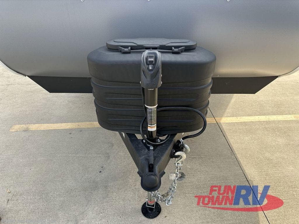 This travel trailer is new to the lineup and offers a large amount of versatility! The rear private bunkhouse has two 30" x 74" Versa-bunks and a Versa-queen bed so that more can join in on the camping fun. Start each morning feeling clean and fresh after showering in the walk-in shower with fiberglass surround then head to the front private bedroom to change. The kitchen has an oversized refrigerator to keep your perishables fresh, a cooktop for meals, and a U-shaped dinette for dining, game time, or just hanging out.