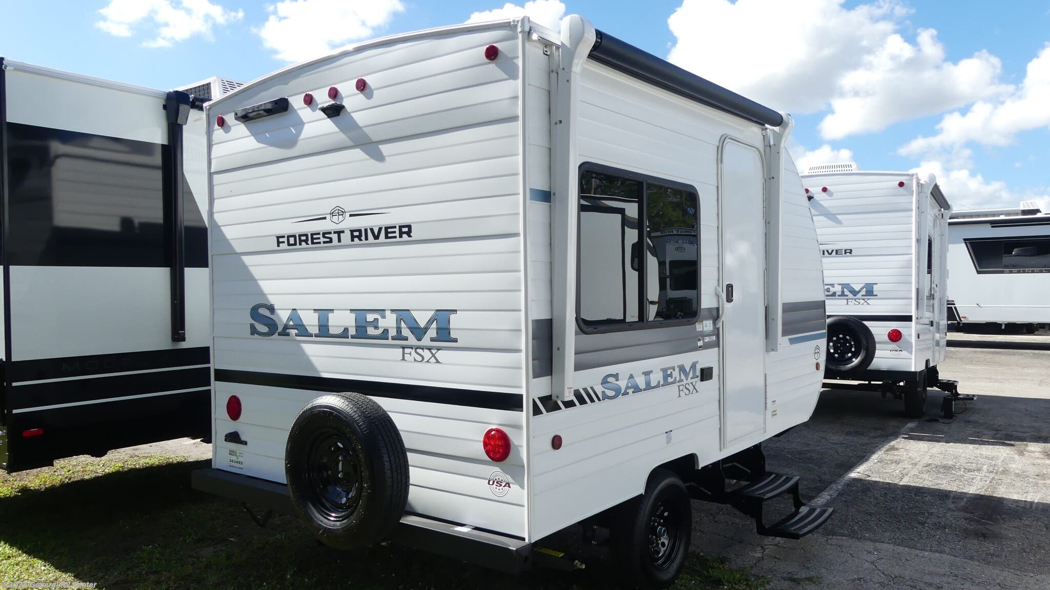 **Forest River Salem FSX travel trailer 135ICE highlights:** - Walk-In Shower - 12V Refrigerator - Overhead Storage This lightweight travel trailer has everything you need to enjoy camping trips! There is a front east to west custom queen bed with storage at the foot of the bed and overhead for your valuables. A private bath includes a toilet and walk-in shower so you can easily get ready each day, and you can prepare your meals on the two-burner cooktop when you get hungry. The booth dinette will provide dining space. Don't let this trailer get away! The Forest River Salem FSX travel trailers and toy hauler travel trailers are ultra comfortable and lightweight, perfect for first time or seasoned campers alike! You will love how easy it will be to relax with residential features that will make your space feel just like home, and the durable construction means you can enjoy your RV for years to come. There are a wide variety of floorplans to choose from, including couple's trailers, bunk models, and toy haulers, all with full bath and kitchen amenities and plenty of storage for all your gear!