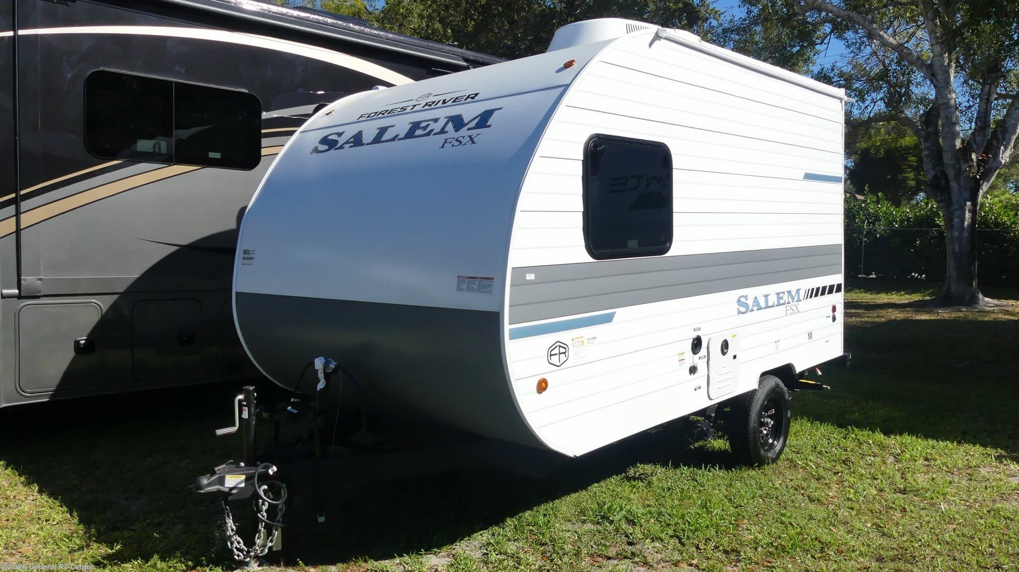 **Forest River Salem FSX travel trailer 135ICE highlights:** - Walk-In Shower - 12V Refrigerator - Overhead Storage This lightweight travel trailer has everything you need to enjoy camping trips! There is a front east to west custom queen bed with storage at the foot of the bed and overhead for your valuables. A private bath includes a toilet and walk-in shower so you can easily get ready each day, and you can prepare your meals on the two-burner cooktop when you get hungry. The booth dinette will provide dining space. Don't let this trailer get away! The Forest River Salem FSX travel trailers and toy hauler travel trailers are ultra comfortable and lightweight, perfect for first time or seasoned campers alike! You will love how easy it will be to relax with residential features that will make your space feel just like home, and the durable construction means you can enjoy your RV for years to come. There are a wide variety of floorplans to choose from, including couple's trailers, bunk models, and toy haulers, all with full bath and kitchen amenities and plenty of storage for all your gear!