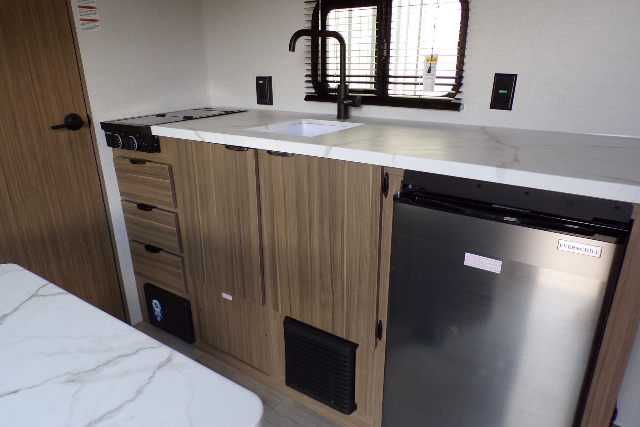 - Refrigerator and Stove Top Burner for easy meal preparation