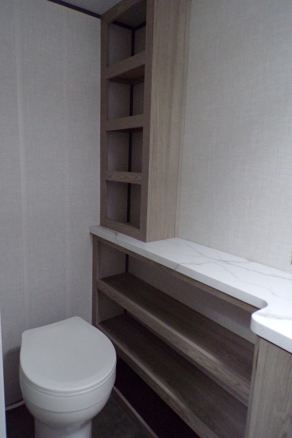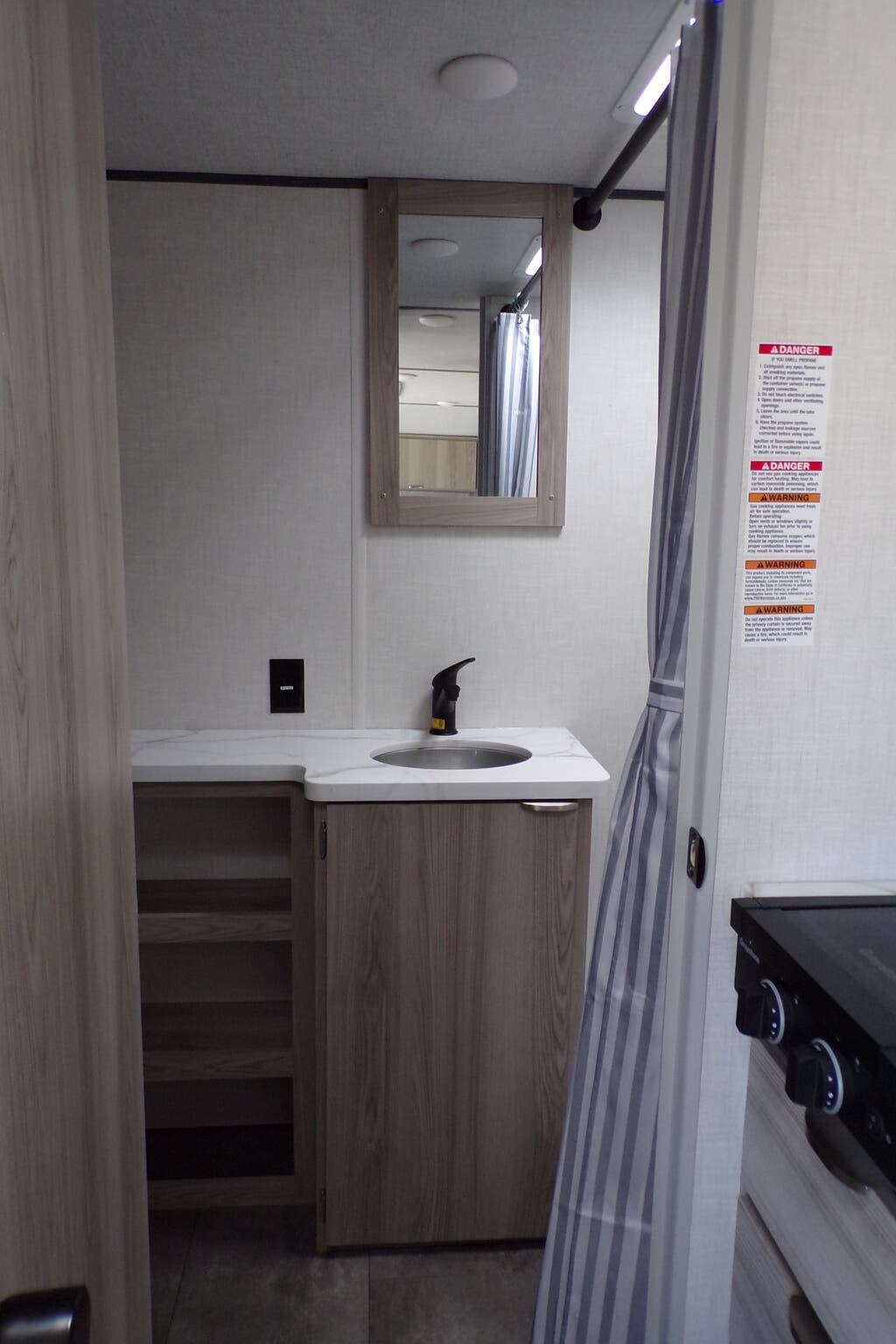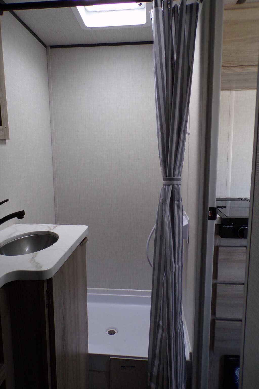 - Water Capacity: Fresh water tank capacity of 43 gallons, complemented by 30-gallon capacities for both black and grey water tanks.