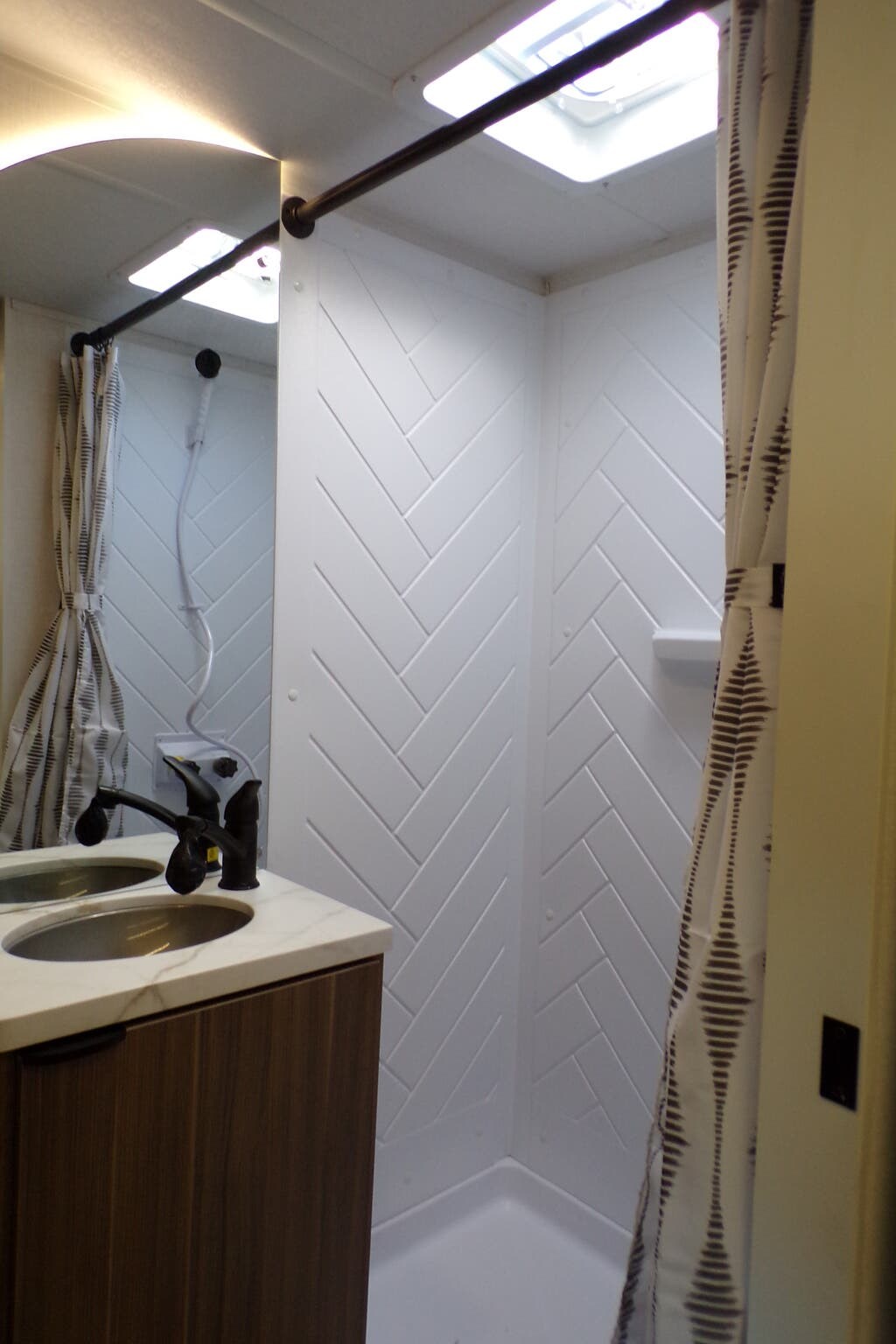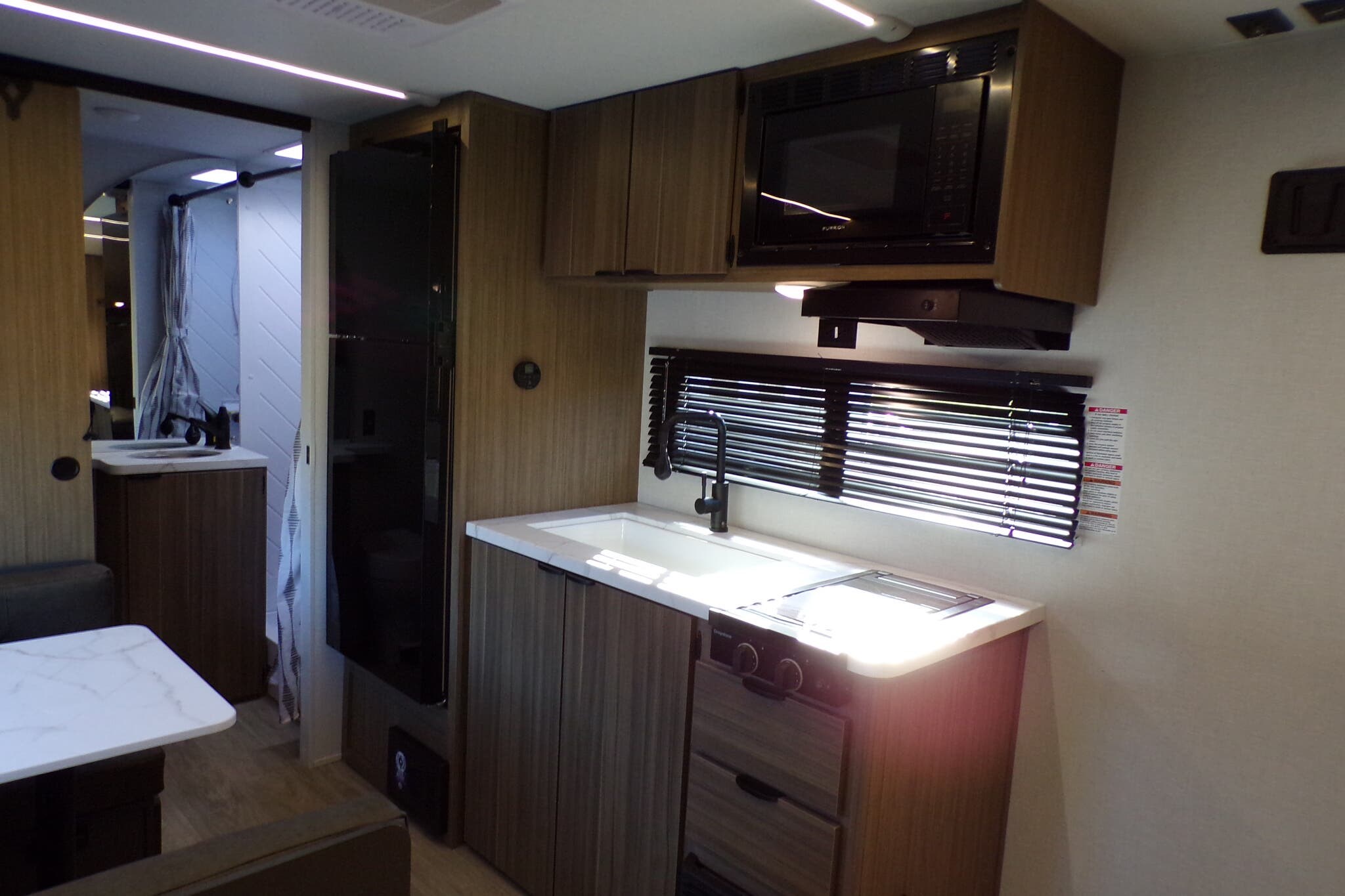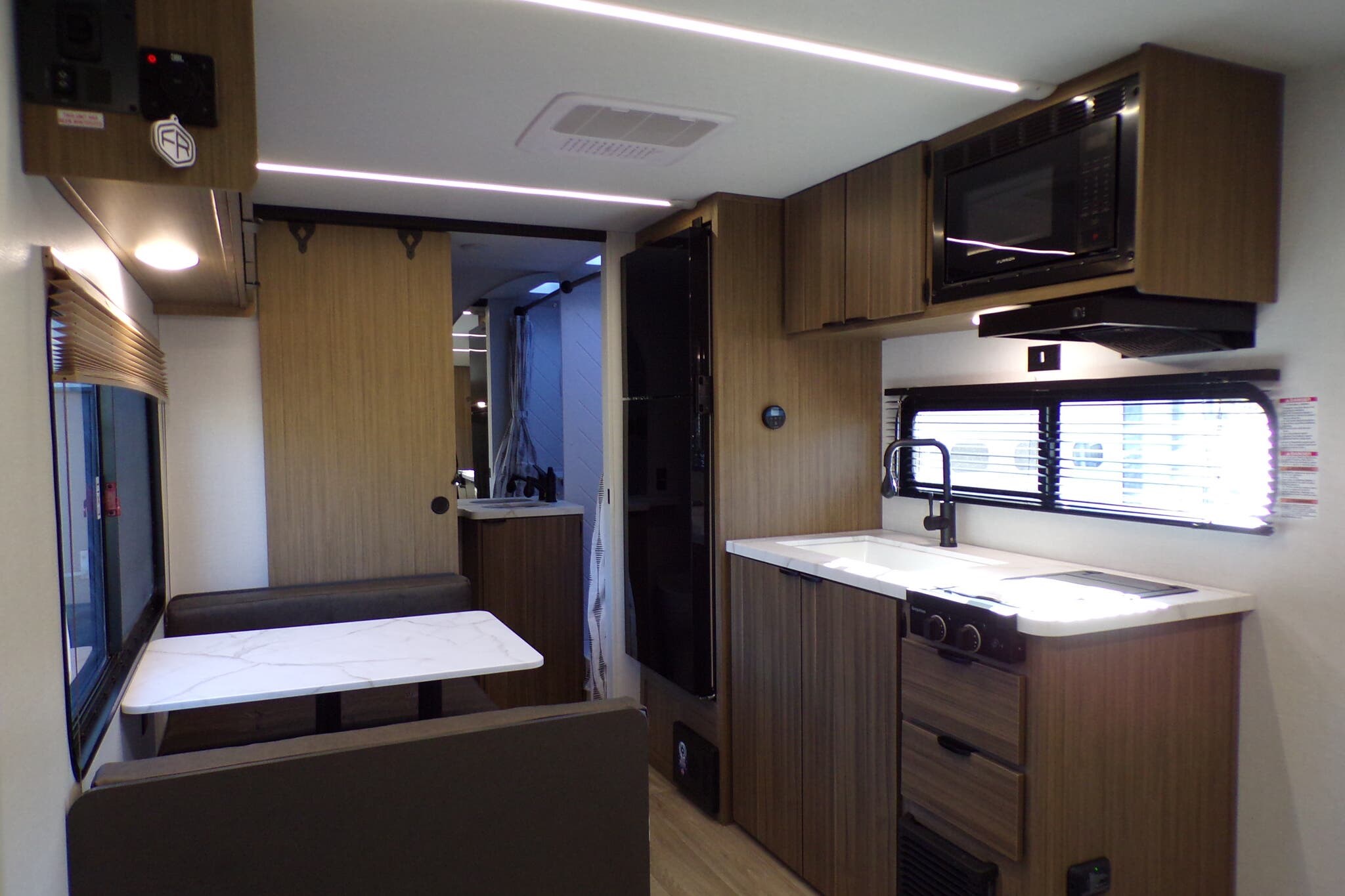 Booth Dinette, Kitchen Sink, Medicine Cabinet, Roof Vents, Shower, Toilet, Vanity