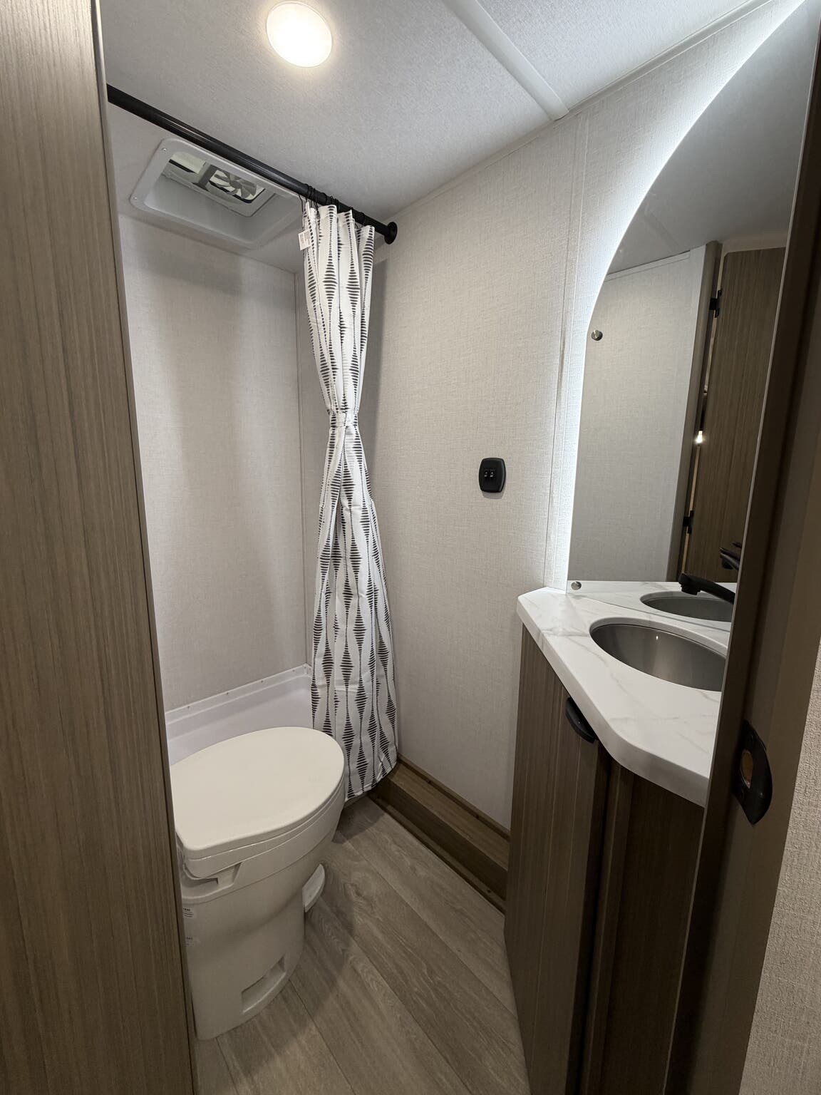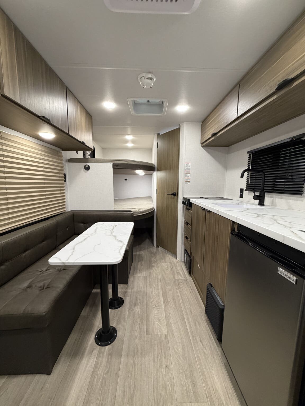 Designed for everyday living on the road, this travel trailer brings home-like comfort to the campsite. The 13,500 BTU roof-mounted air conditioner keeps interiors cool during hot days, while the 39 gallons of freshwater tank ensure you can refresh drinks, cook, and wash up without frequent refills. The 30 Amp service and converter provide reliable electrical support for all your devices and appliances. Inside, a welcoming dinette area doubles as a dining and work space, and the wardrobe-friendly layout makes coordinating gear and clothing simple for the whole family.