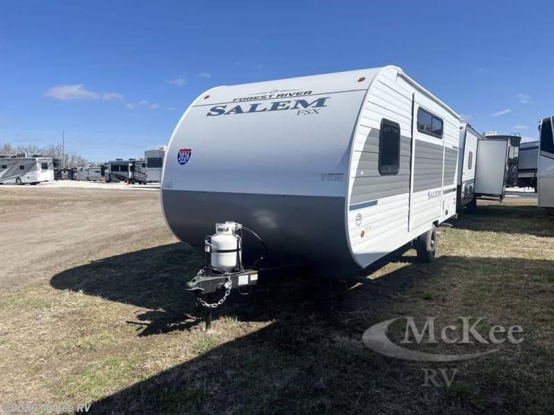 The Forest River Salem FSX travel trailers and toy hauler travel trailers are ultra comfortable and lightweight, perfect for first time or seasoned campers alike! You will love how easy it will be to relax with residential features that will make your space feel just like home, and the durable construction means you can enjoy your RV for years to come. There are a wide variety of floorplans to choose from, including couple's trailers, bunk models, and toy haulers, all with full bath and kitchen amenities and plenty of storage for all your gear!