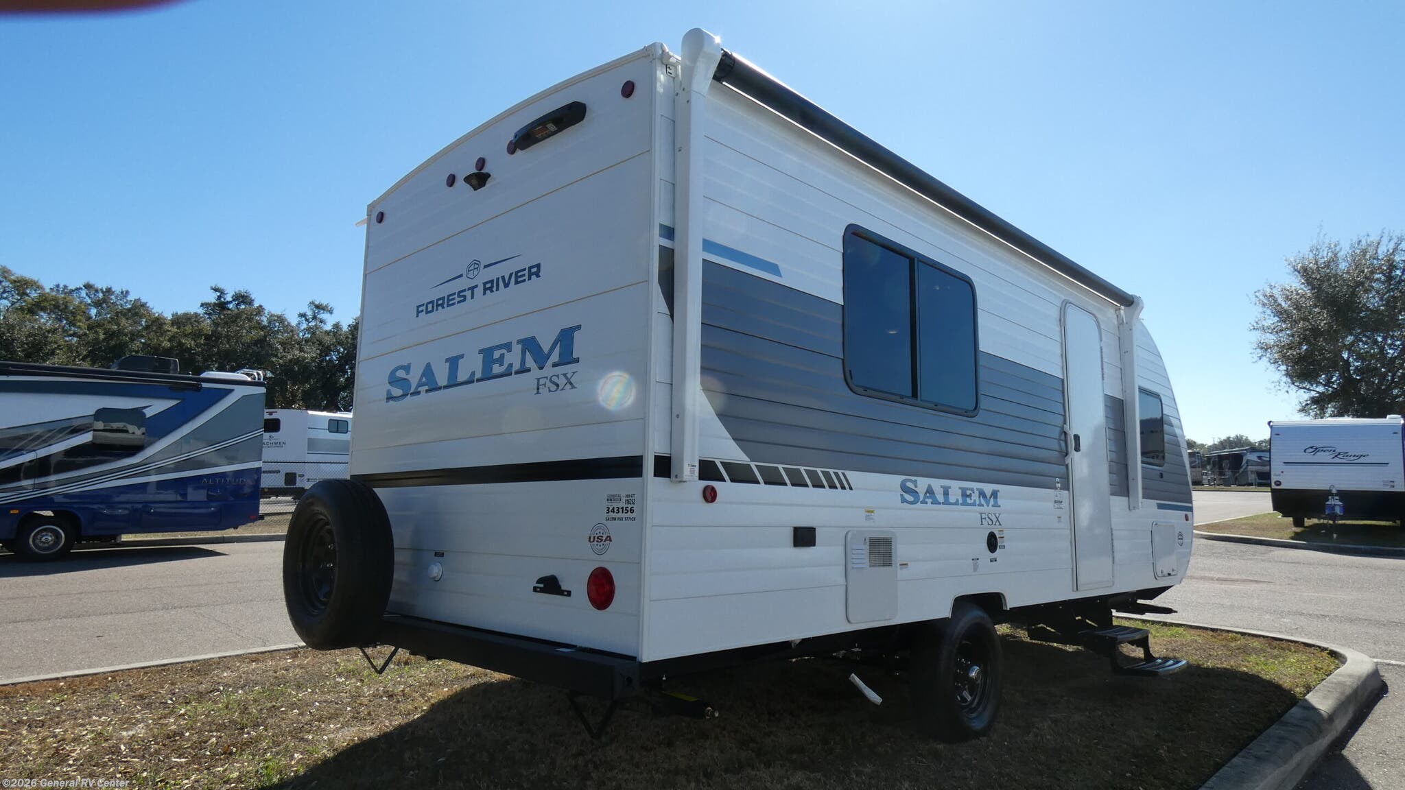 Forest River Salem FSX Limited Edition travel trailer 177ICE highlights: Front Queen Bed Large Kitchen Counter 12' Power Awning Booth Dinette Slide It will be so easy to enjoy time spent in this travel trailer for three. The front queen bed provides a great night's rest, and there is an overhead cabinet to keep your things organized. A two-burner cooktop in the kitchen will let you make meals for your crew, and a refrigerator keeps leftovers fresh. You can dine at the booth dinette within the slide out or take your plate outdoors to sit under the 12' power awning. And a full rear bath with a shower, toilet, and large vanity counter lets you stay clean each day! The Forest River Salem FSX travel trailers and toy hauler travel trailers are ultra comfortable and lightweight, perfect for first time or seasoned campers alike! You will love how easy it will be to relax with residential features that will make your space feel just like home, and the durable construction means you can enjoy your RV for years to come. There are a wide variety of floorplans to choose from, including couple's trailers, bunk models, and toy haulers, all with full bath and kitchen amenities and plenty of storage for all your gear!