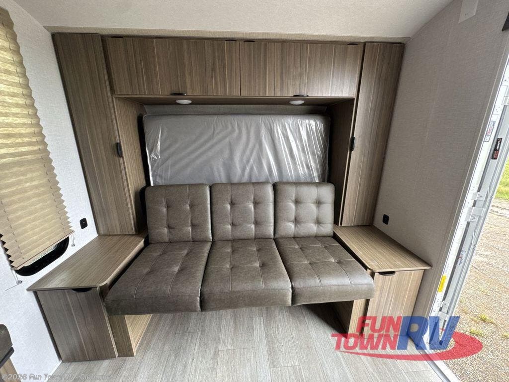 Start camping the right way in this travel trailer! It features a front Murphy bed that will double as your seating and sleeping space each day. The corner set of double-size bunk beds come with storage to keep things out of the way and are conveniently next to the rear corner bathroom with a shower with a skylight to freshen up in each morning. You can prepare your best home cooked meals indoors with the two burner cooktop or head to the outside kitchen to fry up some burgers while breathing in some fresh air. Enjoy your meals, play card games, and even sleep at the U-shaped dinette slide. You will also appreciate the outside shower and the exterior full pass-through storage for camp gear!