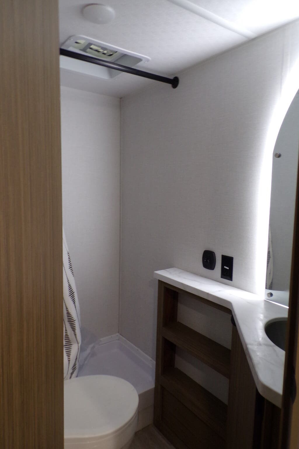 Brand new floorplan!! Hard to find model! Booth dinette slide, queen bed, double over double bunks, 3 pc bathroom, pantry, and more! Must see!