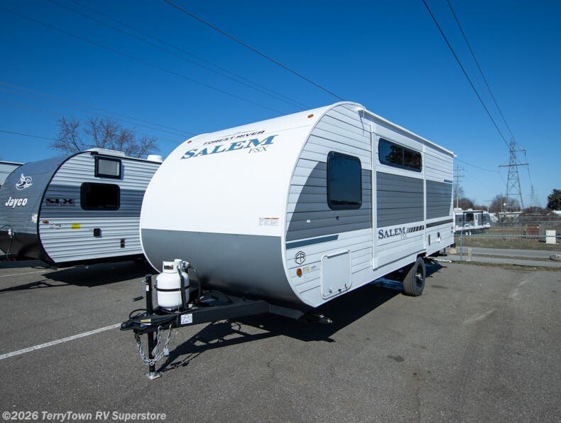 The Forest River Salem FSX travel trailers and toy hauler travel trailers are ultra comfortable and lightweight, perfect for first time or seasoned campers alike! You will love how easy it will be to relax with residential features that will make your space feel just like home, and the durable construction means you can enjoy your RV for years to come. There are a wide variety of floorplans to choose from, including couple's trailers, bunk models, and toy haulers, all with full bath and kitchen amenities and plenty of storage for all your gear!