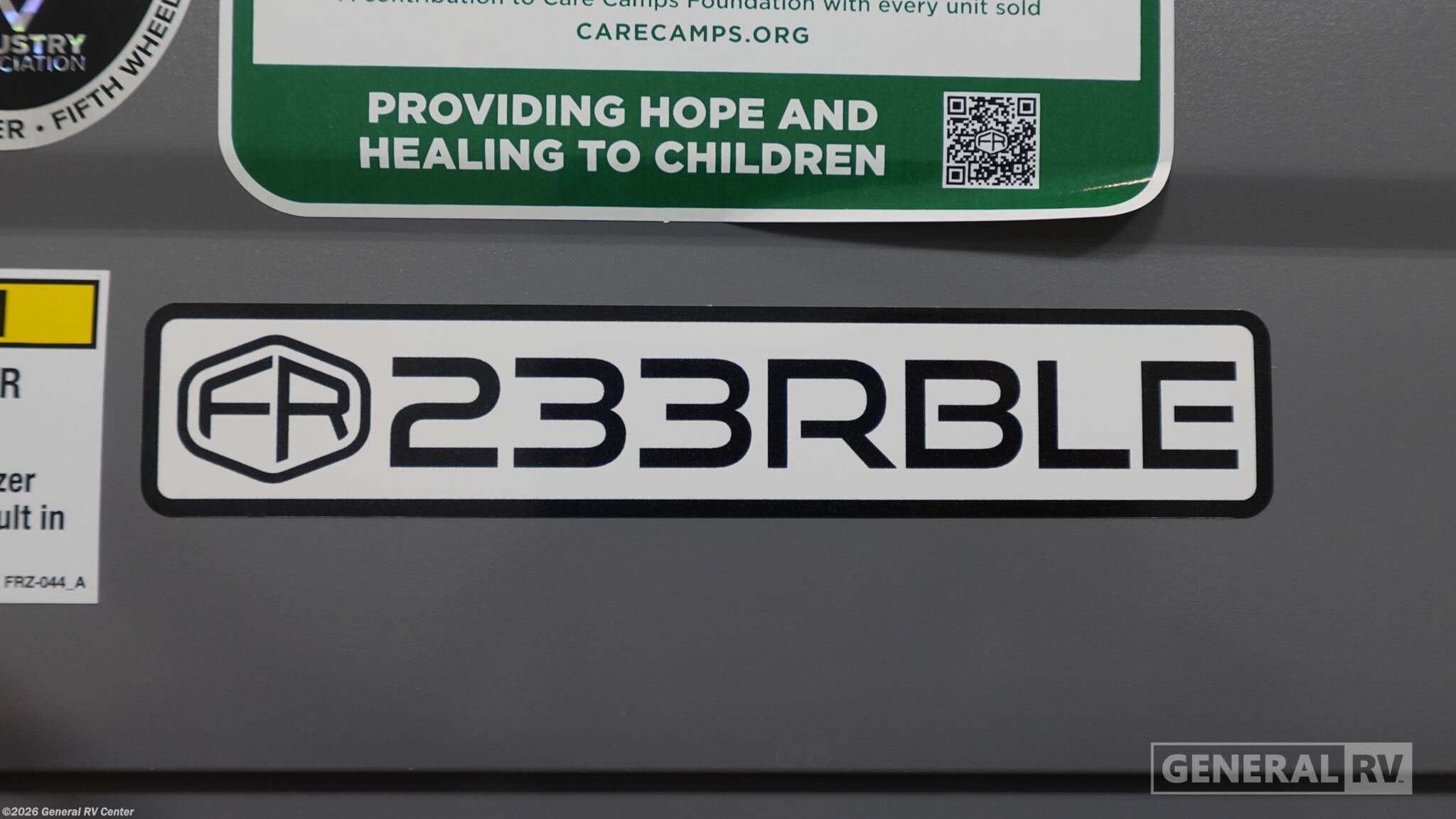 Forest River Salem FSX Limited Edition travel trailer 233RBLE highlights: Front Private Bedroom Kitchen Pantry Full Rear Bath 12V Power Awning King Bed Camping is made easy in this travel trailer with at-home comforts! You'll have the front private bedroom with a king bed all to yourselves, and there are dual bedroom wardrobes to keep your space neat and clean. Any additional guests can sleep on the super lounge with a removable table. You will appreciate the full rear bath complete with a linen closet and dual bath sinks so you both can get ready for bed at once. And a full kitchen lets you whip up your best meals! The Forest River Salem FSX travel trailers and toy hauler travel trailers are ultra comfortable and lightweight, perfect for first time or seasoned campers alike! You will love how easy it will be to relax with residential features that will make your space feel just like home, and the durable construction means you can enjoy your RV for years to come.