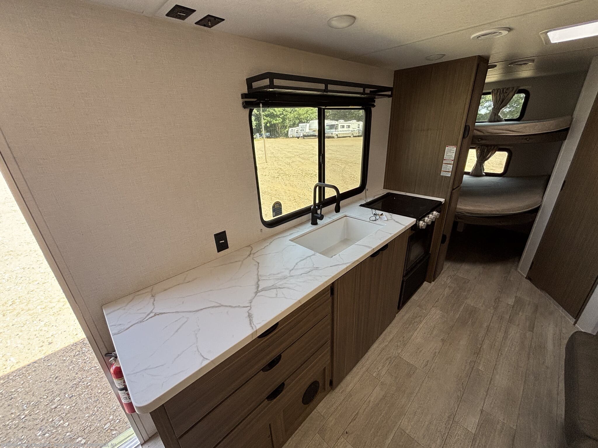 This new-generation travel trailer features a sturdy construction with a bumper pull hitch and durable build quality. Its ample sleeping capacity, combined with essential amenities and safety features, makes it an ideal choice for families or groups seeking adventure without compromise. With no slideouts, the RV remains compact yet comfortable, perfect for towing and storage.