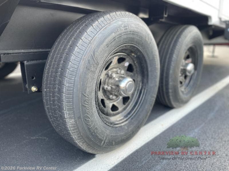 Make the most of your vacations with this MAX toy hauler! The 14' garage area includes dual sofa sleepers with a table in between to dine at, plus a 3,000 lb. capacity ramp door for easy unloading. Enjoy the fireplace for a cozy evening indoors while your dinner is cooking on the three-burner cooktop or being heated up in the convection microwave. After a fun day of trail riding, you can clean the mud out of your hair with the 30" x 36" shower in the full bathroom. The front private bedroom has a custom king bed to lay your head on at night, a closet, and wardrobes on either side of the bed for even more clothing storage space.