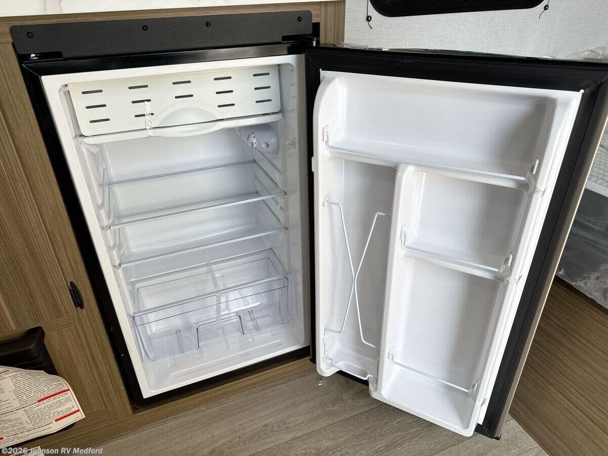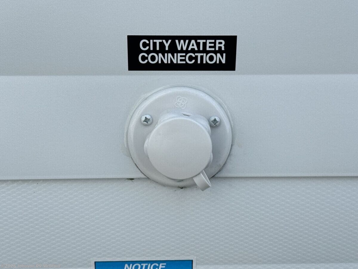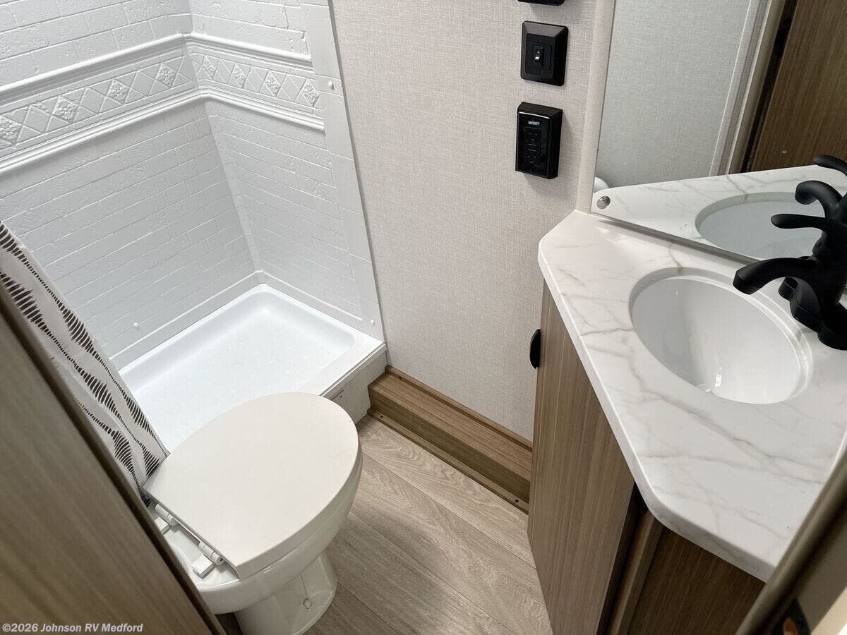 Features Include: 26-inch Entry Doors, Privacy Shades, Sofa Seating, Seamless Countertops, Sink Covers, Systems Center, Backup Camera Ready, Queen Bed, Vanity Sink, Toilet Mechanicals, 20# LP Bottle, 30-Amp Service, 13.5k Roof AC, 6-Gal DSI Hot Water, Cambered Structure, Aluminum Siding, Storage Cargo Door