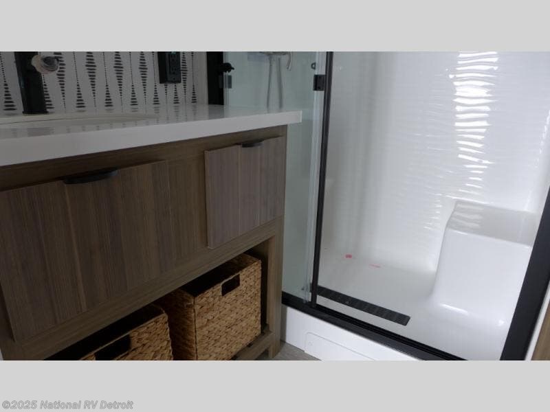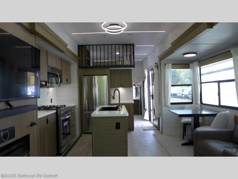 With a double loft in this destination trailer, everyone can join in on the fun! The kids will love having their own space with the two loft areas, one with two 42" x 74" bunk mats and storage area and the other with one 42" x 74" bunk mat and storage area. Plus, you will also have your own privacy with the front private bedroom which features a king bed with Versa-Tilt, front windows for plenty of sunlight to shine through, one of the entry doors, and a closet with optional washer and dryer prep. The full bathroom has a walk-in shower with a seat so everyone can stay clean and refreshed. The kitchen island will not only make your meal prep easier, but also your clean up with the Versa-Sink!
