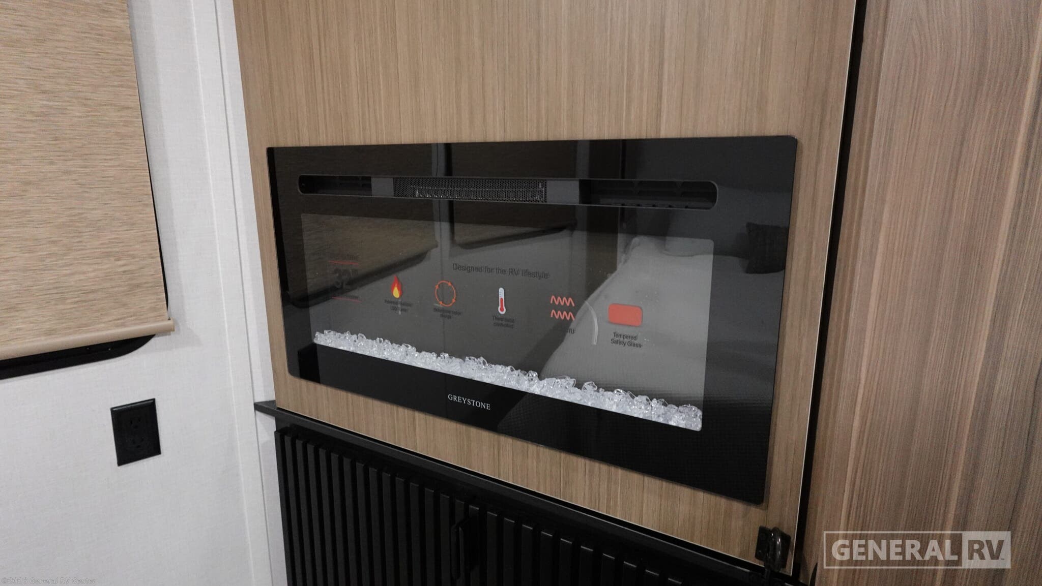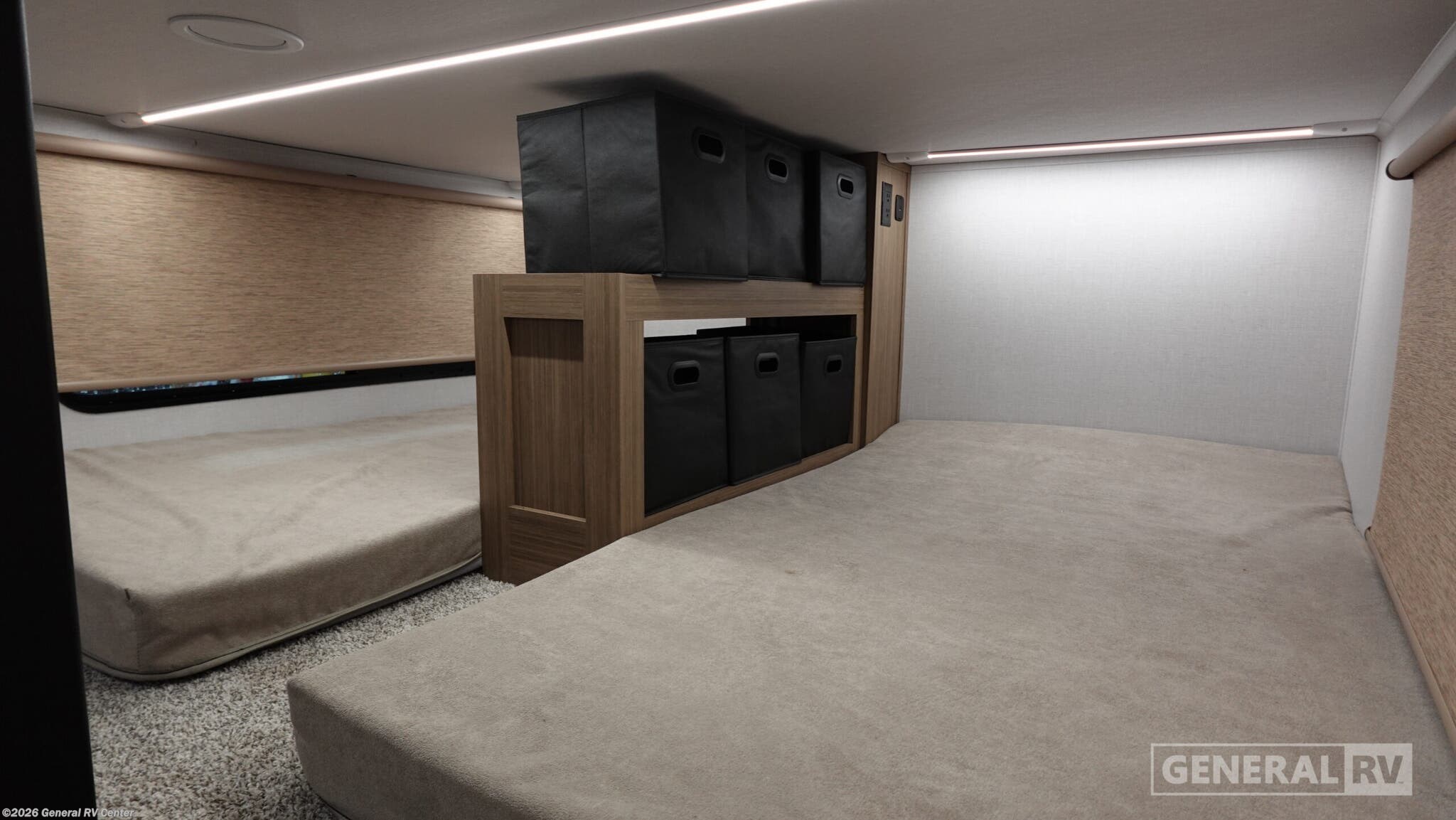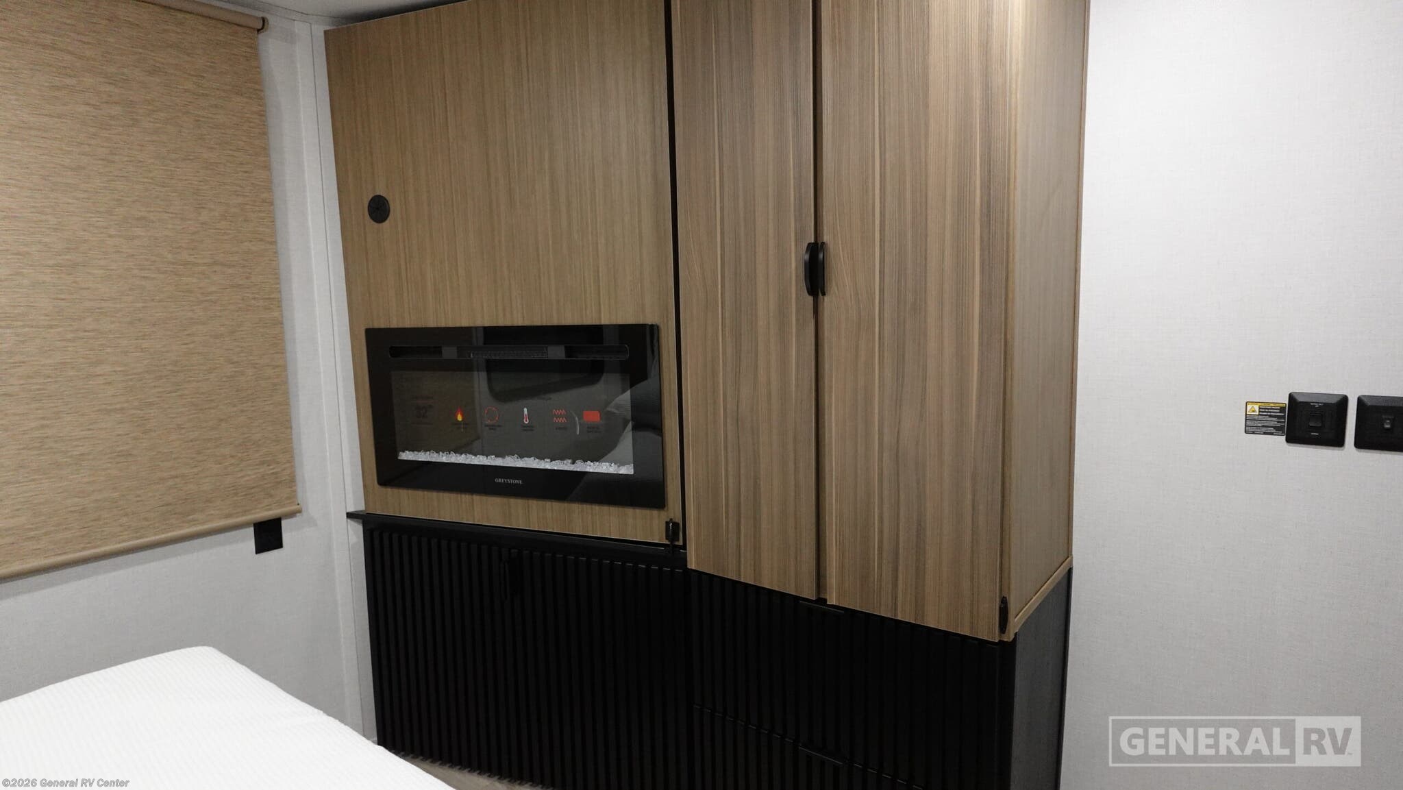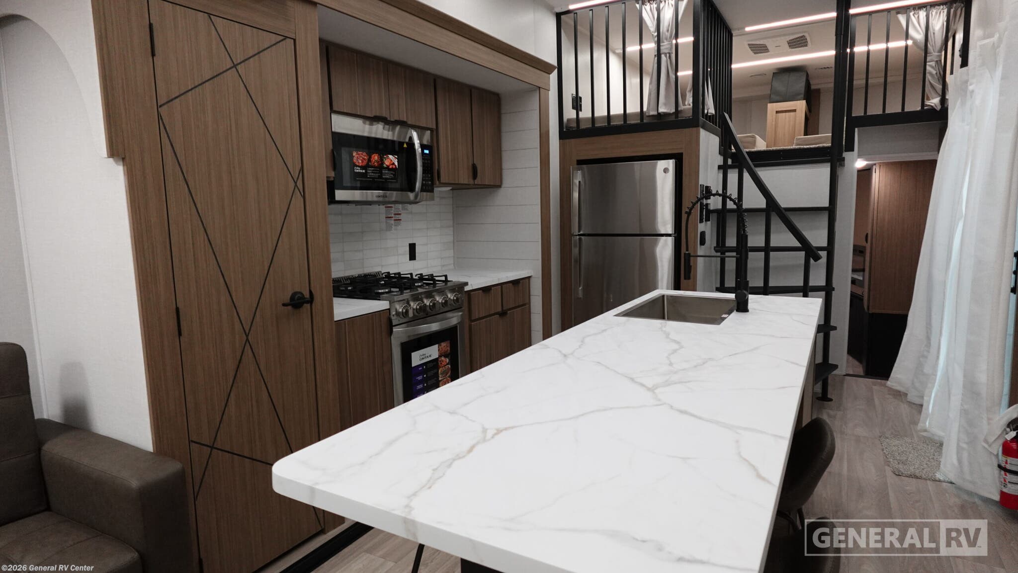 Discover the ultimate in comfort and style with the 2026 Forest River Salem Grand Villa 42ICE. This spacious RV is designed for families and adventurers alike, offering ample room for up to seven sleepers. Its expansive 45-foot length is crafted to provide a luxurious home-away-from-home experience. The centerpiece is the elegant living area featuring a sectional sofa and a cozy fireplace, perfect for relaxing after a day of exploration. The innovative Tele-Vator ensures your entertainment needs are met with a touch of modern flair. Venture into the well-appointed kitchen, where you'll find abundant counter space and storage, making meal prep a breeze. The king bed with Versa Tilt in the master suite promises restful nights, while the loft area, complete with bunk mats and storage, is perfect for the kids or guests. With a walk-in shower and washer/dryer prep, this RV combines practicality with luxury. Enjoy the great outdoors under the generous awning, making every moment memorable. For more details, visit your nearest General RV dealership.