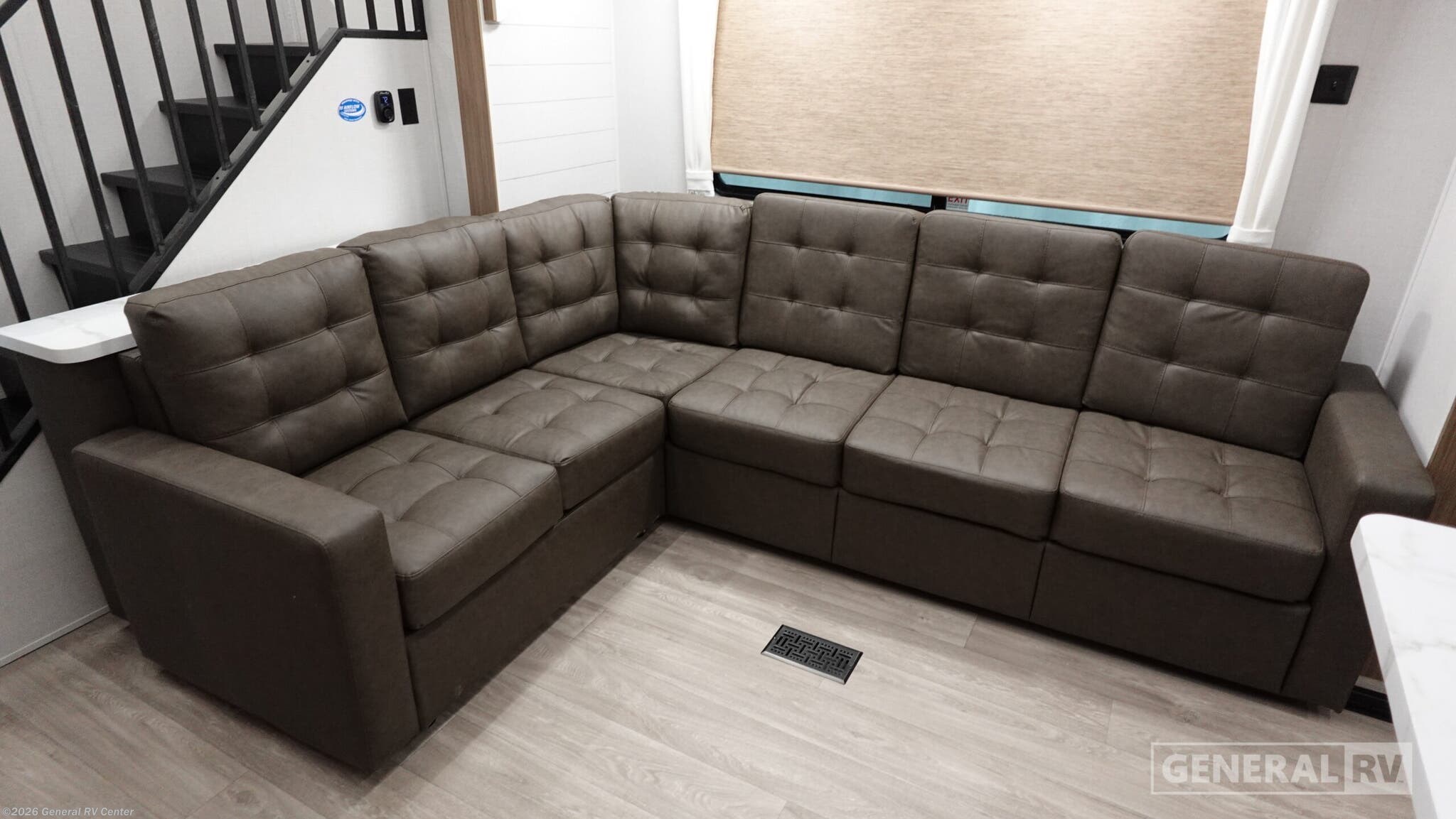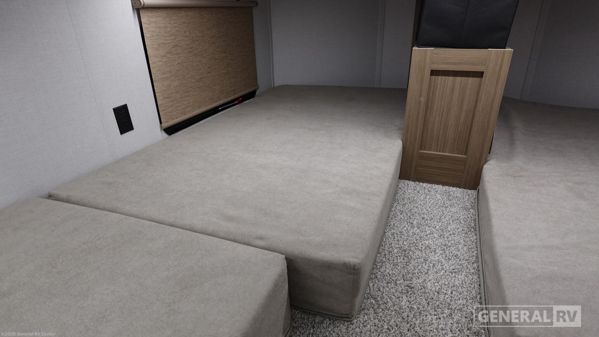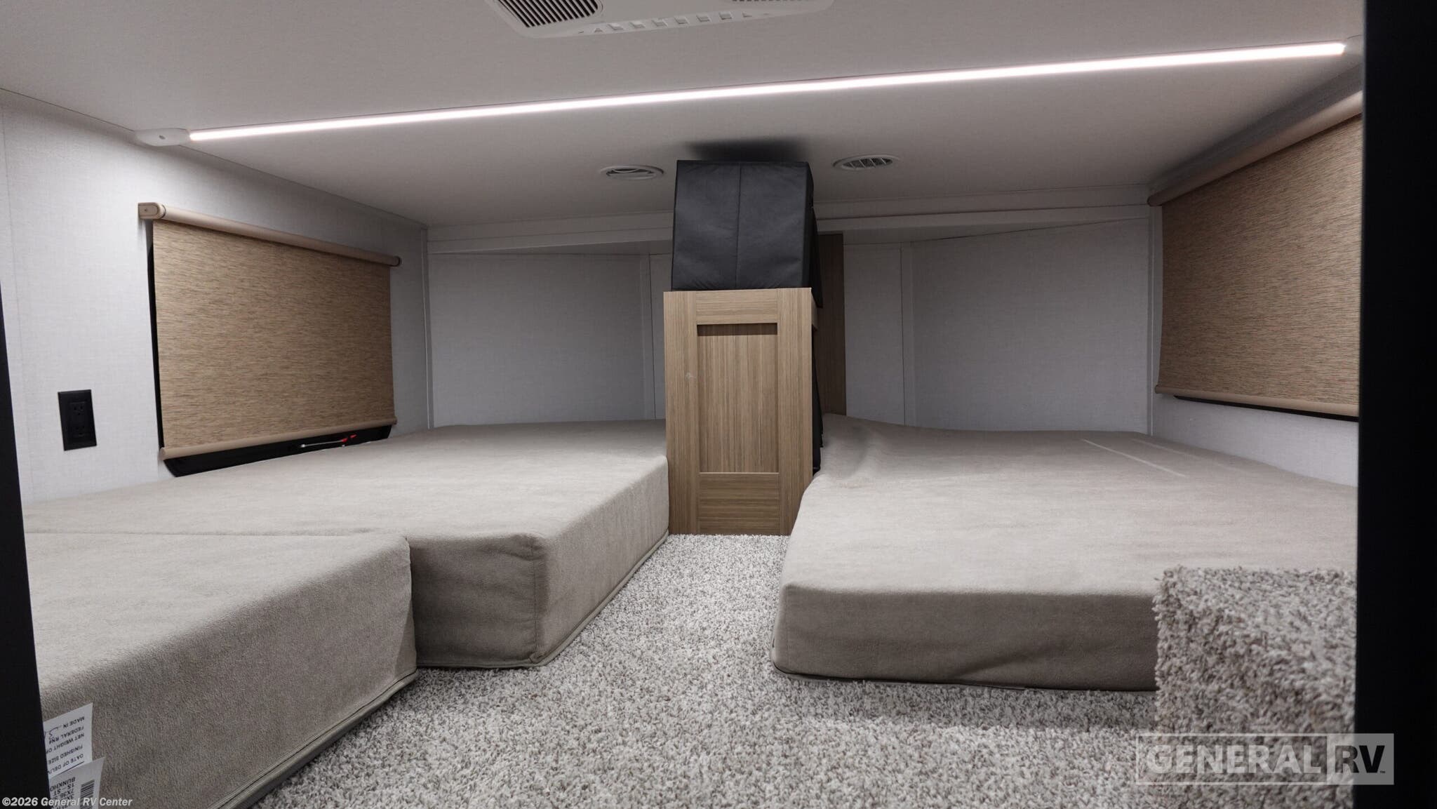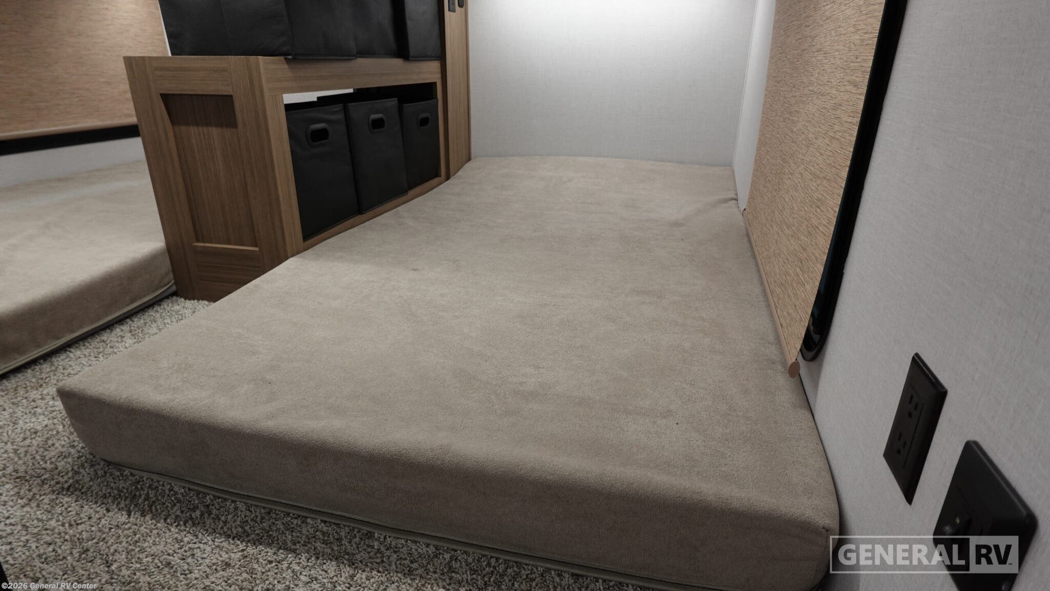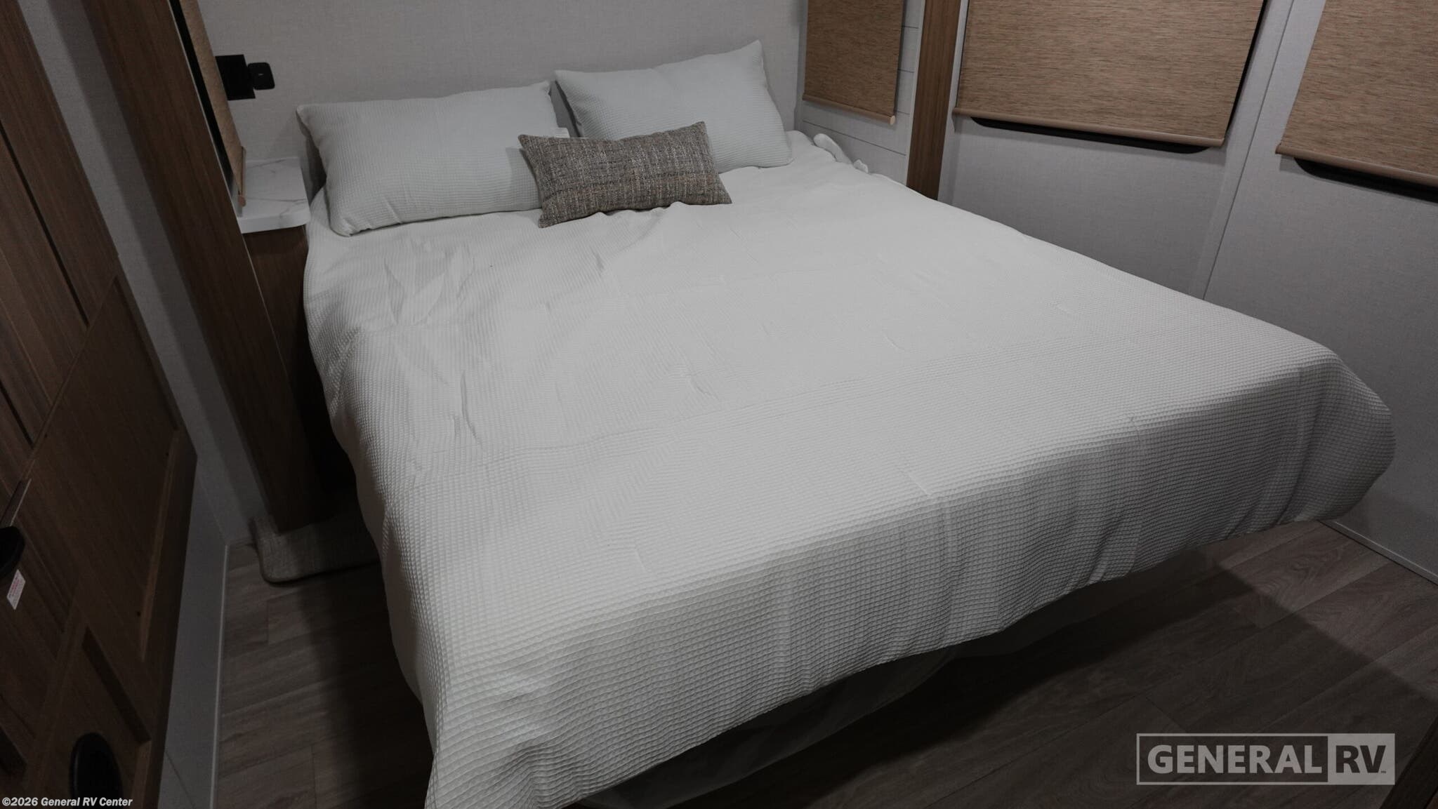 Discover the ultimate in comfort and style with the 2026 Forest River Salem Grand Villa 42ICE. This spacious RV is designed for families and adventurers alike, offering ample room for up to seven sleepers. Its expansive 45-foot length is crafted to provide a luxurious home-away-from-home experience. The centerpiece is the elegant living area featuring a sectional sofa and a cozy fireplace, perfect for relaxing after a day of exploration. The innovative Tele-Vator ensures your entertainment needs are met with a touch of modern flair. Venture into the well-appointed kitchen, where you'll find abundant counter space and storage, making meal prep a breeze. The king bed with Versa Tilt in the master suite promises restful nights, while the loft area, complete with bunk mats and storage, is perfect for the kids or guests. With a walk-in shower and washer/dryer prep, this RV combines practicality with luxury. Enjoy the great outdoors under the generous awning, making every moment memorable. For more details, visit your nearest General RV dealership.