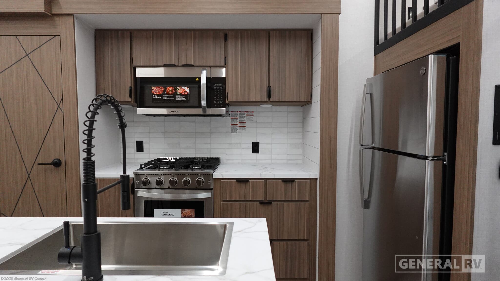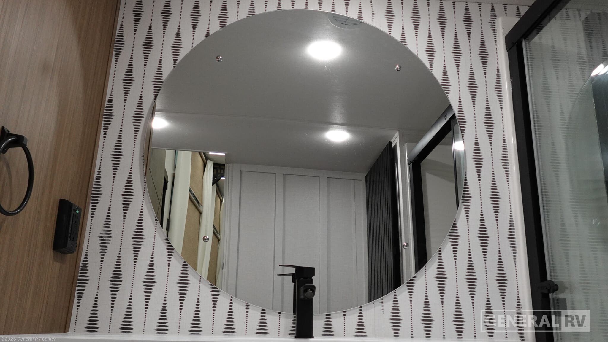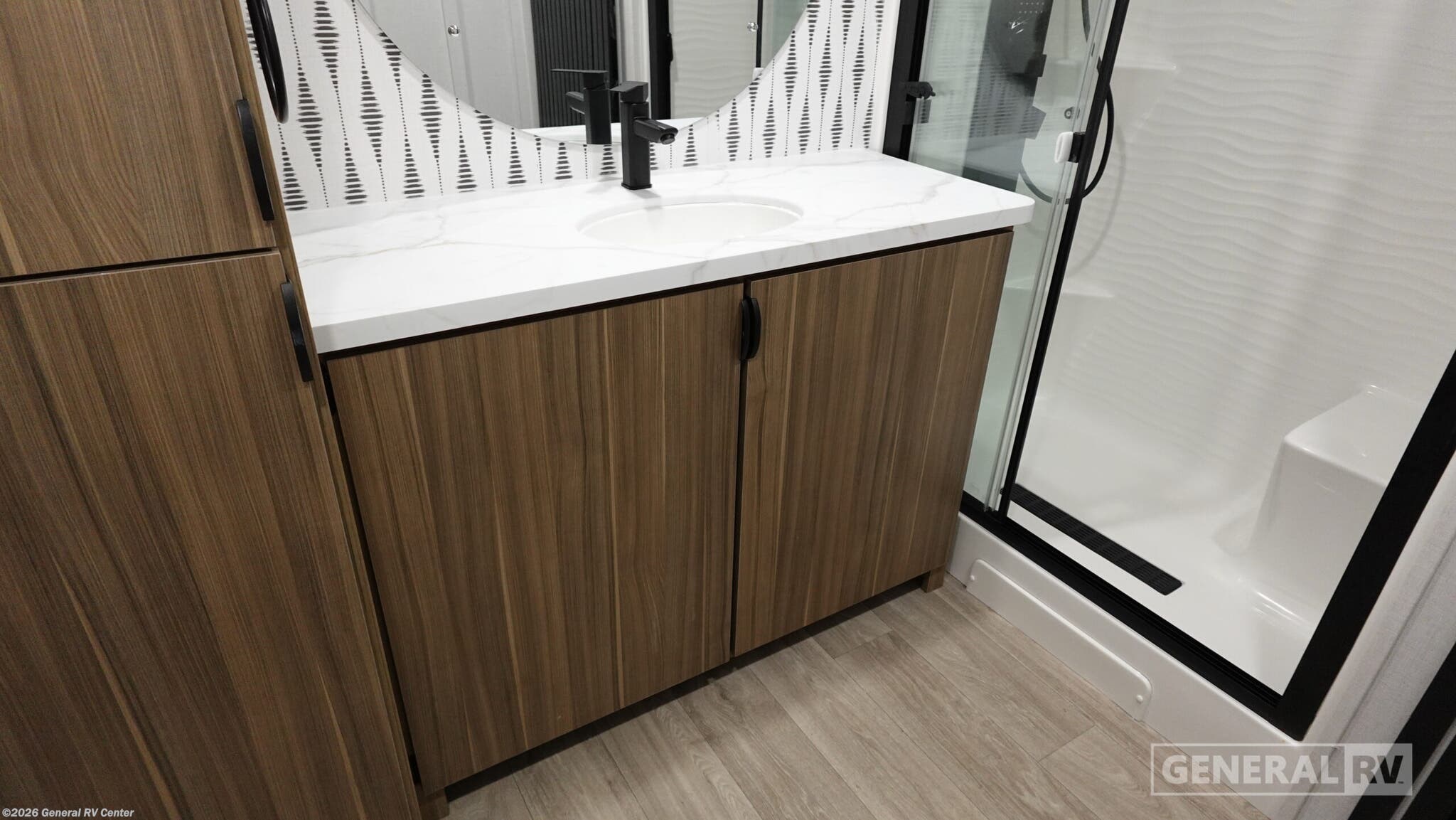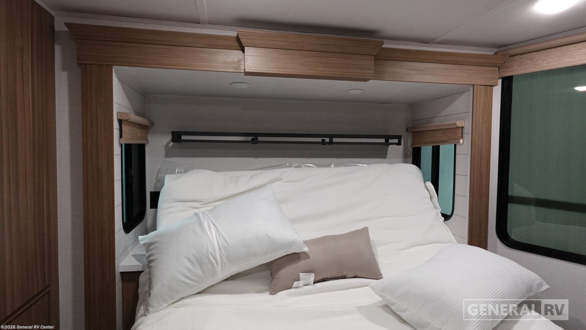 Discover the ultimate in comfort and style with the 2026 Forest River Salem Grand Villa 42ICE. This spacious RV is designed for families and adventurers alike, offering ample room for up to seven sleepers. Its expansive 45-foot length is crafted to provide a luxurious home-away-from-home experience. The centerpiece is the elegant living area featuring a sectional sofa and a cozy fireplace, perfect for relaxing after a day of exploration. The innovative Tele-Vator ensures your entertainment needs are met with a touch of modern flair. Venture into the well-appointed kitchen, where you'll find abundant counter space and storage, making meal prep a breeze. The king bed with Versa Tilt in the master suite promises restful nights, while the loft area, complete with bunk mats and storage, is perfect for the kids or guests. With a walk-in shower and washer/dryer prep, this RV combines practicality with luxury. Enjoy the great outdoors under the generous awning, making every moment memorable. For more details, visit your nearest General RV dealership.