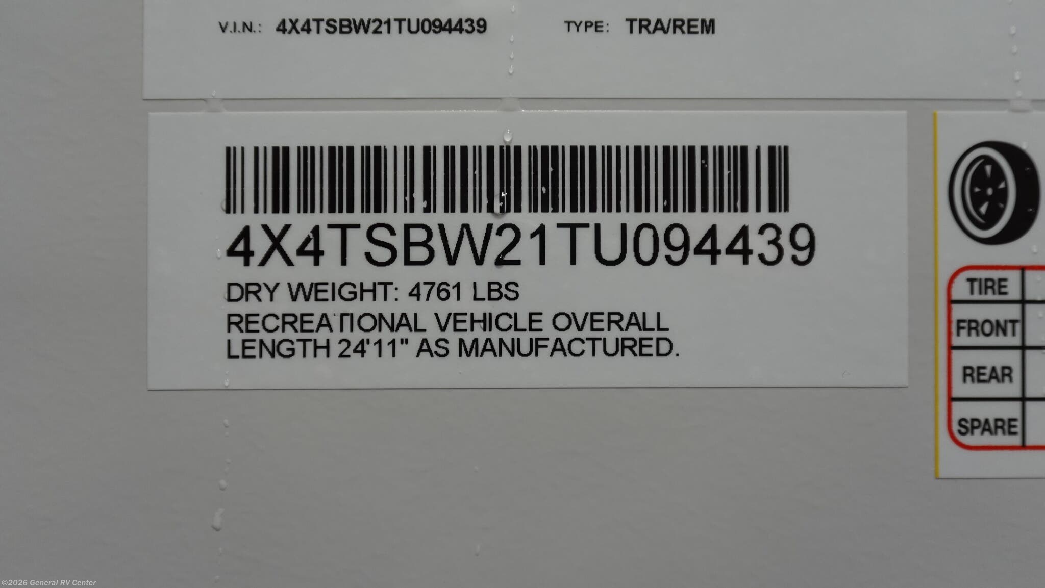 - VIN4X4TSBW21TU094439