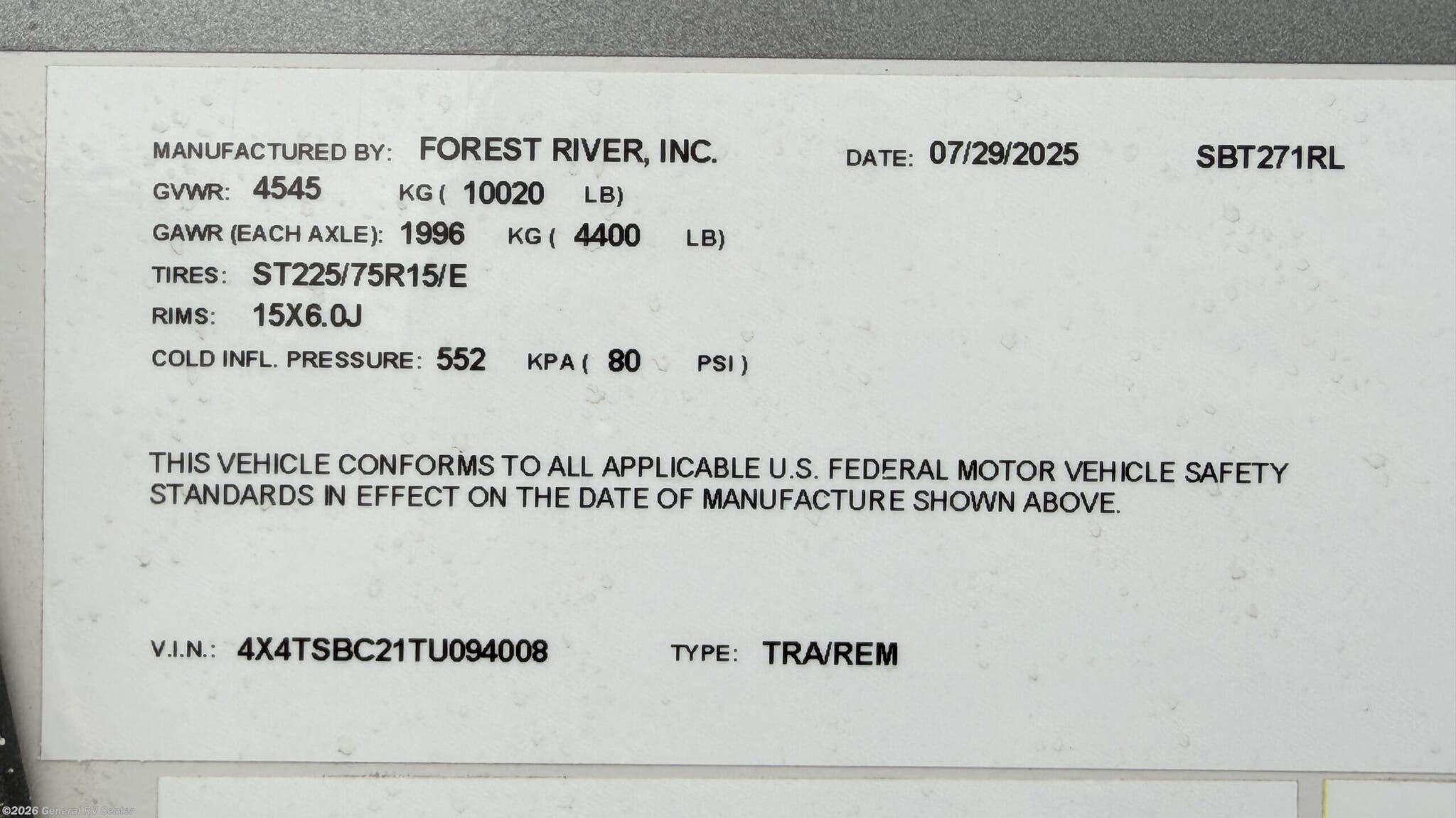 - Type Travel Trailer
