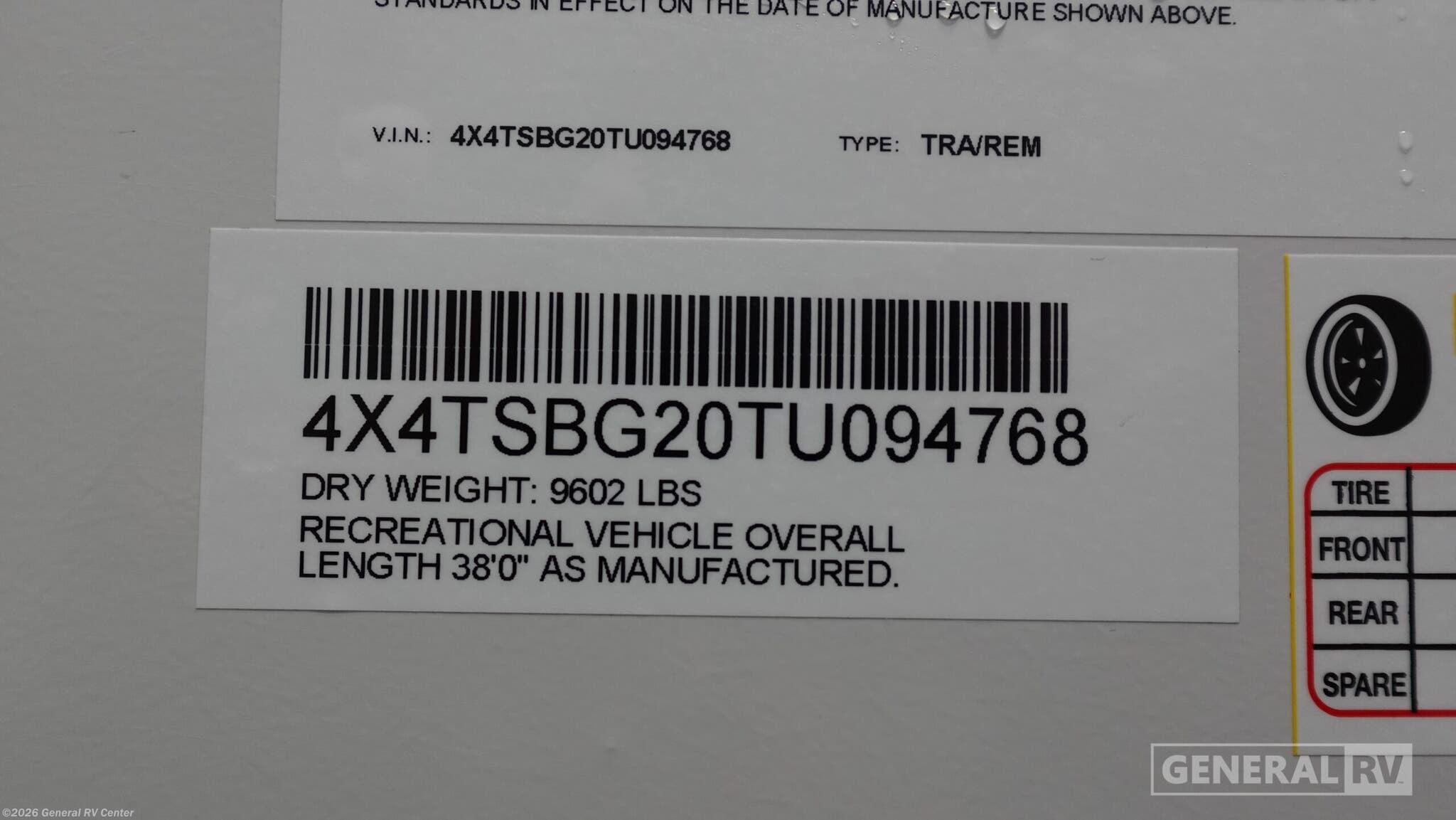 - VIN4X4TSBG20TU094768