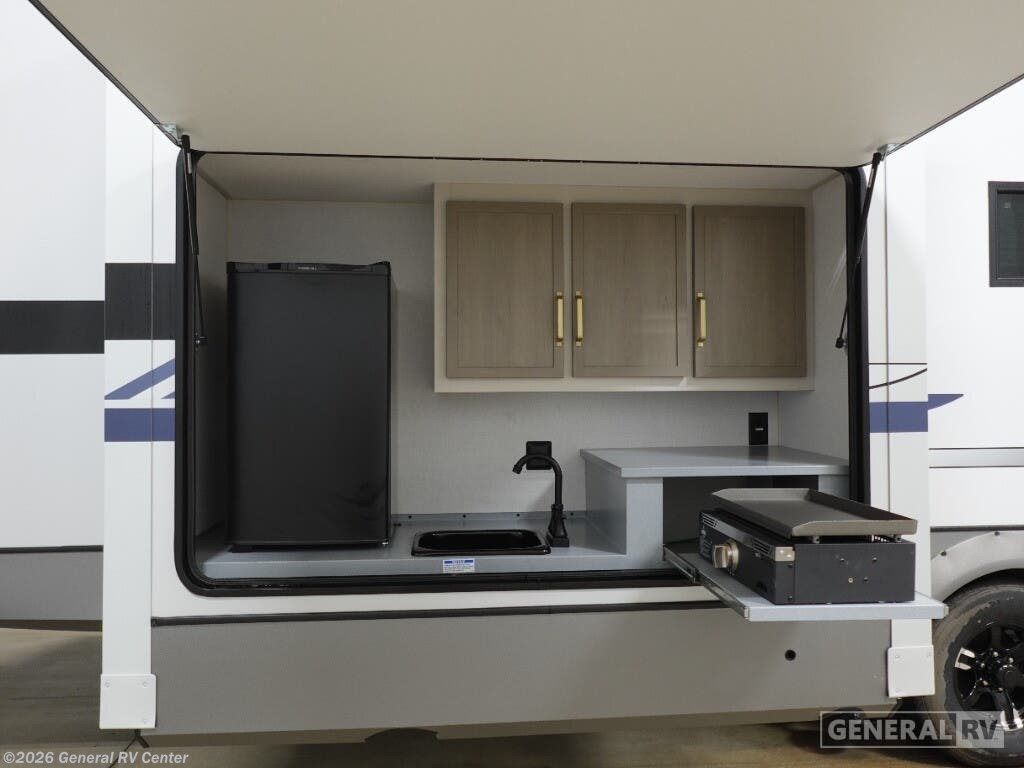 Discover the 2025 Forest River Salem Hemisphere 356QB, a masterpiece of design and functionality that promises to elevate your adventures. This spacious RV, stretching 43 feet in length, is perfect for families or groups, comfortably sleeping up to ten with a king bed and multiple convertible options. The thoughtful layout includes a dedicated bunkhouse, making it ideal for kids or guests, while the main living area boasts a cozy tri-fold sofa and a family-size U-dinette, perfect for gatherings and relaxation. The center kitchen is equipped with a full-size electric refrigerator and a three-burner cooktop, ensuring you have everything you need to whip up delicious meals on the road. Enjoy the convenience of a washer/dryer prep area, and unwind in the luxurious walk-in residential-style shower. With four slides, this RV offers ample space to move freely, and the 21 ft. powered retractable awning invites you to enjoy the great outdoors in comfort. Whether you're seeking adventure or relaxation, the Salem Hemisphere 356QB is your perfect home away from home. For more information, visit your nearest General RV Dealership Location.