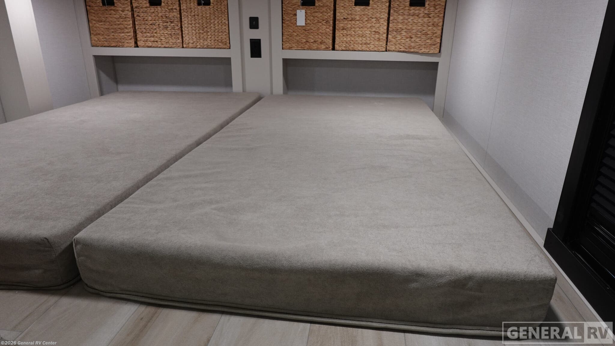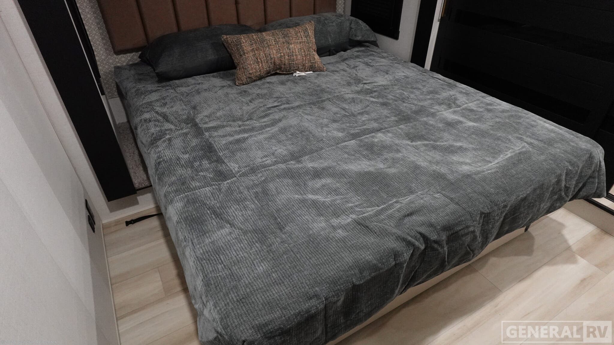 Forest River Salem Hemisphere fifth wheel 376FAM highlights: Loft with Bunk Mats Two Bedrooms Kitchen Island with Chairs Hidden Storage behind TV Custom Queen Bed The whole family will love camping in this spacious fifth wheel! There are four slide outs, two bedrooms, plus two full baths, one of which is located in the rear master bedroom. A custom queen bed and dual wardrobes are also found in the master, while a custom king bed is found in the front private bedroom. And the loft with bunk mats can be used for additional sleeping or storage space! The chef of your group will find a full kitchen to cook meals, including ample counter space and a 16-cu. ft. 12V refrigerator and hidden storage behind the 50" TV for snacks or movies. The theater seating with cup holders provides a comfy place to relax each day, and the kitchen island with chairs will be perfect for dining space! The Salem Hemisphere fifth wheels by Forest River are packed with features, while still being value-minded! Each model is constructed with laminated "Aluma Frame" sidewalls and floor with block foam insulation plus full-length barreled ceilings for added head space. There are LED awning, marker and taillights outside, along with an extra-large pass-thru storage with slam latch baggage doors, plus solar prep and Lippert On-The-Go ladder prep. The 60K on-demand tankless water heater will provide endless hot showers, and the JBL sound system includes a head unit plus interior and exterior speakers to keep the party going. There are also many interior comforts found throughout that will make you feel right at home!