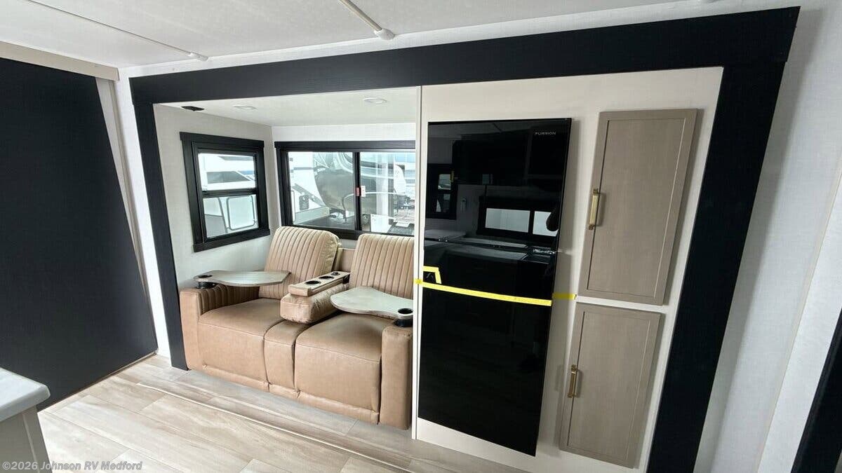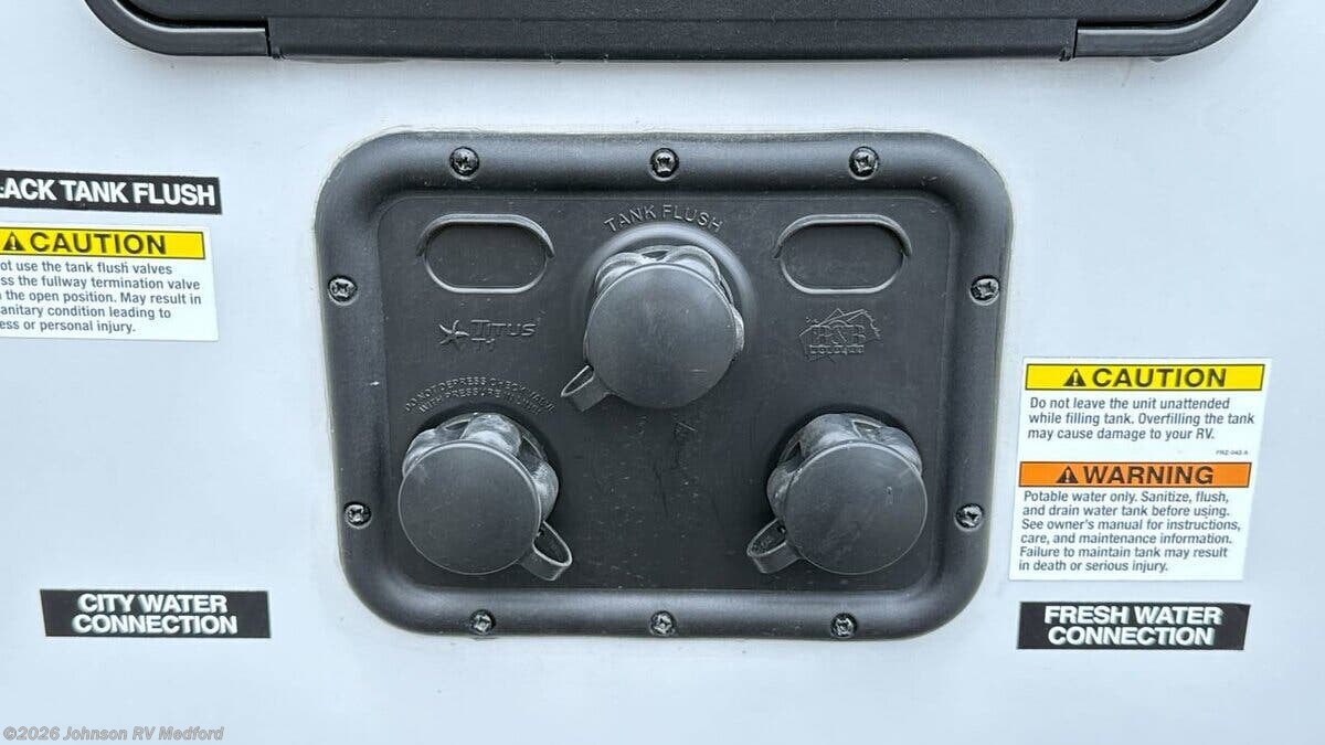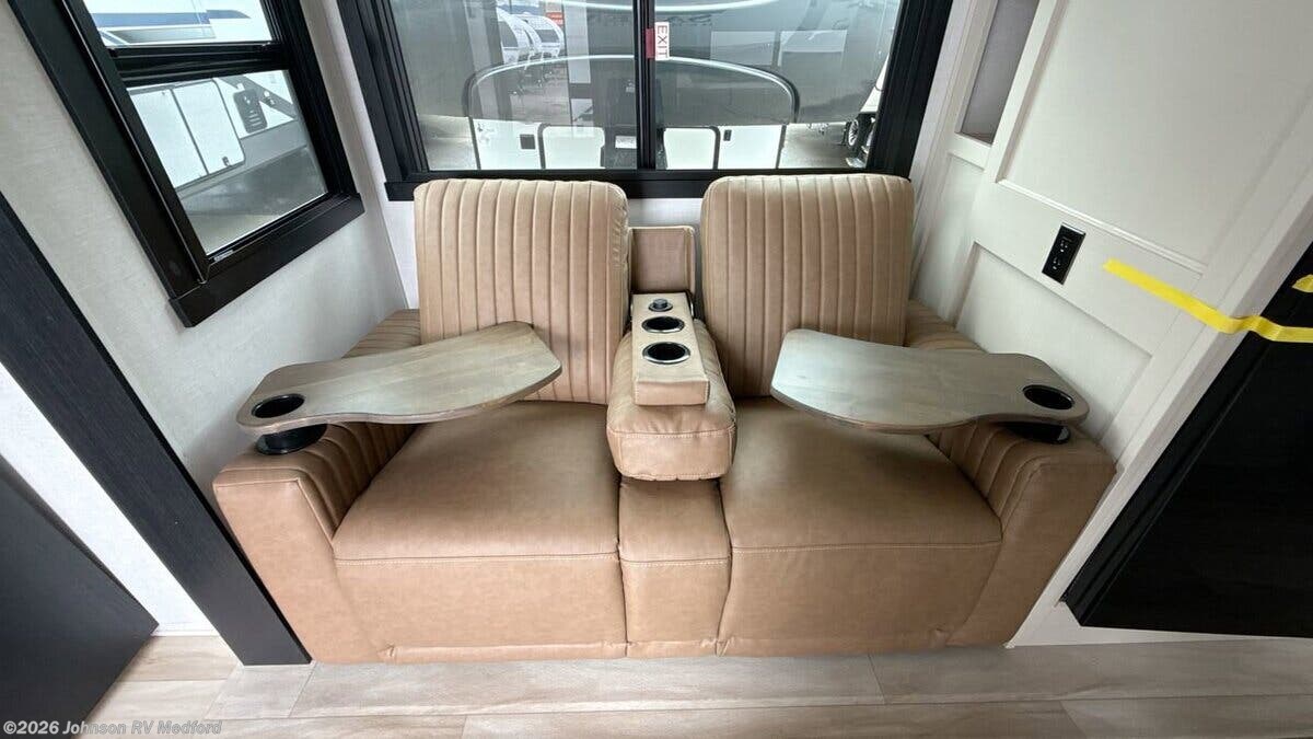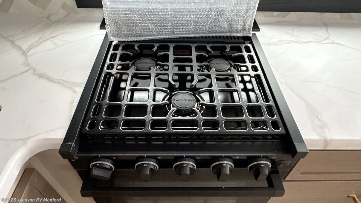 Features Include: Patio Awning, Square Windows, Built-in Shades, Entertainment Center, Sofa Sleeper (vbm), Overhead Cabinets, Seamless Countertops, Undermount Sink, High Rise Faucet, Cooktop Glass Cover, Designer Backsplash, Gas Oven, Microwave Oven, Systems Center, Backup Camera Prep, 50-inch LED Smart TV, 40-inch TV (261FKRB, 265BSRB), n/a 301FAM), Overbed Storage, Reading Lights, Bedside USB, CPAP Prep, Wardrobe, Dresser Drawers, TV Prep, Versa Queen Sofa Bed, Bunk Beds, Medicine Cabinet, LED Backlit Mirror, Vanity Sink, Linen Storage, Shower Skylight, 50-Amp Service Cord, 13.5k 2nd AC, 3rd Prep (vbm), Black Tank Flush, Power Tongue Jack, LED Docking Light, Wide Stance Axles, Aluminum Wheels, Floor, Enclosed Underbelly, Front Stone Guard