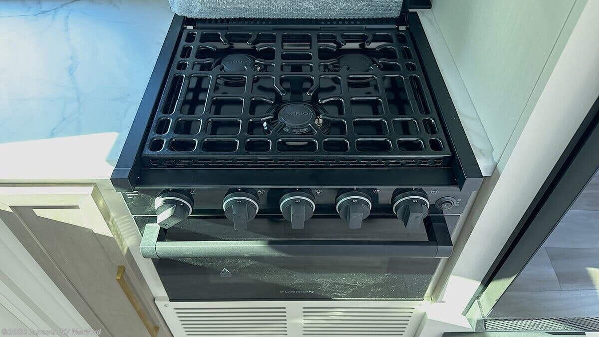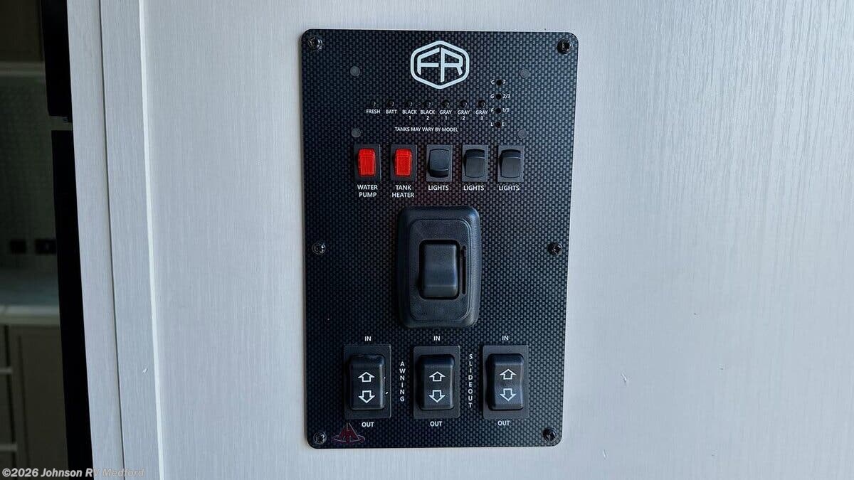 Features Include: Patio Awning, Square Windows, Built-in Shades, Entertainment Center, Sofa Sleeper (vbm), Overhead Cabinets, Seamless Countertops, Undermount Sink, High Rise Faucet, Cooktop Glass Cover, Designer Backsplash, Gas Oven, Microwave Oven, Systems Center, Backup Camera Prep, 50-inch LED Smart TV, 40-inch TV (261FKRB, 265BSRB), n/a 301FAM), Overbed Storage, Reading Lights, Bedside USB, CPAP Prep, Wardrobe, Dresser Drawers, TV Prep, Versa Queen Sofa Bed, Bunk Beds, Medicine Cabinet, LED Backlit Mirror, Vanity Sink, Linen Storage, Shower Skylight, 50-Amp Service Cord, 13.5k 2nd AC, 3rd Prep (vbm), Black Tank Flush, Power Tongue Jack, LED Docking Light, Wide Stance Axles, Aluminum Wheels, Floor, Enclosed Underbelly, Front Stone Guard