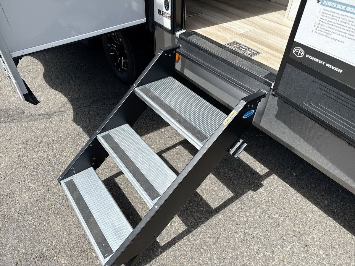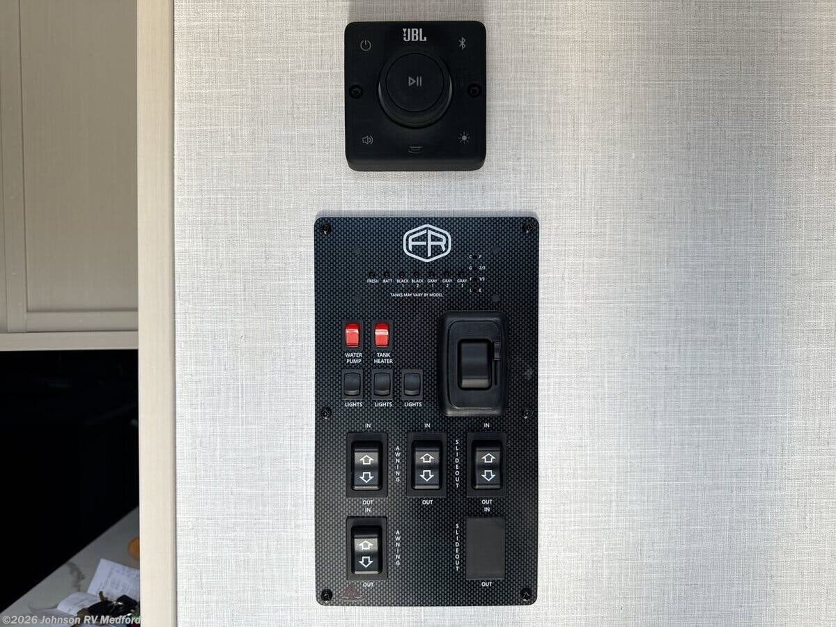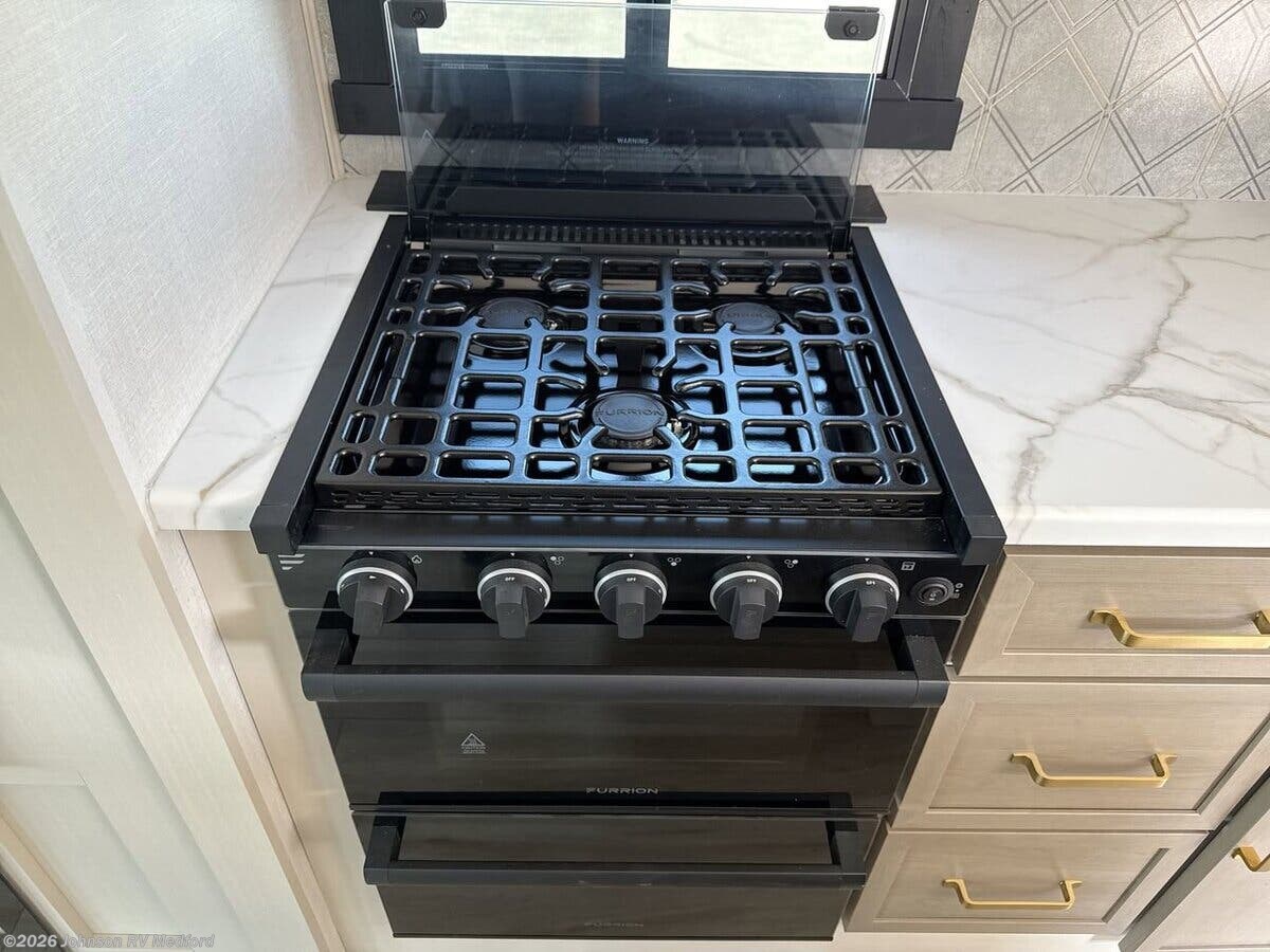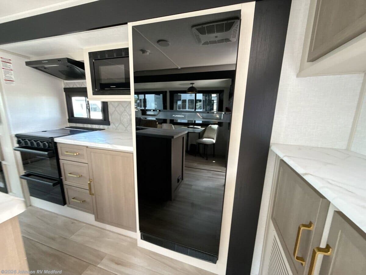 Features Include: Patio Awning, Square Windows, Built-in Shades, Entertainment Center, Sofa Sleeper (vbm), Overhead Cabinets, Seamless Countertops, Undermount Sink, High Rise Faucet, Cooktop Glass Cover, Designer Backsplash, Gas Oven, Microwave Oven, Systems Center, Backup Camera Prep, 50-inch LED Smart TV, 40-inch TV (261FKRB, 265BSRB), n/a 301FAM), Overbed Storage, Reading Lights, Bedside USB, CPAP Prep, Wardrobe, Dresser Drawers, TV Prep, Versa Queen Sofa Bed, Bunk Beds, Medicine Cabinet, LED Backlit Mirror, Vanity Sink, Linen Storage, Shower Skylight, 50-Amp Service Cord, 13.5k 2nd AC, 3rd Prep (vbm), Black Tank Flush, Power Tongue Jack, LED Docking Light, Wide Stance Axles, Aluminum Wheels, Floor, Enclosed Underbelly, Front Stone Guard