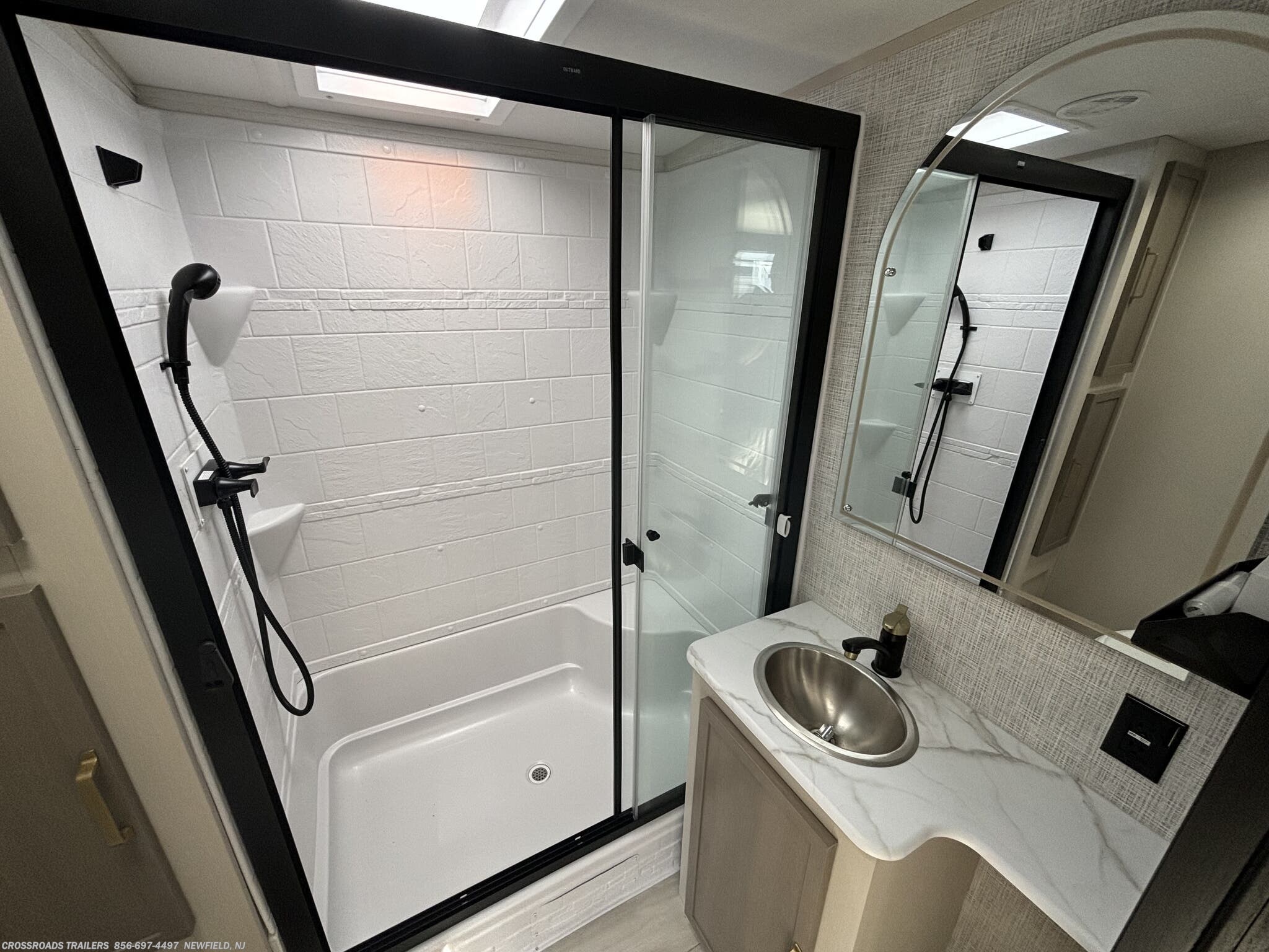 For more details about this luxurious travel trailer, give us a call at 856-697-4497 or email us at . Make your travel dreams a reality with the Forest River Salem Hemisphere 308RL—the ideal RV for memorable journeys!