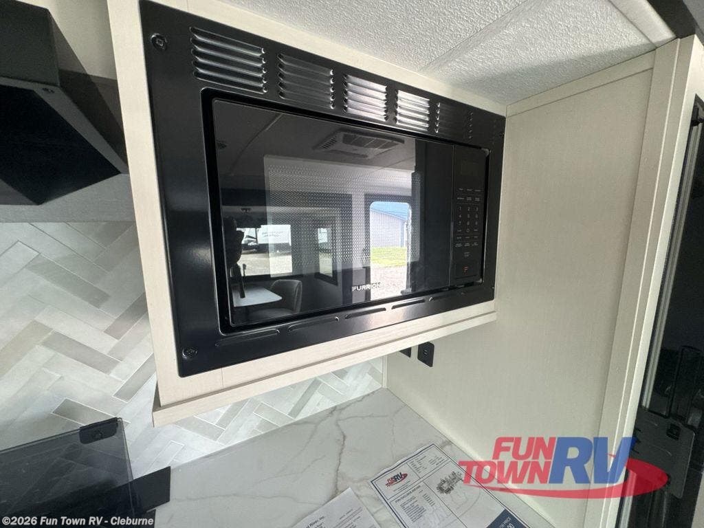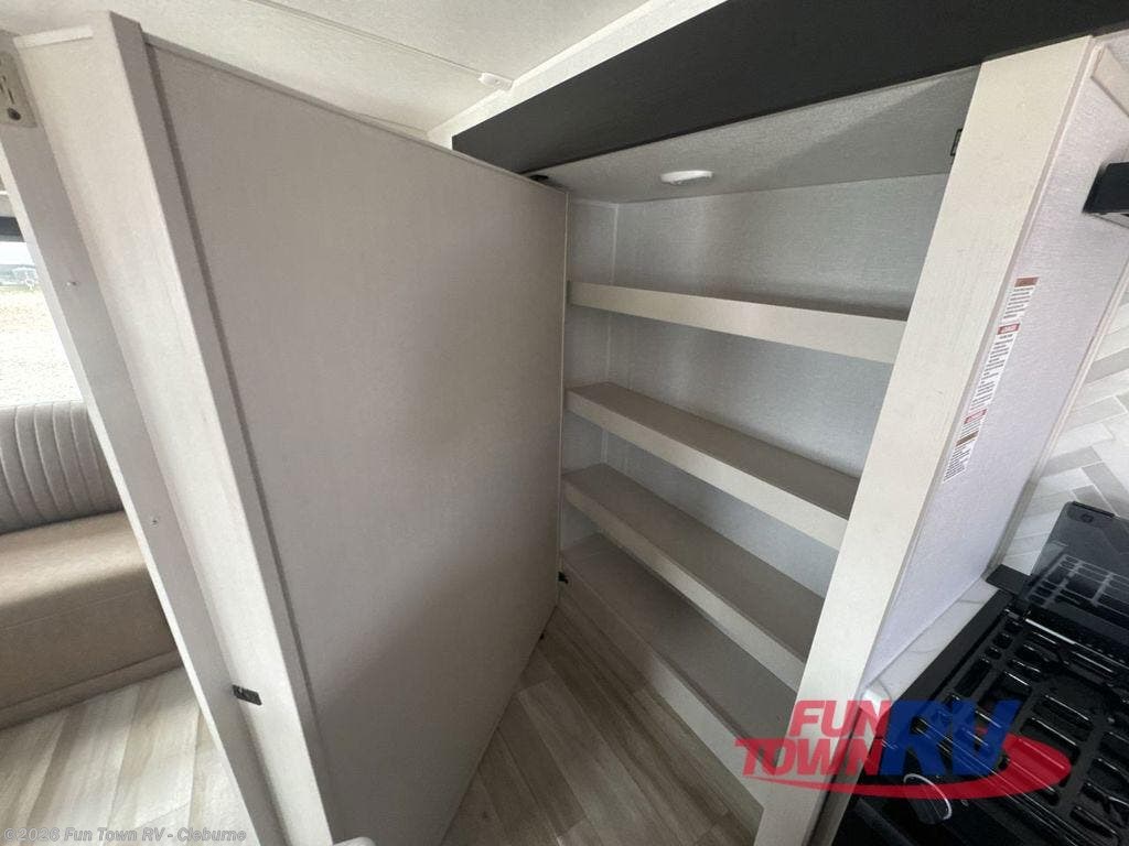 This travel trailer is decked out in features you will love like the front walk-in wardrobe with washer/dryer prep inside the front private bedroom! The full bathroom has everything you will need to get squeaky clean each morning including a residential walk-in shower with a skylight to let in some natural lighting. There is a hutch for you to store your dishes and a kitchen island to make meal prepping even easier. Once you have created a delicious meal, you can head to the booth dinette and enjoy eating it there comfortably while enjoying your view out of the panoramic window!