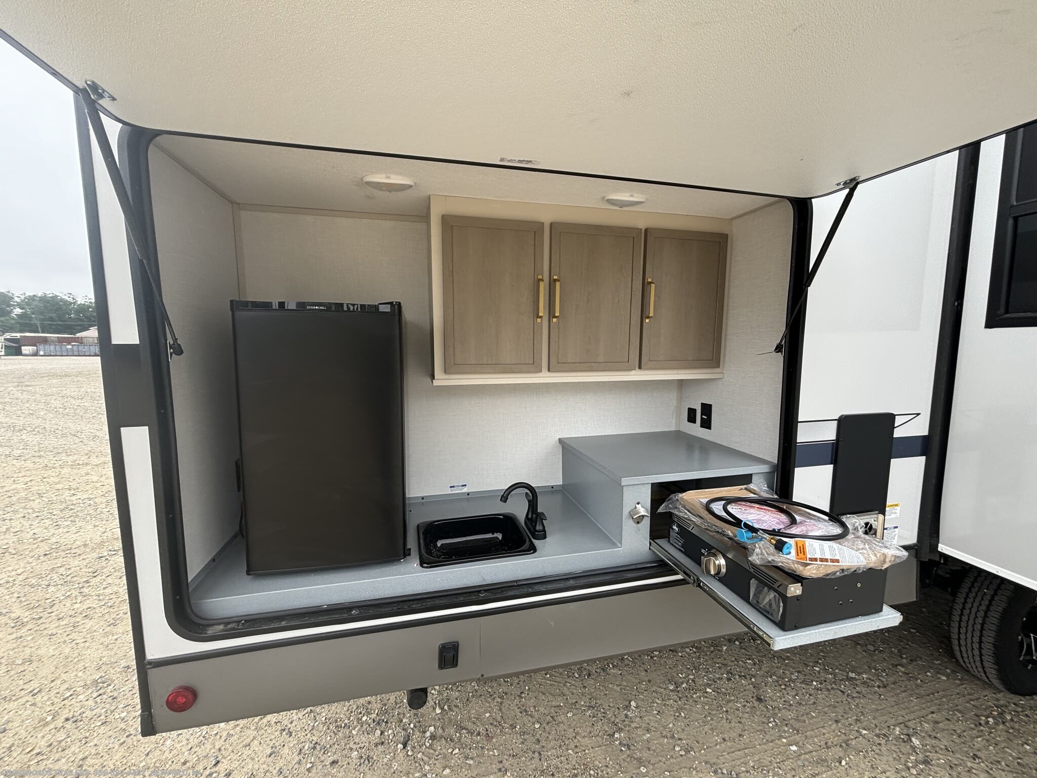 - Included appliances and systems: Microwave, Refrigerator, Stove Top Burner, Water Heater, Batteries, Converter, CO Detector, Smoke Detector, LP Detector, Fire Extinguisher