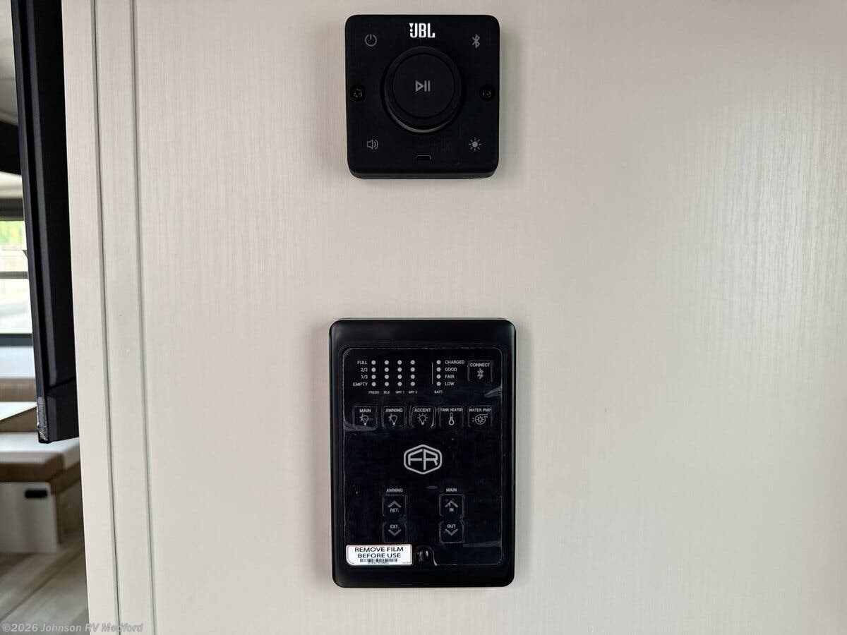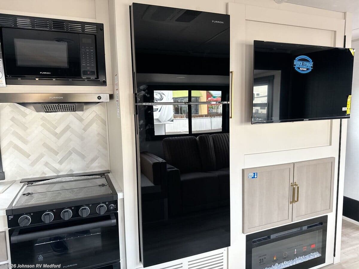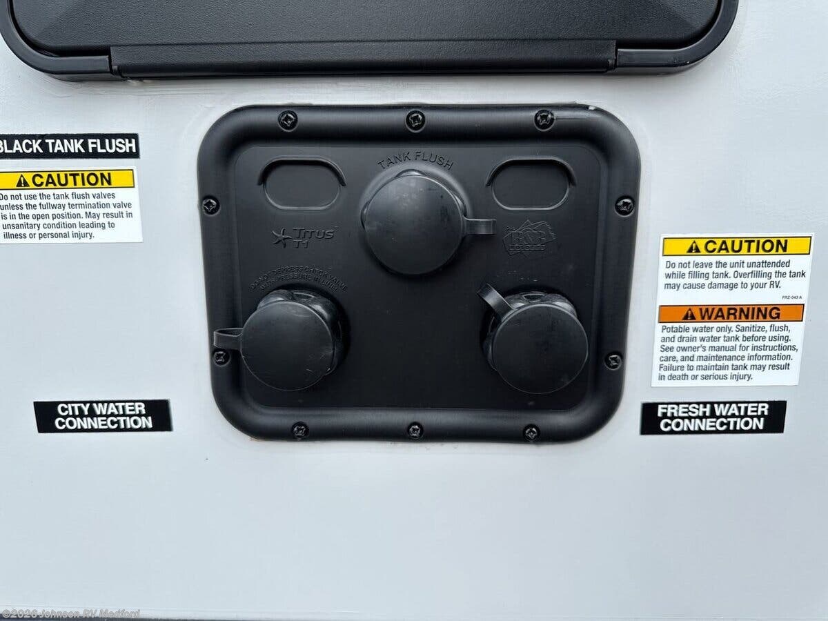 Features Include: Wood Door Casings, Square Windows, Built-in Shades, Entertainment Center, Seamless Countertops, Undermount Sink, High Rise Faucet, Cooktop Glass Cover, Designer Backsplash, Microwave Oven, Systems Center, Backup Camera Prep, Queen 60x80 Bed, Overbed Storage, Reading Lights, Bedside USB, CPAP Prep, Wardrobes, Dresser Drawers, Medicine Cabinet, LED Backlit Mirror, Vanity Sink, Linen Storage, Shower Skylight, Black Tank Flush, Power Tongue Jack, LED Docking Light, Wide Stance Axles, Floor, Enclosed Underbelly, Front Stone Guard