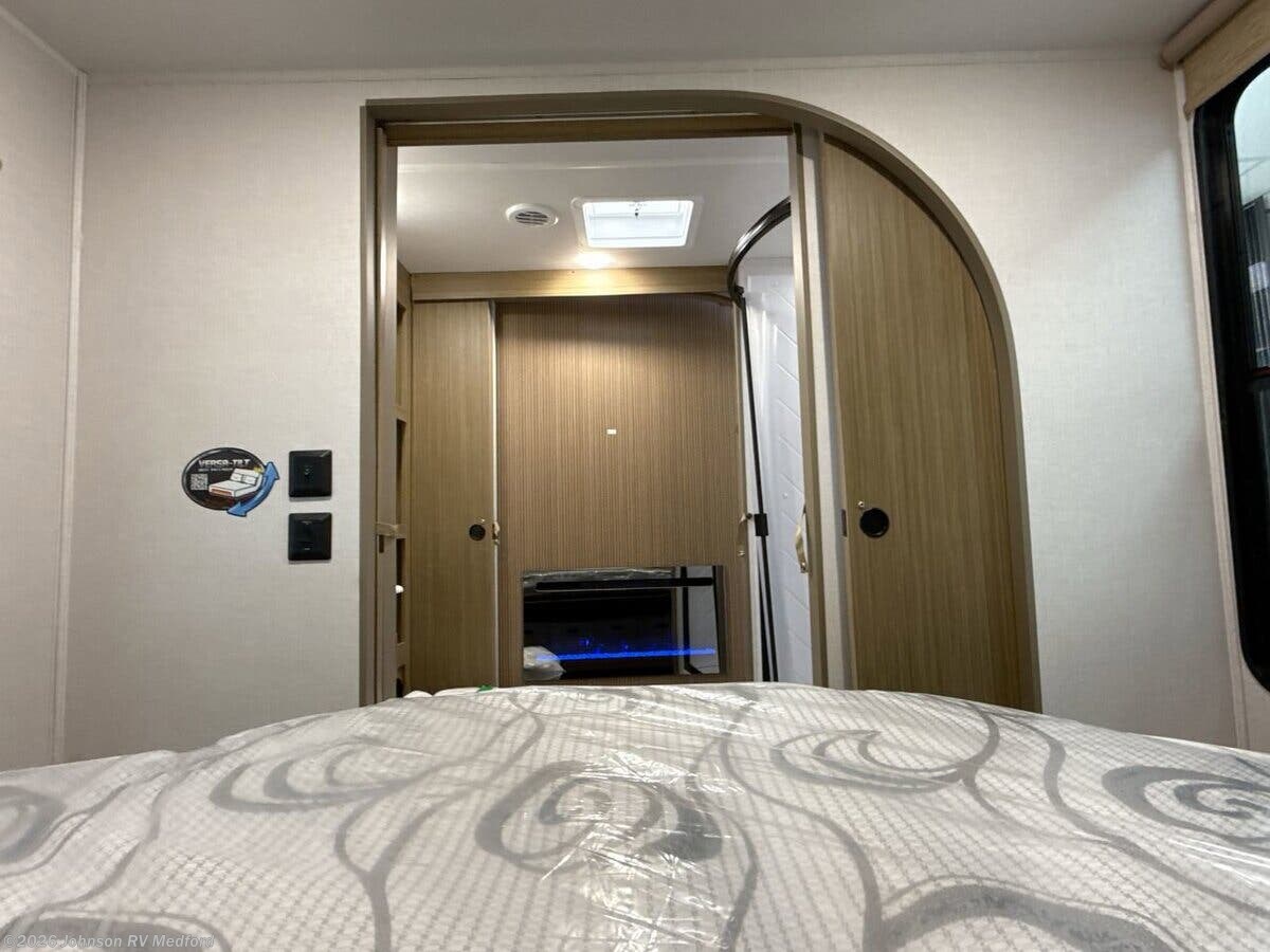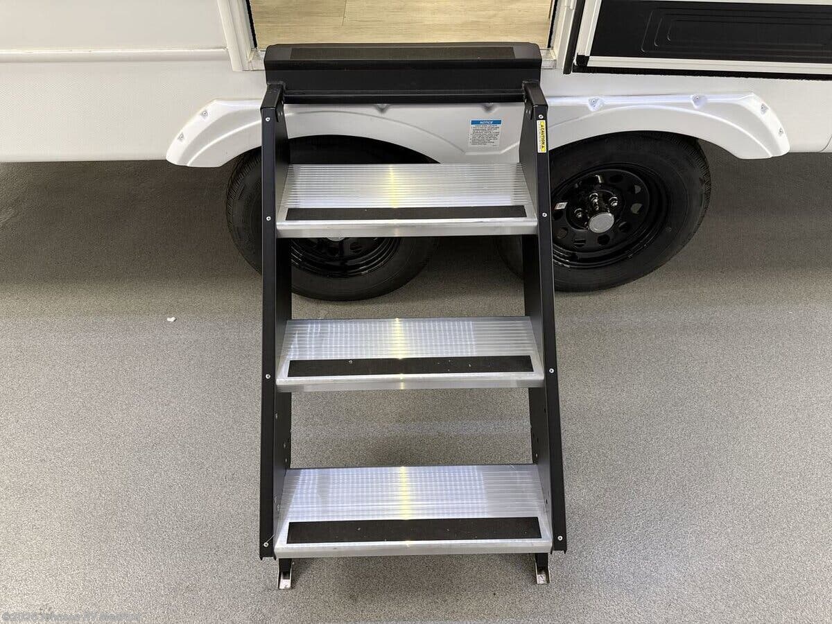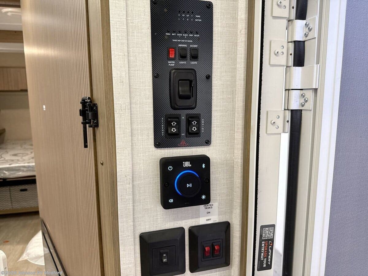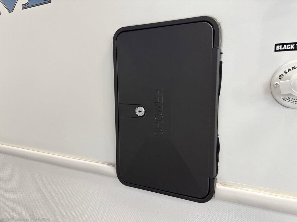 Features Include: Friction Hinge Door, Versa-Flex Desk, Overhead Cabinets, Bar Stools (vbm), Pantry, Single Bowl Sink, Fold-Out Trash Can, Refrigerator, Designer Backsplash, Versa-Range (vbm), Microwave Oven, Systems Center, Backup Camera Prep, USB Charge Ports, WiFi Extender Prep, JBL Stereo, JBL Indoor Speakers, Indoor TV Bracket, JBL Outdoor Speakers, Overbed Storage, Nightstand, Closets, Medicine Cabinet, Backlit Mirror, Vanity Sink, Linen Storage, Shower Skylight, 200w Solar Panel, 30-Amp Service Cord, 13.5k Ducted AC, Cambered Chassis, Aluminum Siding, Front Stone Guard, Pass-Through Storage