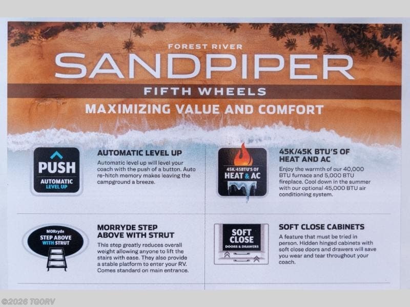 Request More Info on this 2026 Forest River Sandpiper 3710HBFB Offered for sale by TGORV