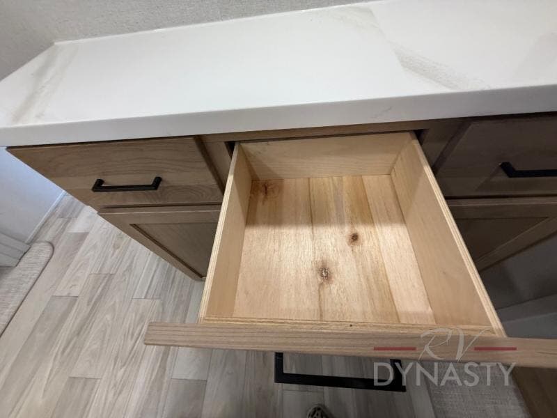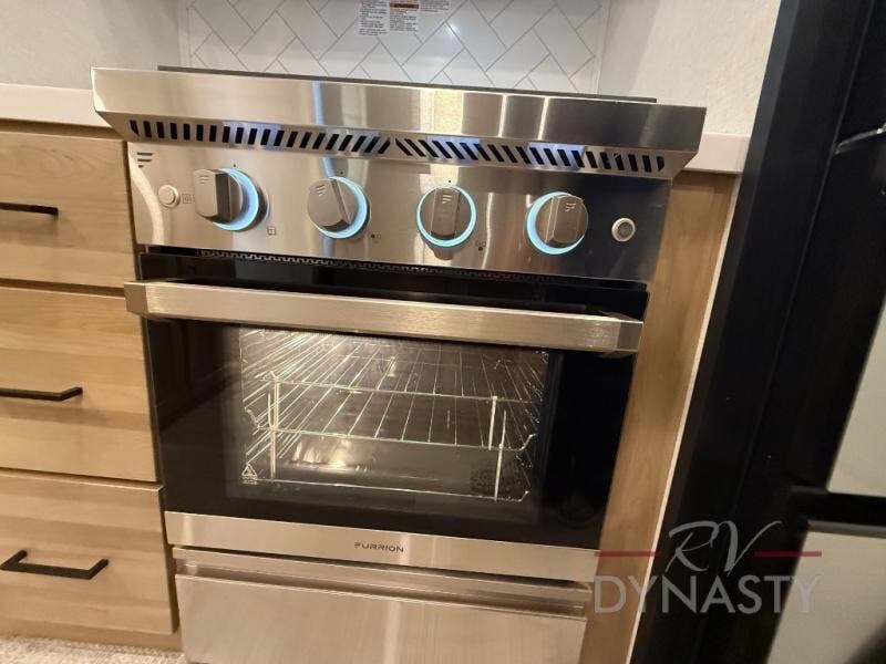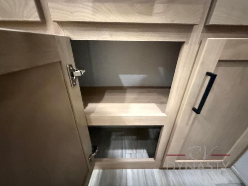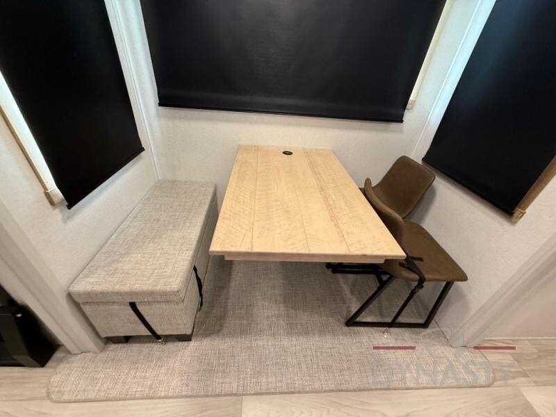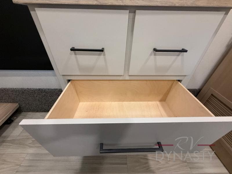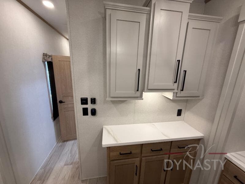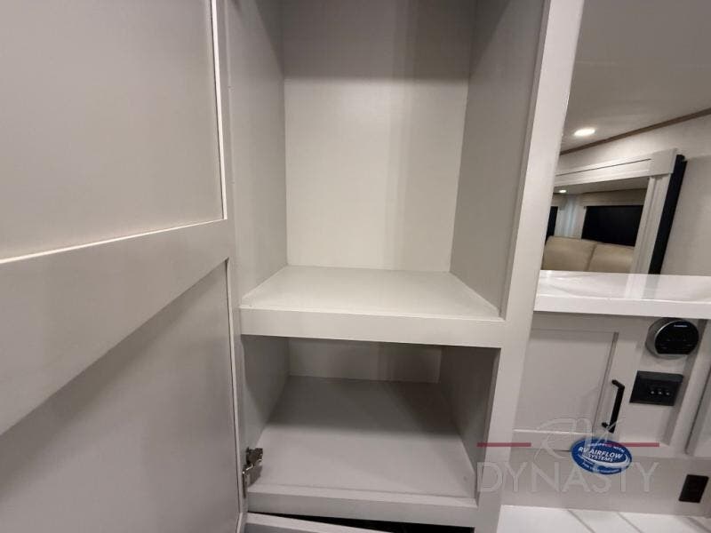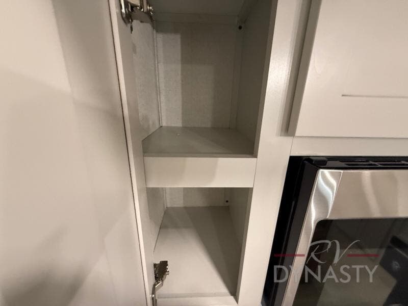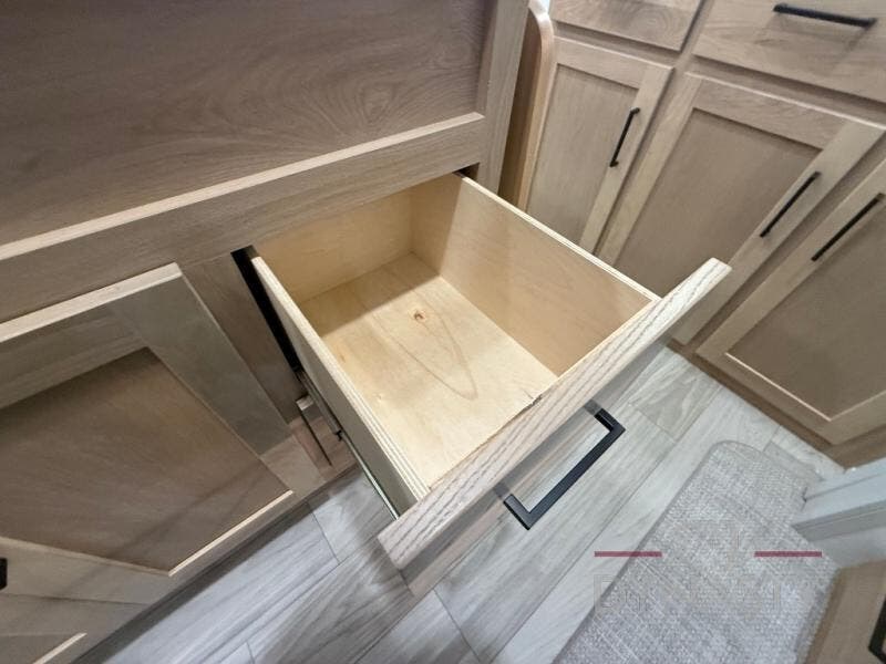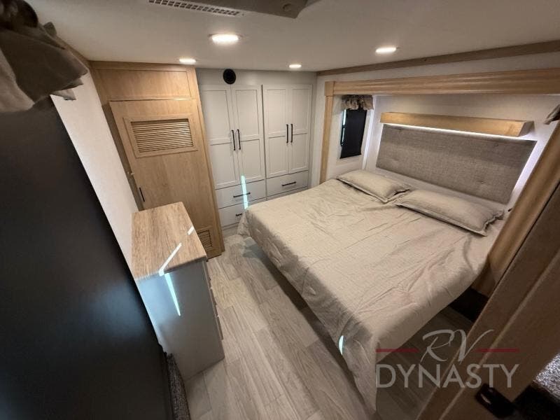 Wow! Check out this fifth wheel with a full loft for the little ones with two bunk mats, two wardrobe bookcases and a wardrobe/cabinet for ample storage. The main floor includes five slides for maximum space, a front living area with dual hide-a-bed sofas, plus an entertainment center with a 50" flat screen TV for movie nights! Once your guests have converted the living room to their bedroom at night, you can take the rear private bedroom. There is a king bed slide out here, a wardrobe, plus a closet with washer and dryer prep for full-time living. The full bath is easily accessible for everyone, and the middle kitchen will be a favorite with the chef of your group. Here, you'll find a 12V refrigerator, an island, tons of counter space, plus a hutch to display nice dishes, and a pantry for dry goods. Don't let this fifth wheel slip away!