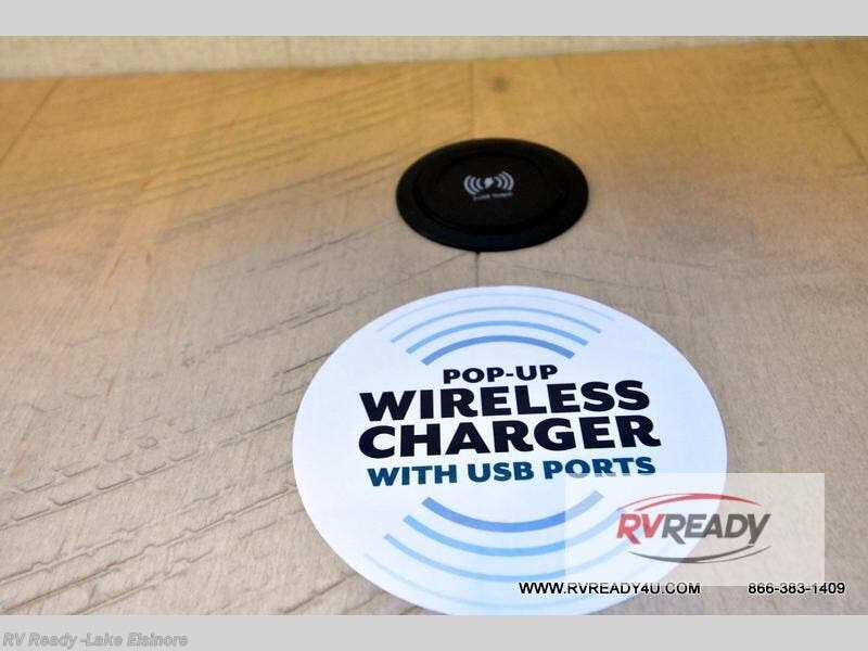 Enjoy extended stays in this triple slide out destination trailer! Once you unload your bags, you can put out the 19' awning with LED lights and relax in your camp chairs. The Chef Collection three burner range will let you make lunch for your crew when you head inside, and there is a free-standing dinette with a bench and two chairs to dine at. After your meal, you can relax on the theater seating across from the entertainment center with a hidden pantry behind it. There is also a front tri-fold hide-a-bed sofa to let guests sleep over. The mid-coach half bath will be easily accessible to use, and the full rear bath will create a master bedroom you are sure to love. There is a king bed slide out here, a dresser with TV prep, and two wardrobes to keep your things tidy!